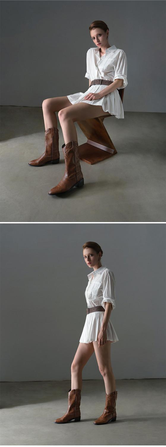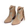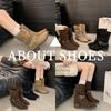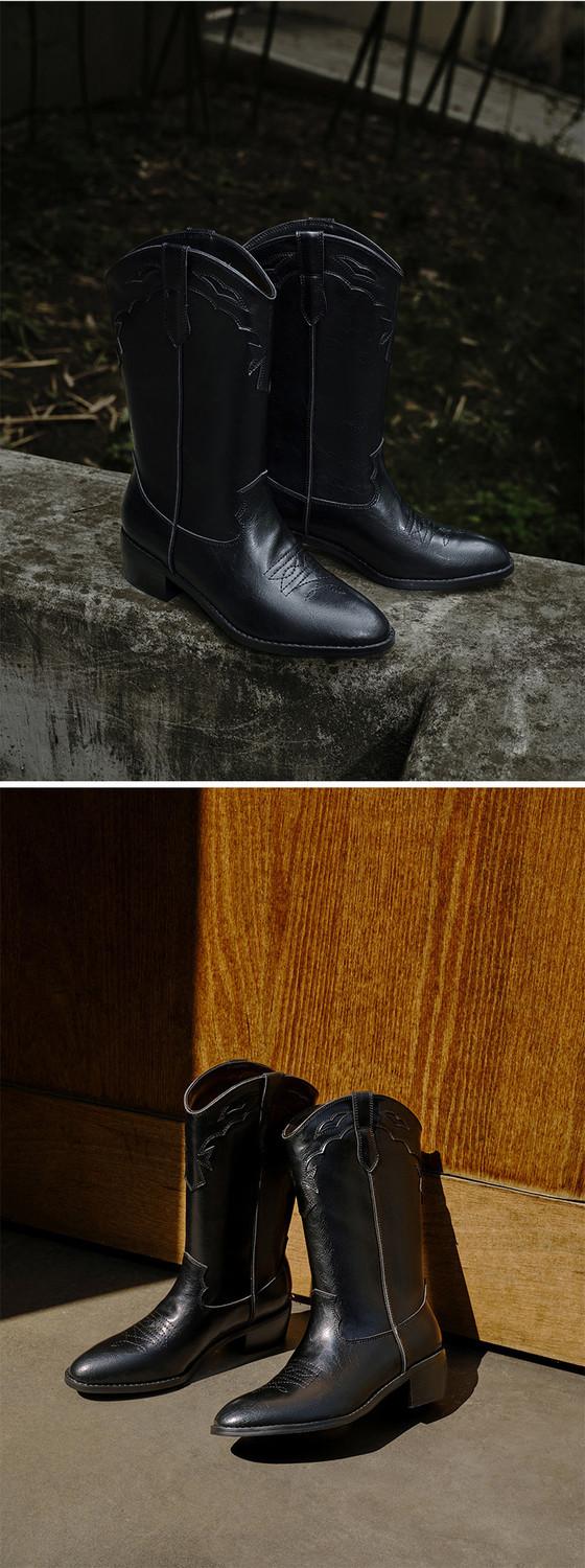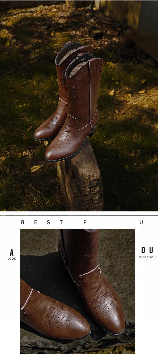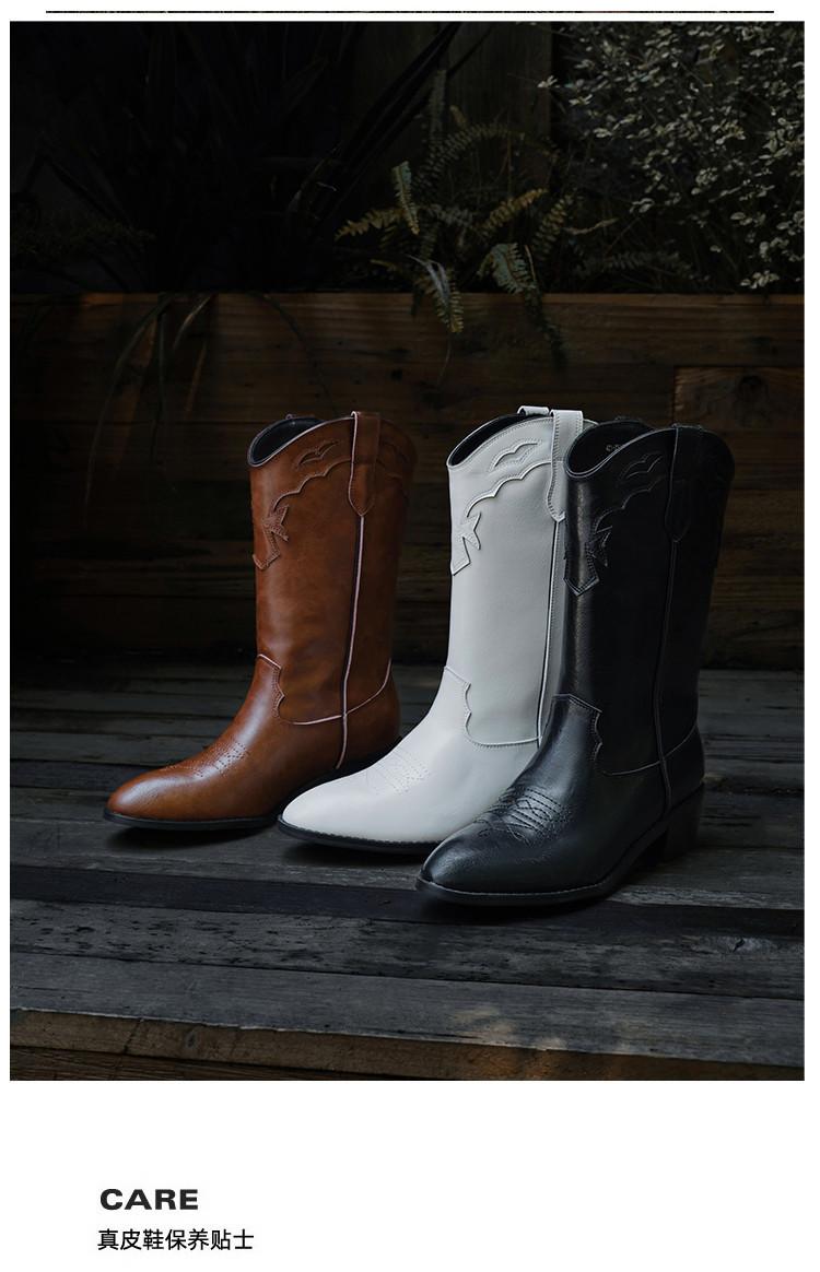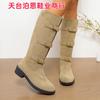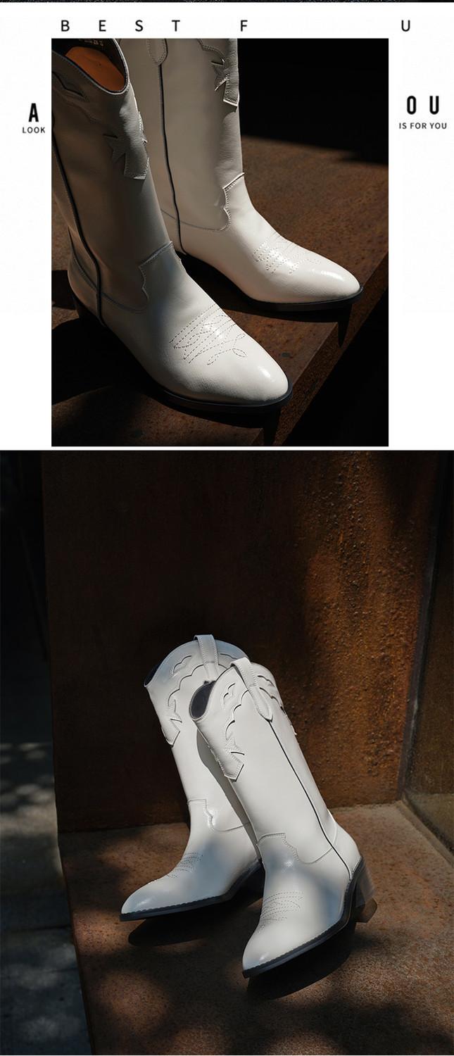 Botas versátiles de tacón grueso hasta la pantorrilla para mujer europeas y americanas 2025 otoño e invierno nuevas botas vaqueras occidentales de pierna ancha botas cortas casuales