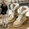 Botas de Nieve Grises para Mujer 2024 Invierno Nuevo Suela Gruesa Aumentante Forrado de Vellón Engrosado Tubo Largo Nieve Algodón Zapatos