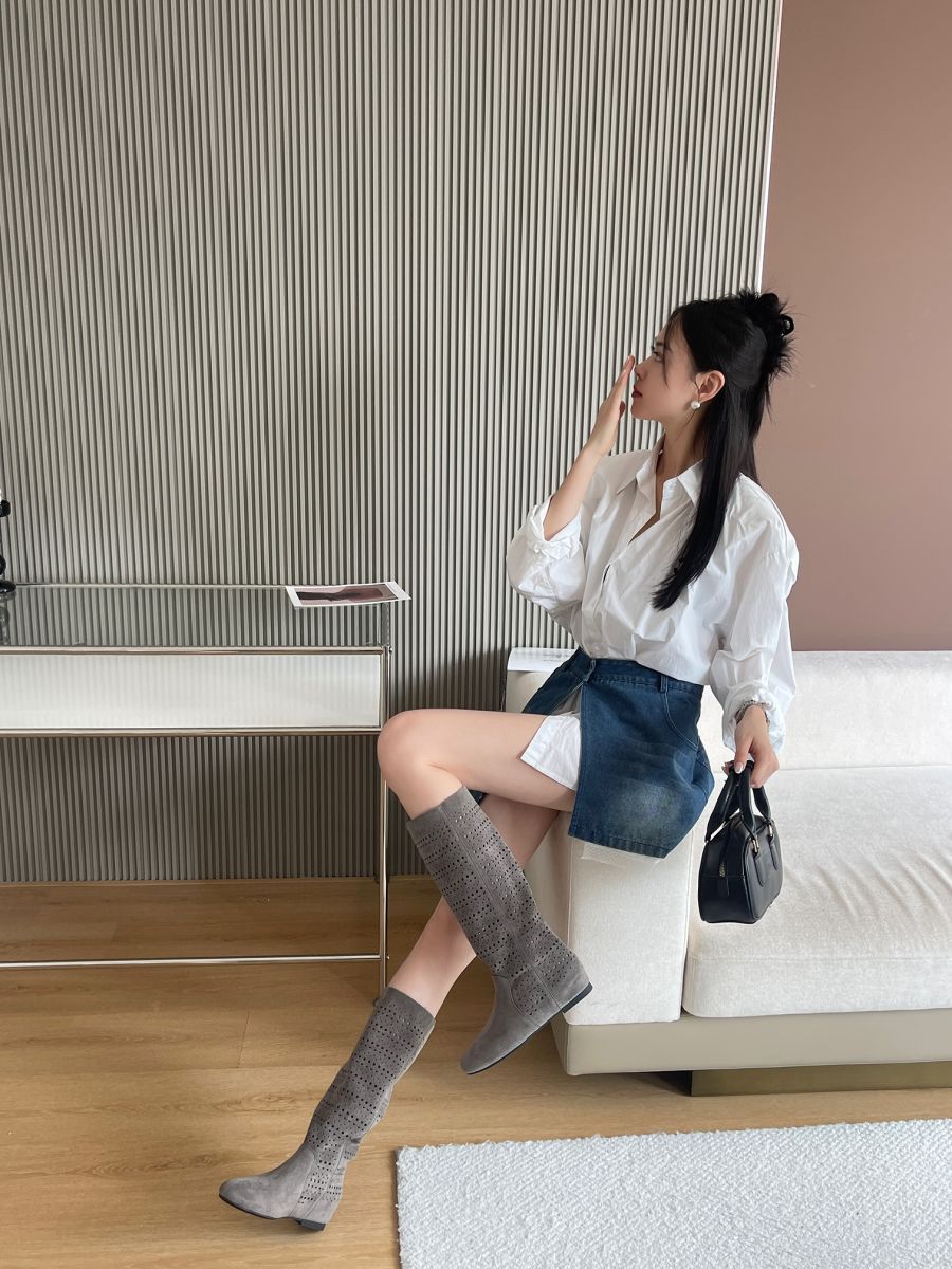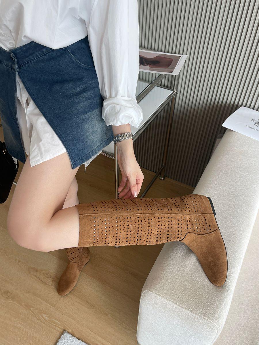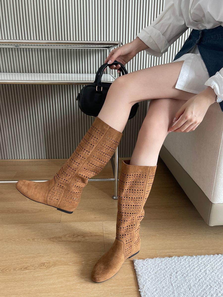 Botas largas planas caladas para mujer 2025 nuevas para persona pequeña por encima de la rodilla botas altas botas vaqueras occidentales botas de caballero británicas