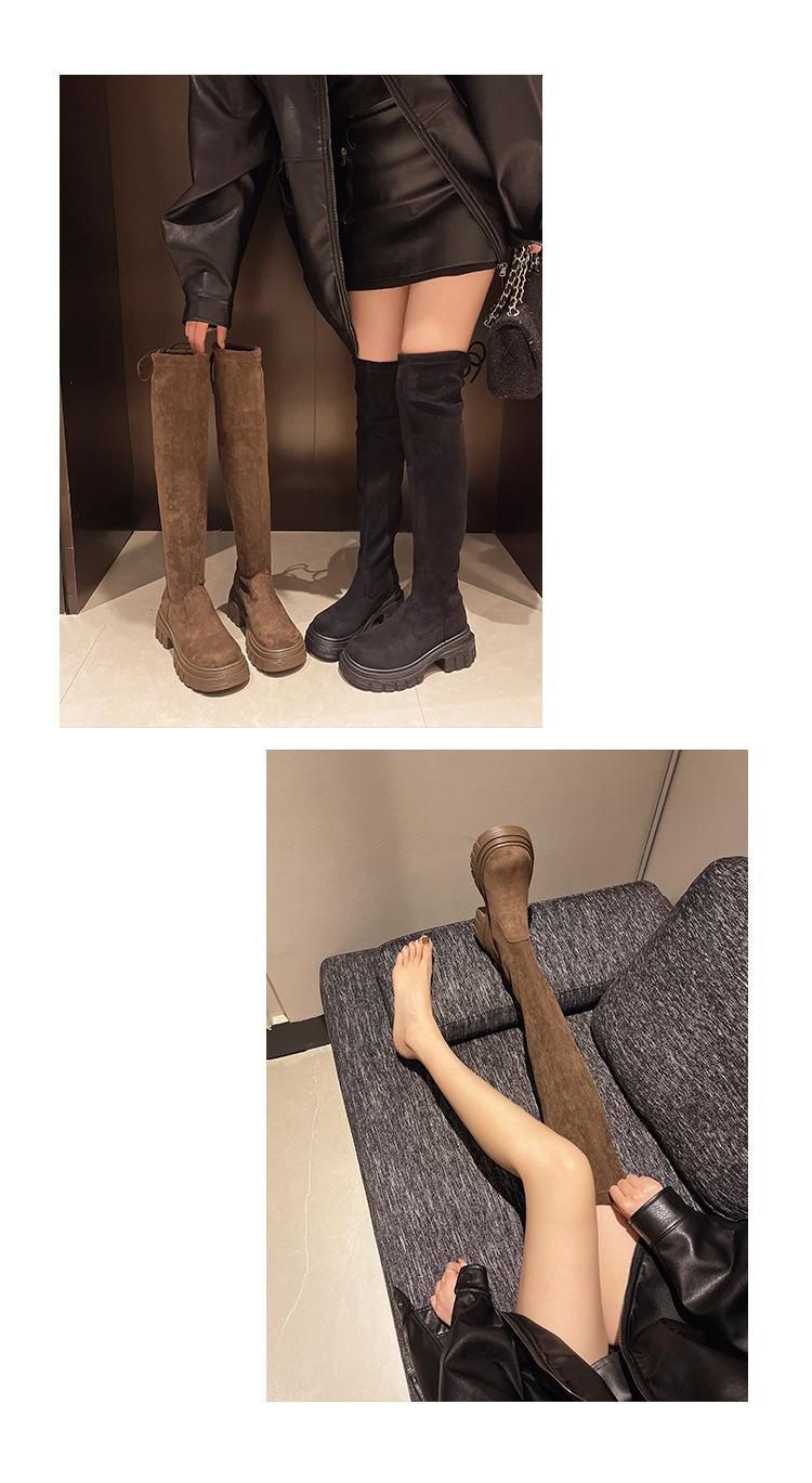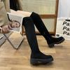 Botas sobre la rodilla mujer 2025 otoño e invierno nuevo fondo grueso tacón grueso botas altas de caballero temperamento delgadas botas elásticas