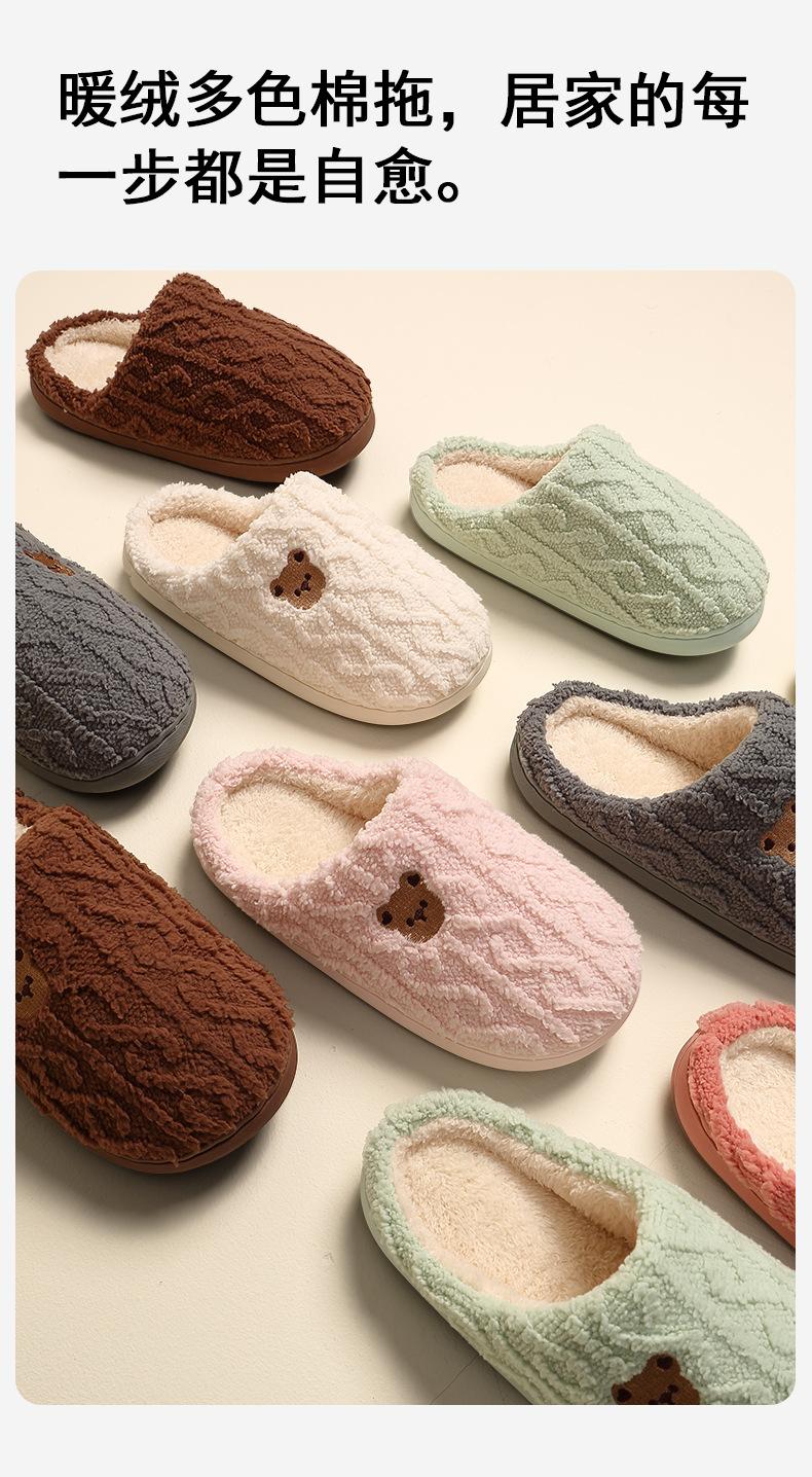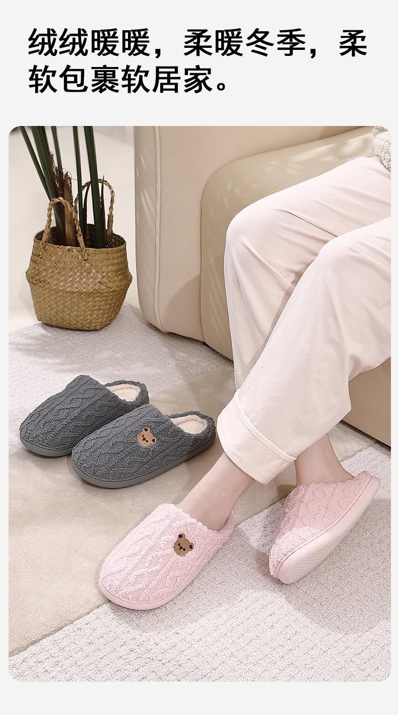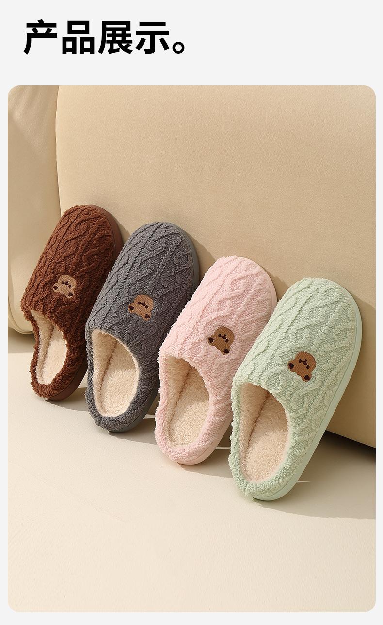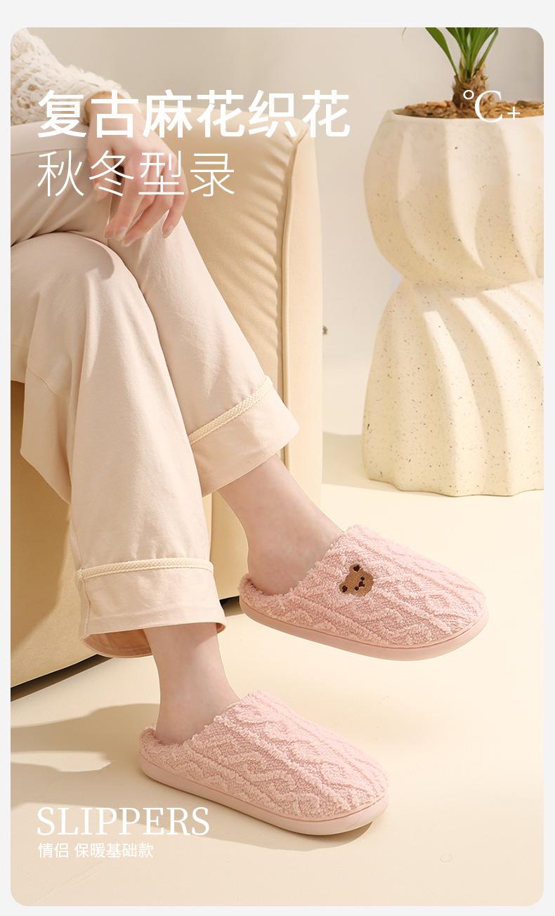 Pantuflas de Algodón de Dibujos Animados Simples para Mujer Otoño Invierno Hogar Interior Antideslizantes Cálidas Suela Suave para el Hogar Pantuflas de Algodón de Felpa para Hombre Venta al por Mayor