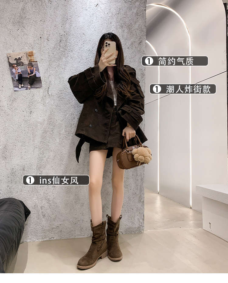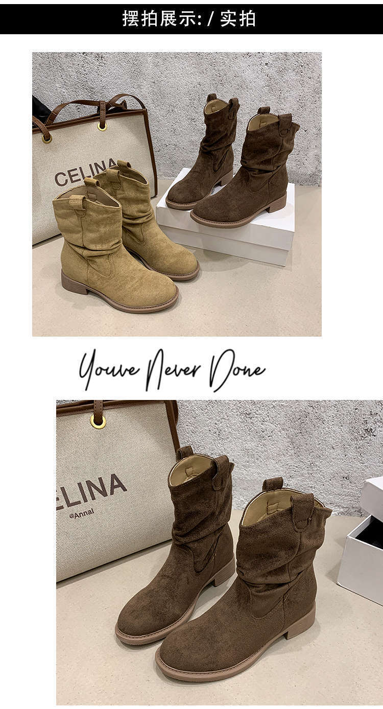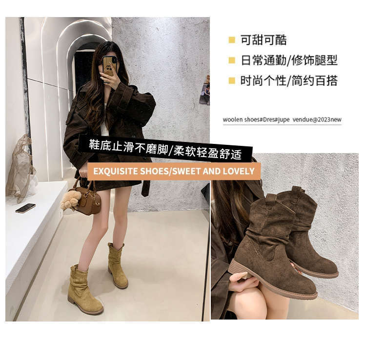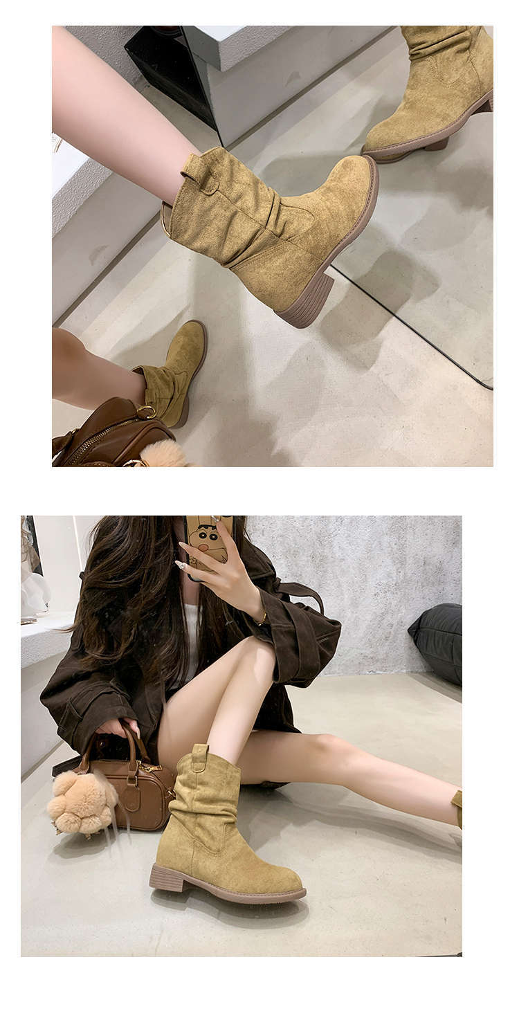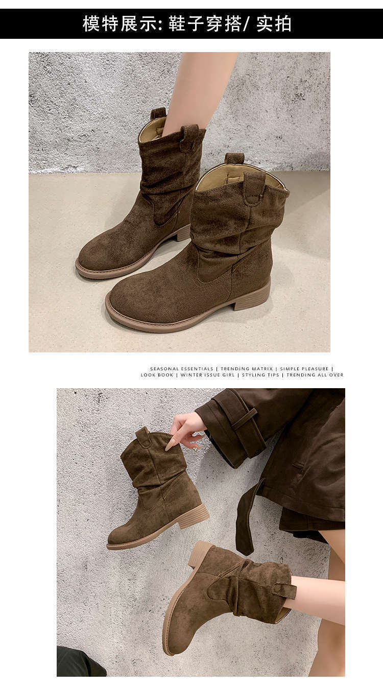 Botines Martin Vaquero Occidental con Boca en V Myllard para Mujer 2025 Nuevo Otoño Retro Botas Apiladas Tacón Chunky Botines