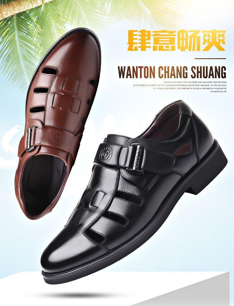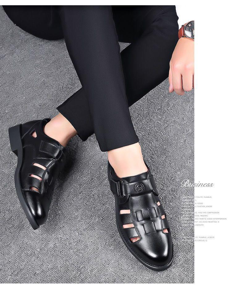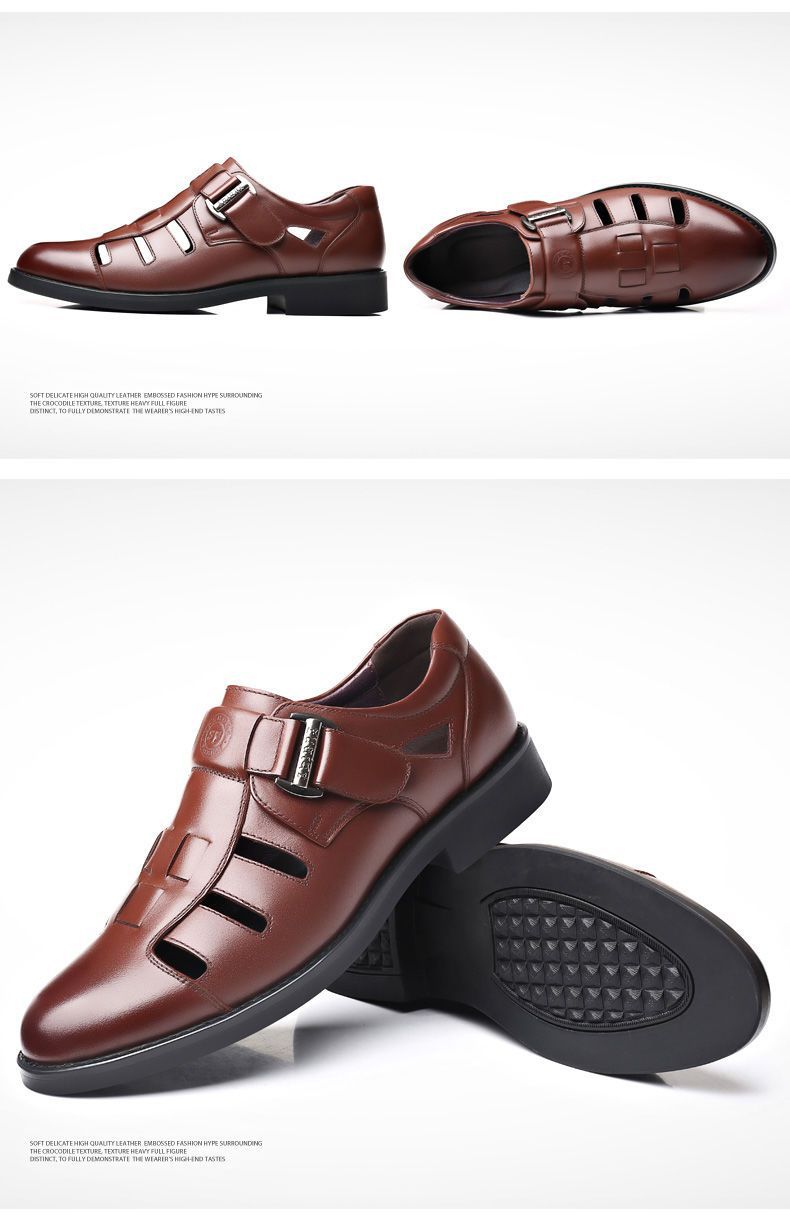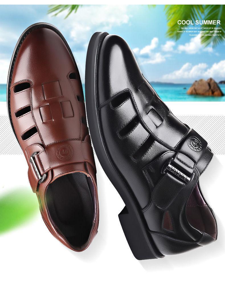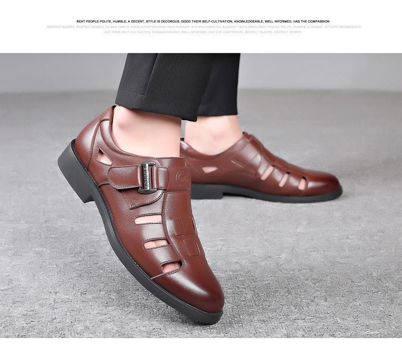 Sandalias huecas de verano para hombre con puntera cerrada, zapatos de playa con agujeros, cuero suave, suela suave, transpirables, zapatos casuales