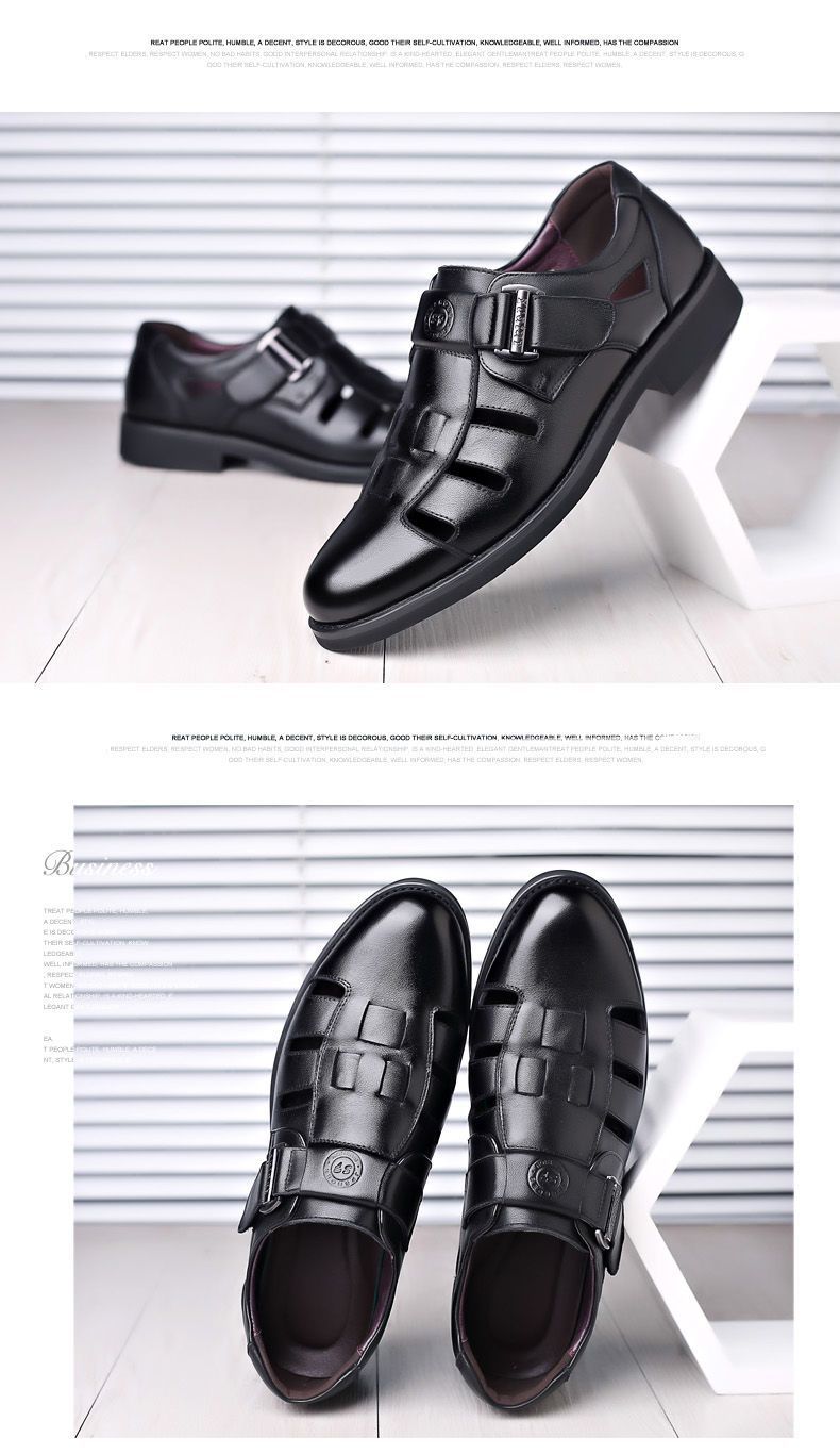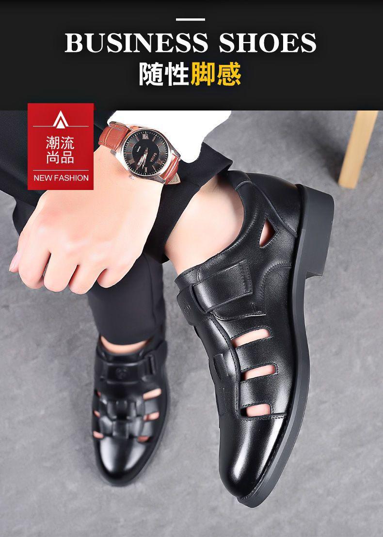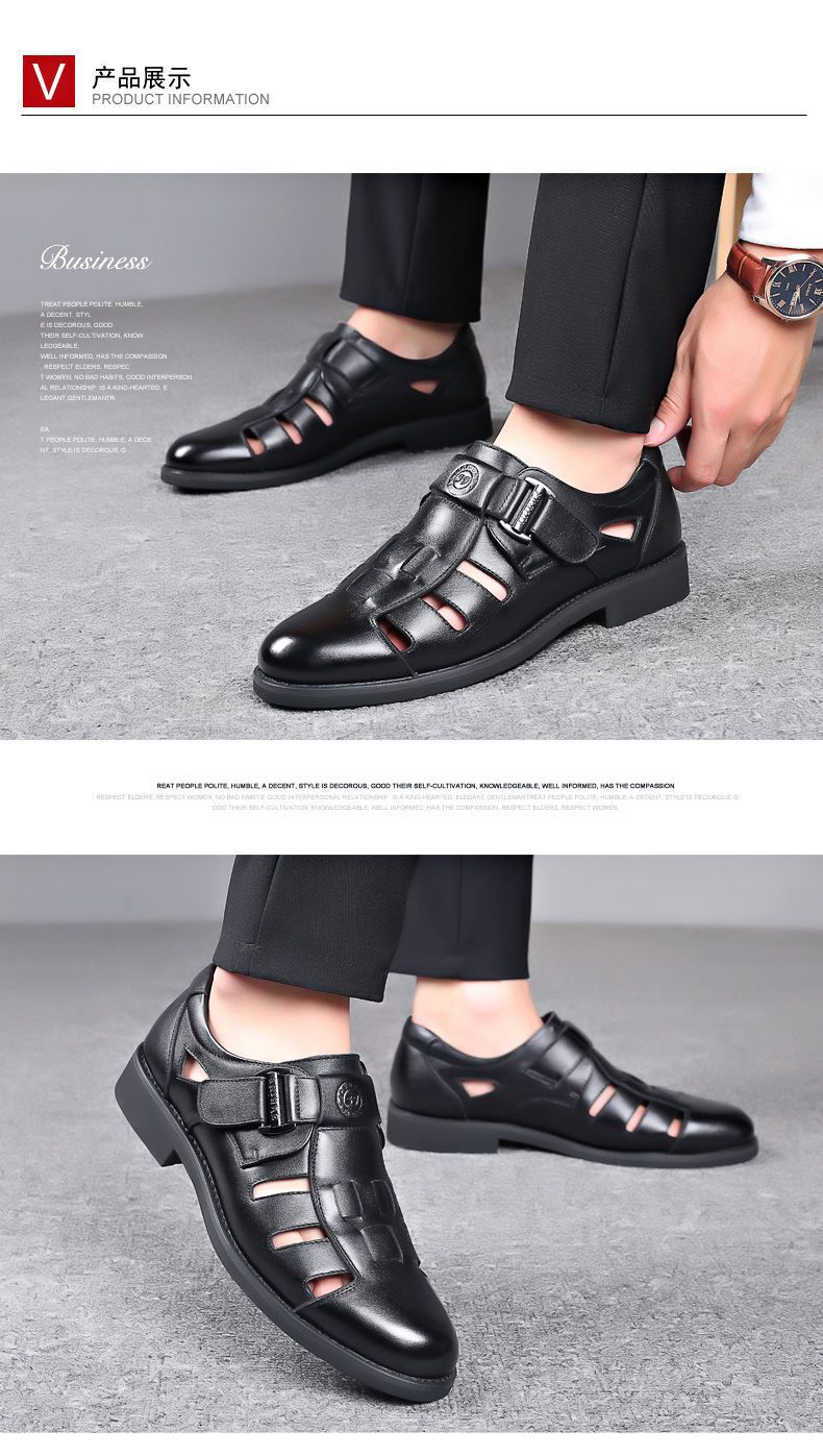 Sandalias huecas de verano para hombre con puntera cerrada, zapatos de playa con agujeros, cuero suave, suela suave, transpirables, zapatos casuales