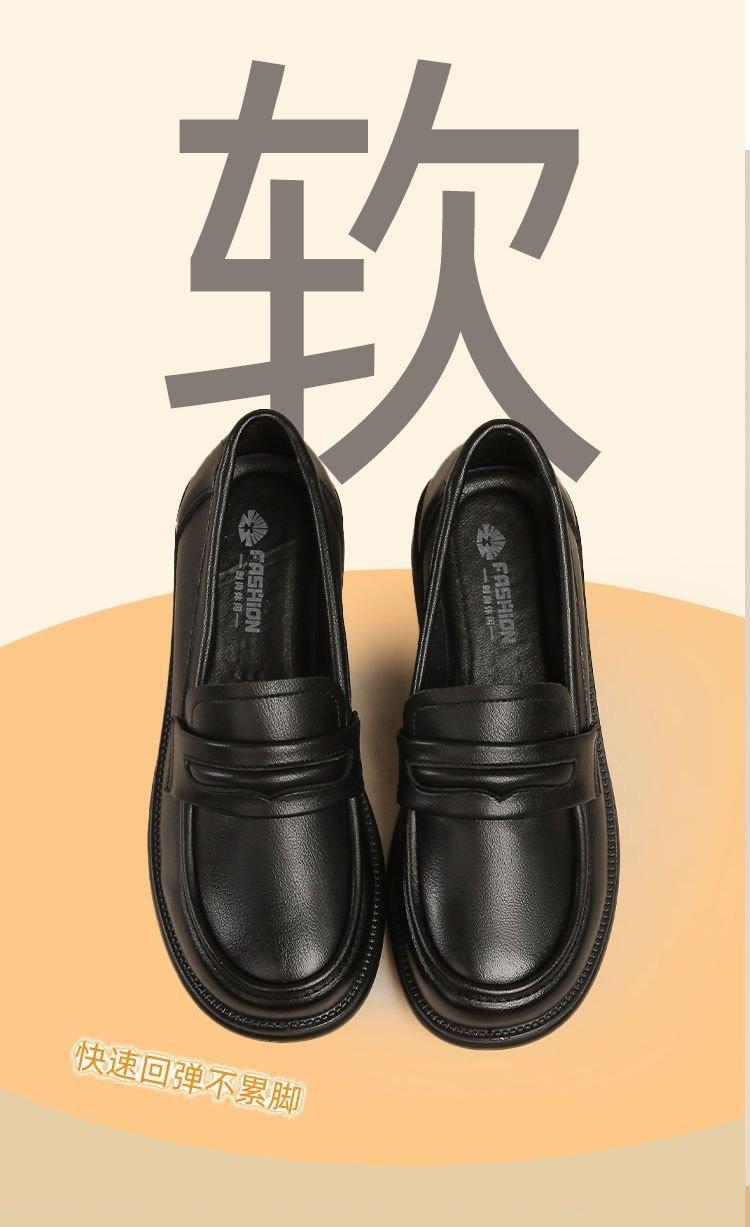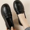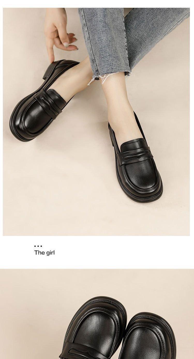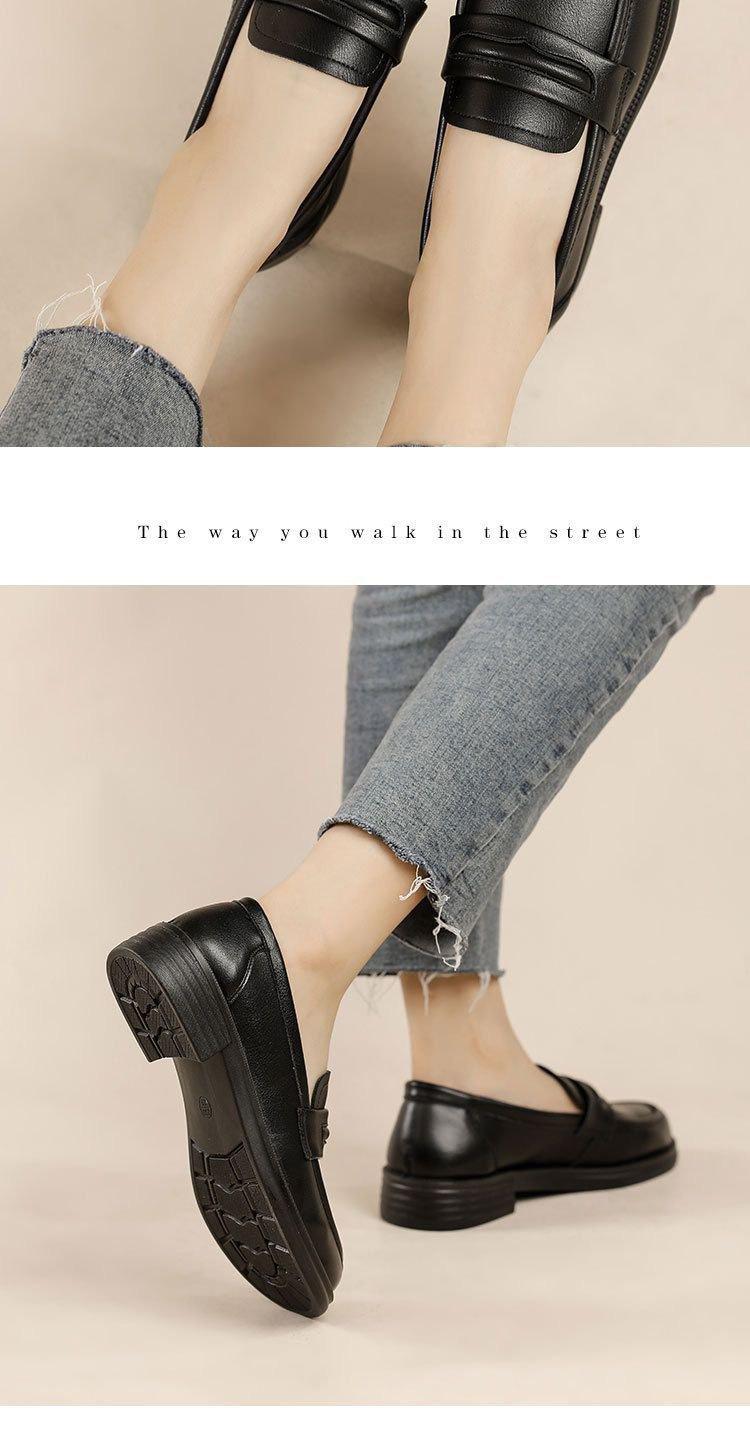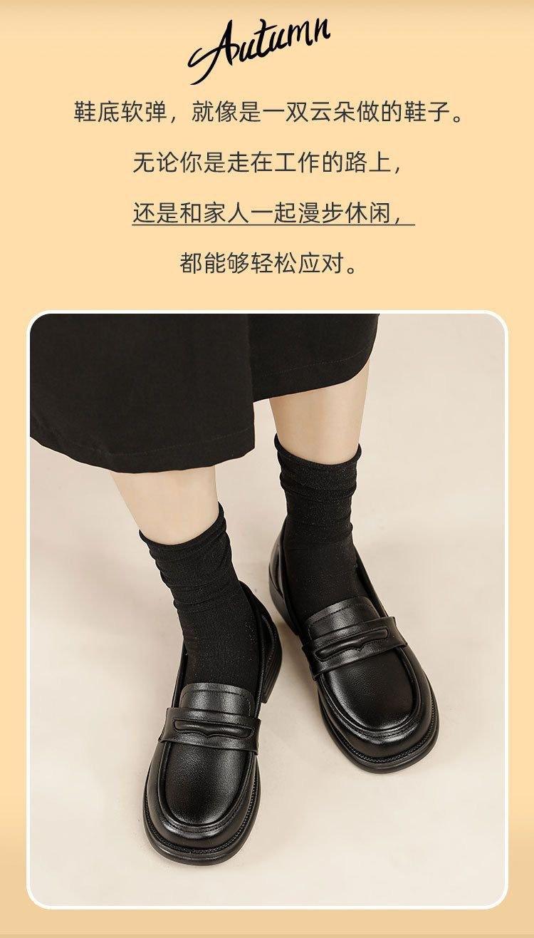 Zapatos Pequeños de Cuero Negro Estilo Británico Mujer 2025 Nuevos Zapatos Planos Individuales Otoño Zapatos de Mujer Talla Grande Mocasines para Mujer de Mediana Edad