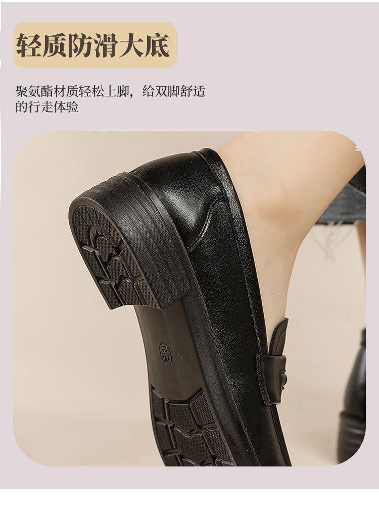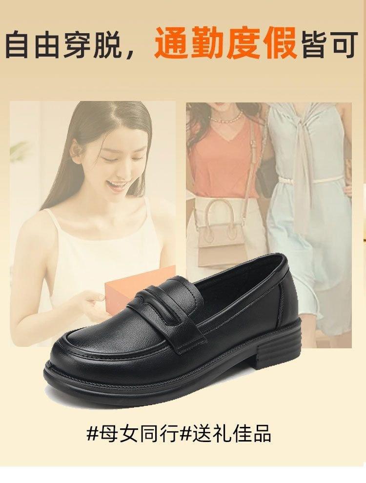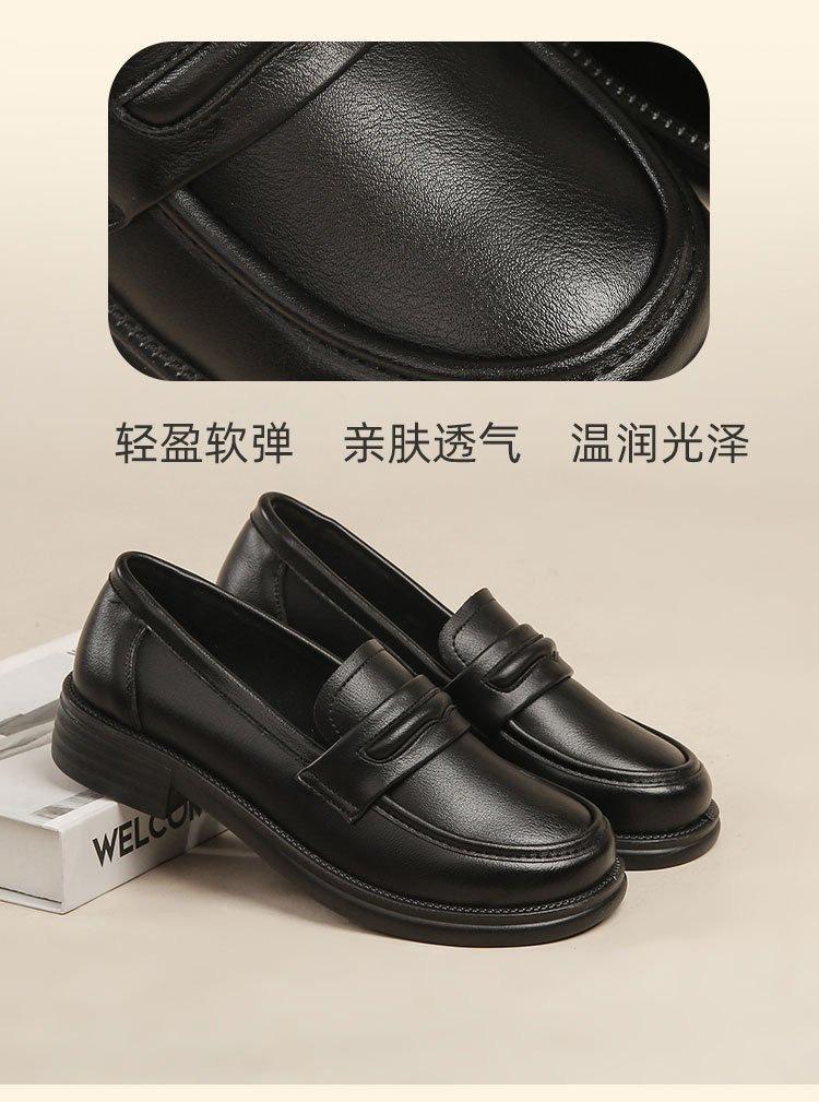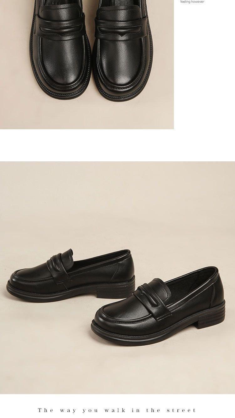 Zapatos Pequeños de Cuero Negro Estilo Británico Mujer 2025 Nuevos Zapatos Planos Individuales Otoño Zapatos de Mujer Talla Grande Mocasines para Mujer de Mediana Edad