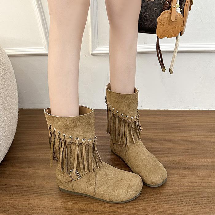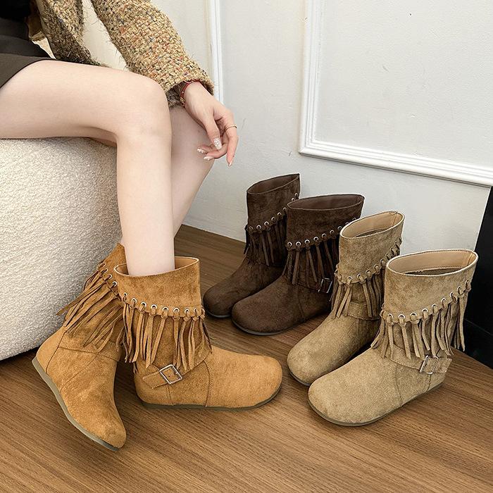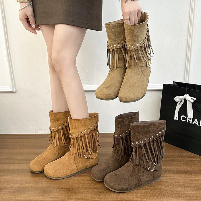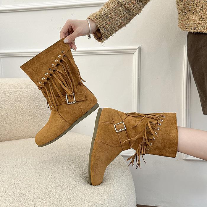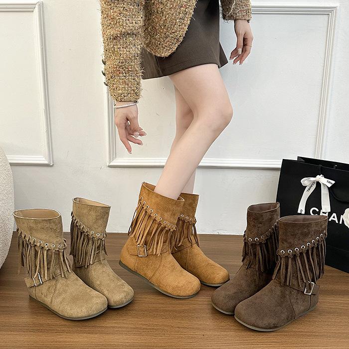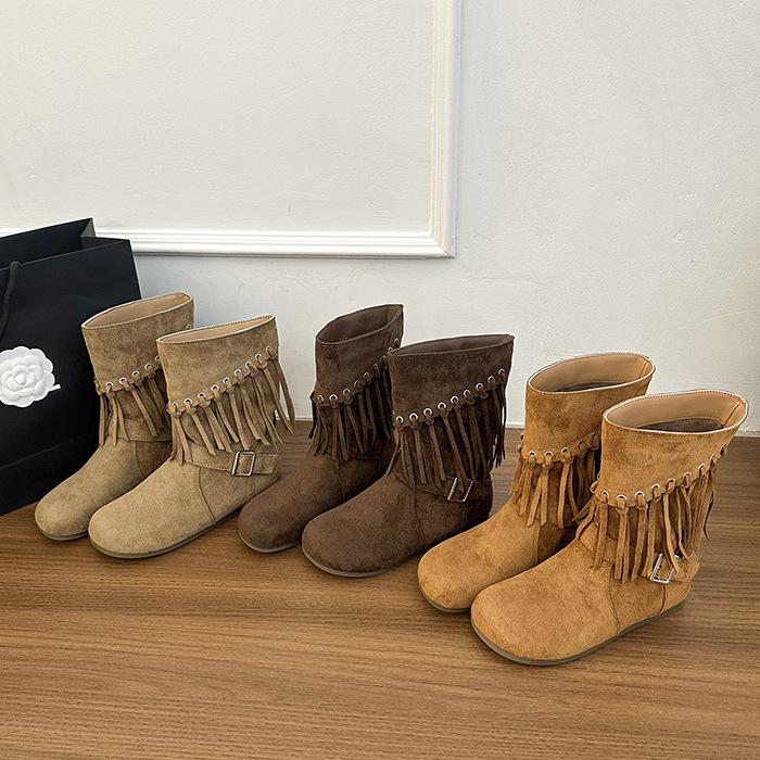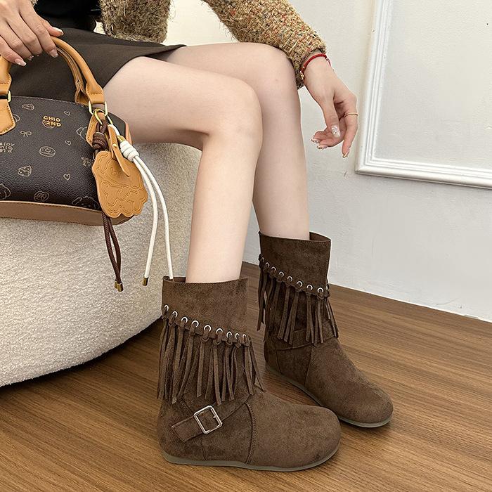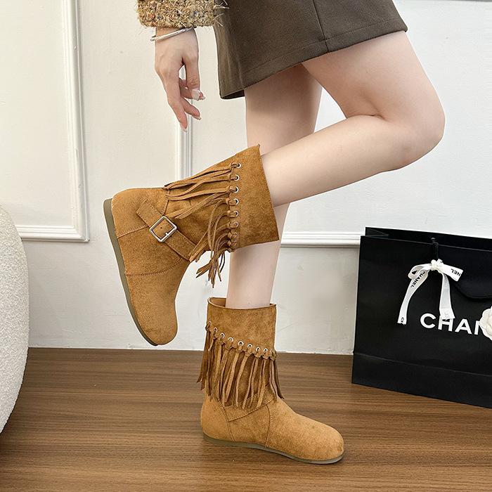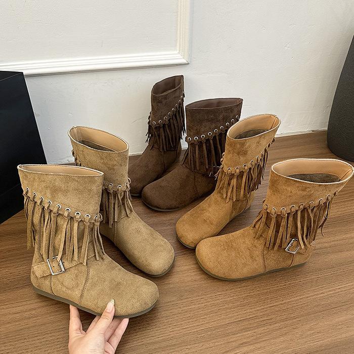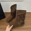 Botas Martin mujer 2025 otoño e invierno nuevo nicho retro borla vaquero occidental temperamento planas botas de moda ins marea