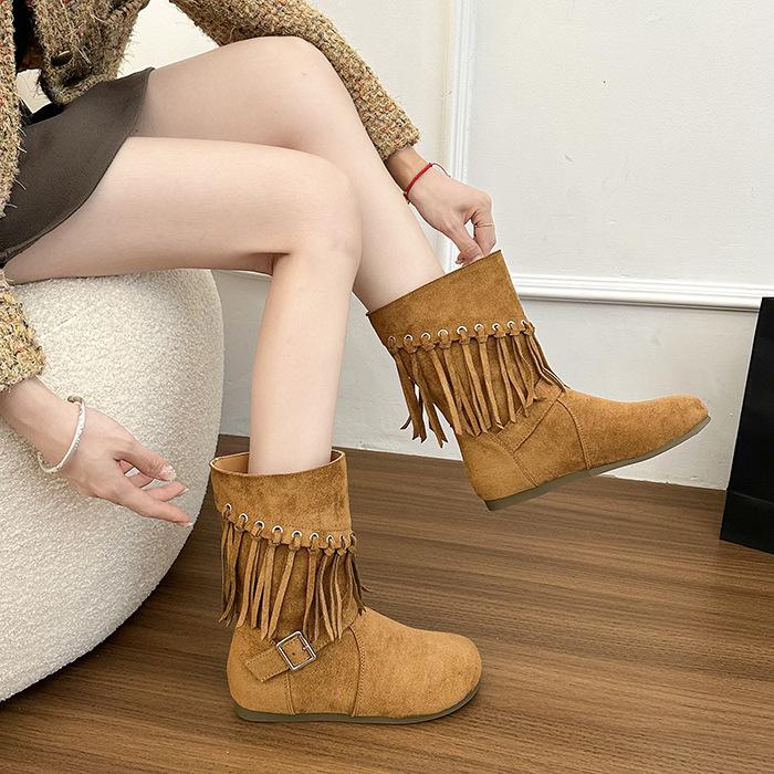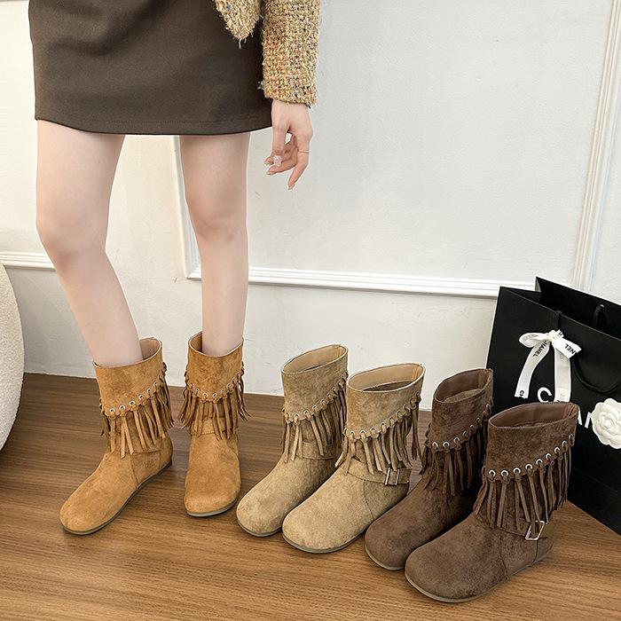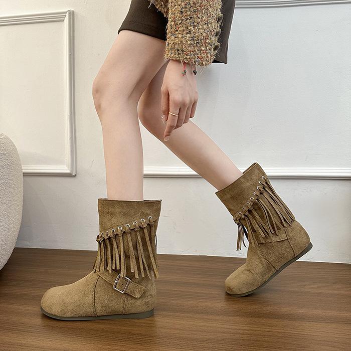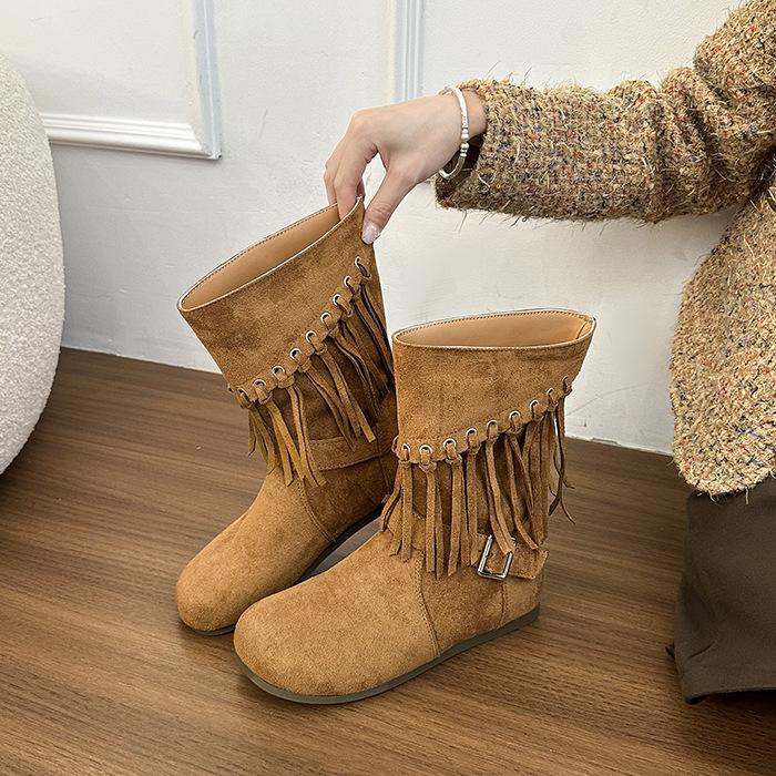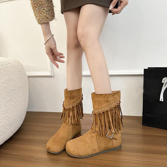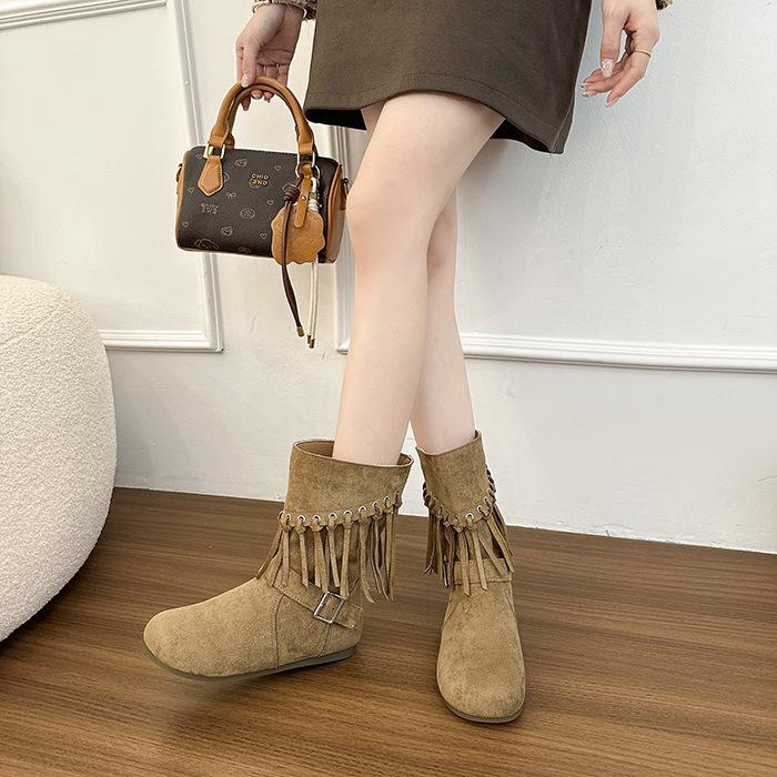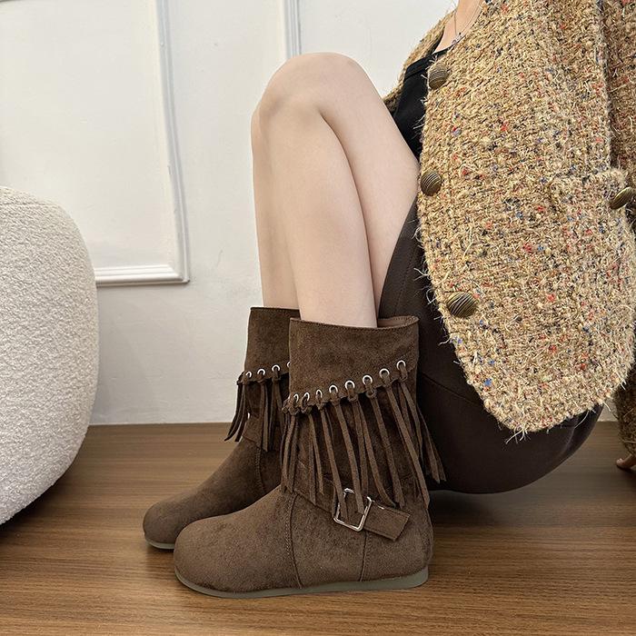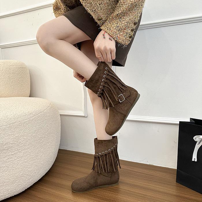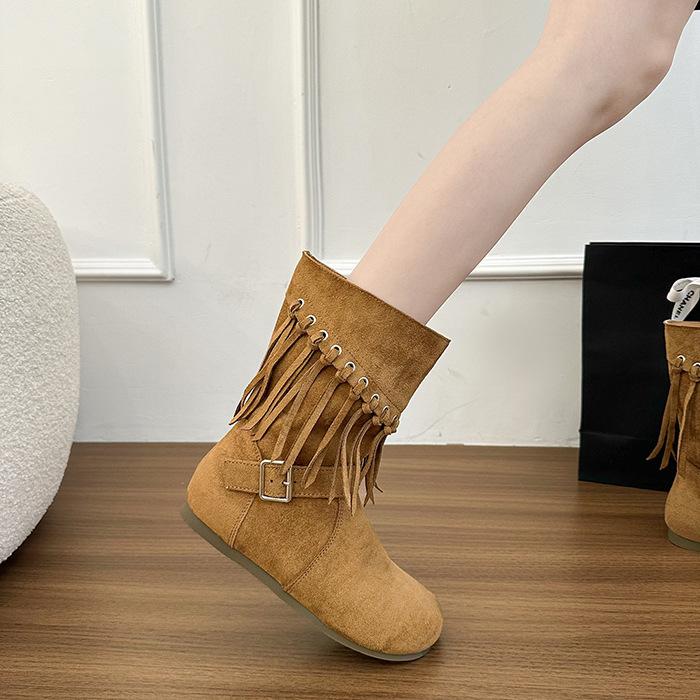 Botas Martin mujer 2025 otoño e invierno nuevo nicho retro borla vaquero occidental temperamento planas botas de moda ins marea