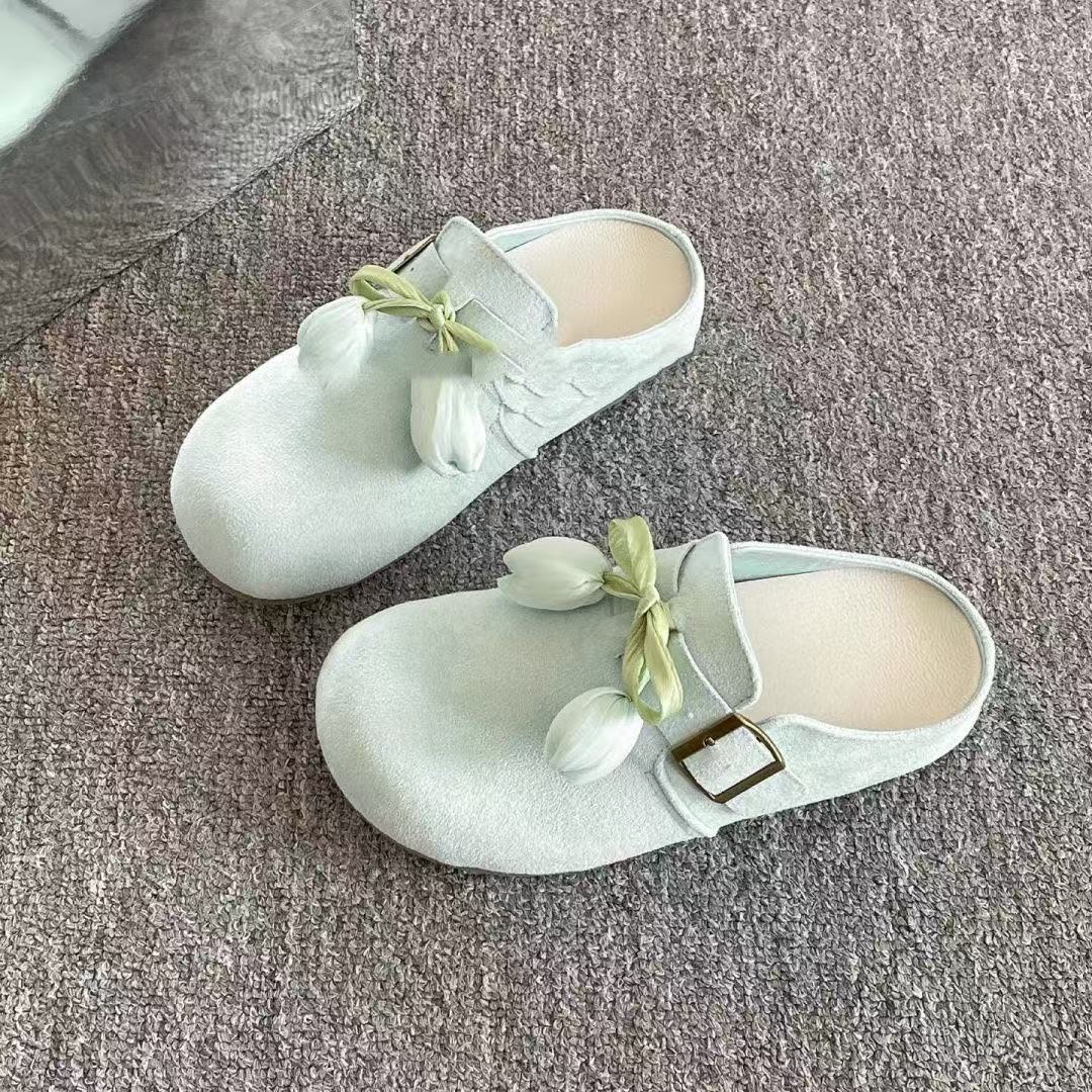 Medias zapatillas de punta súper gruesas con falda para verano para mujer 2025 nuevo estilo slip-on zapatos versátiles sandalias y zapatillas