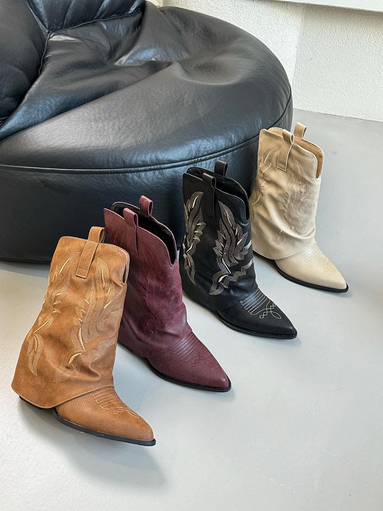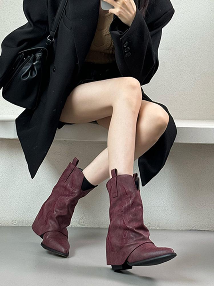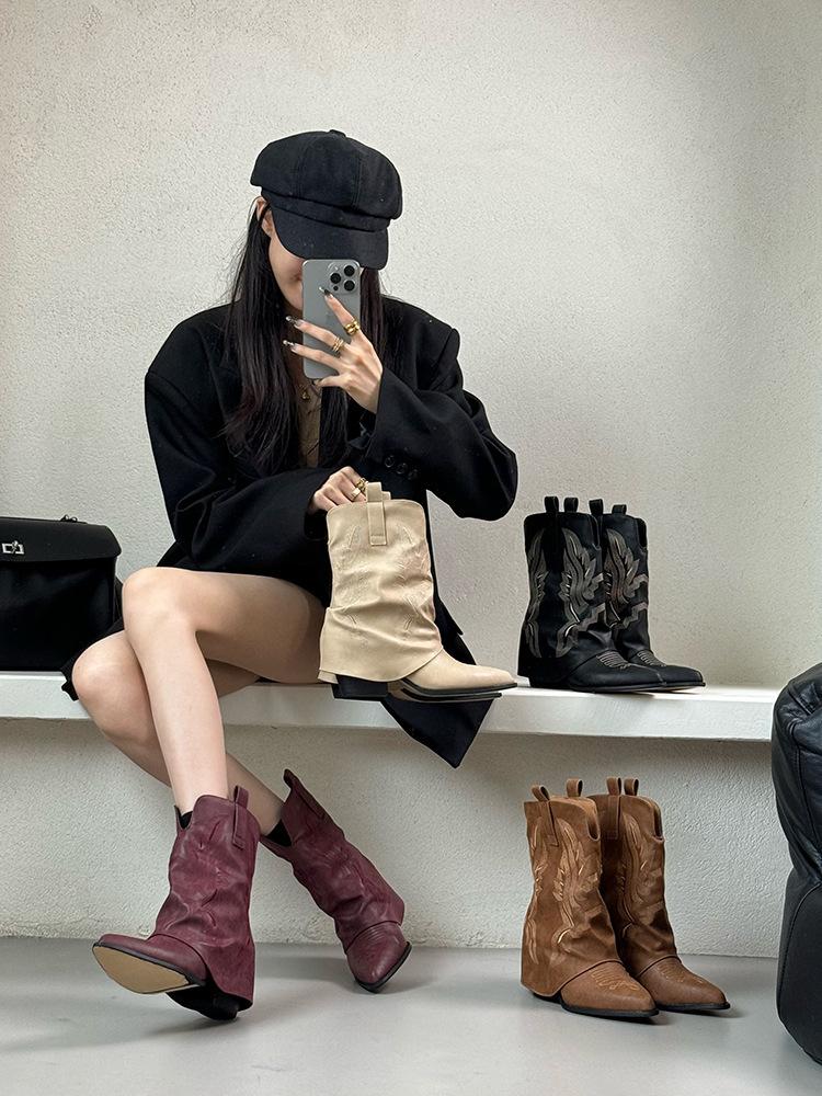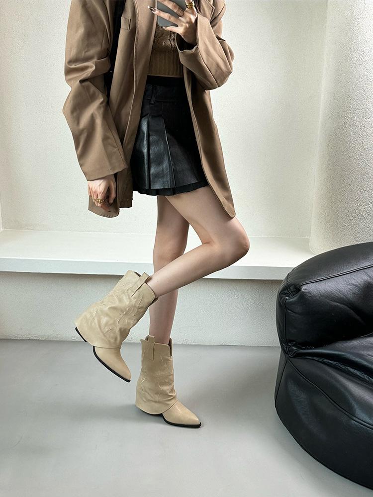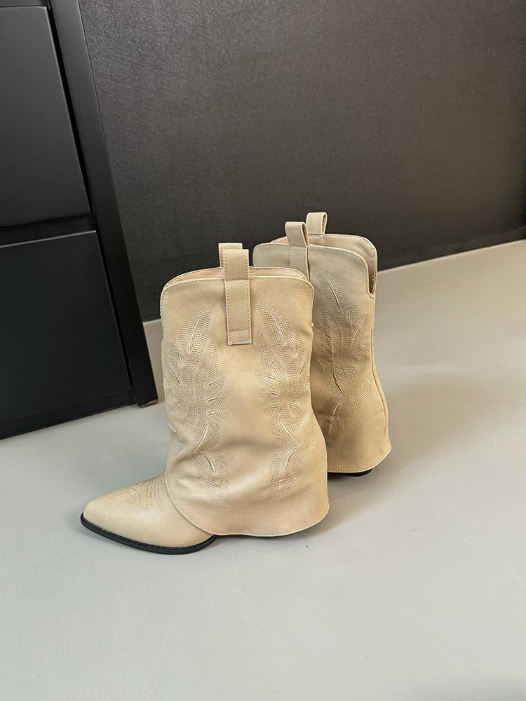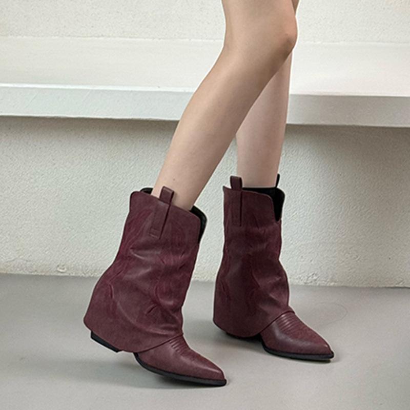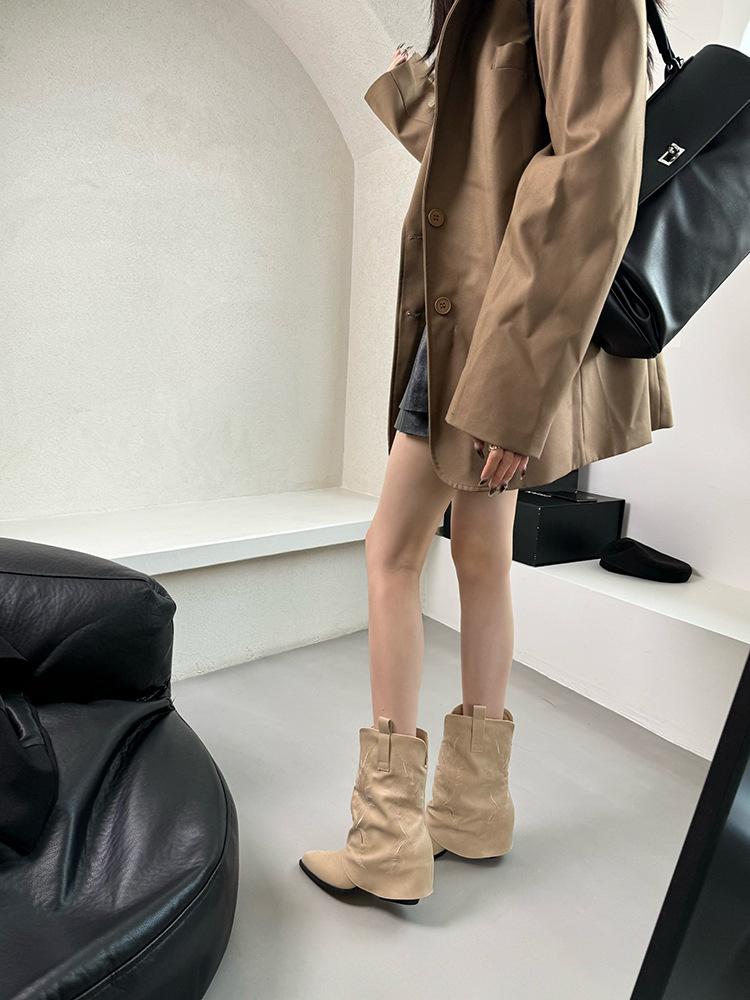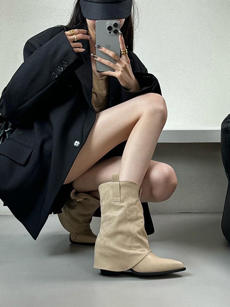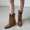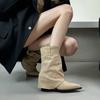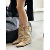 Botines de Punta para Mujer Nuevos 2025 Otoño Invierno Botas Tacones Altos Tacón Grueso Caña Corta Botas Martin Vaqueras de Jinete Occidental