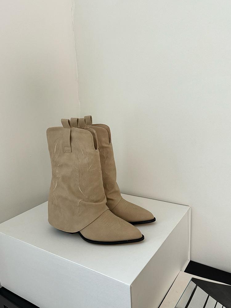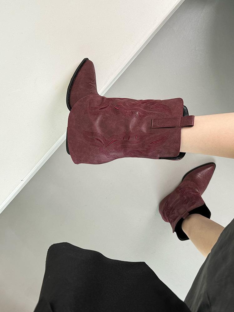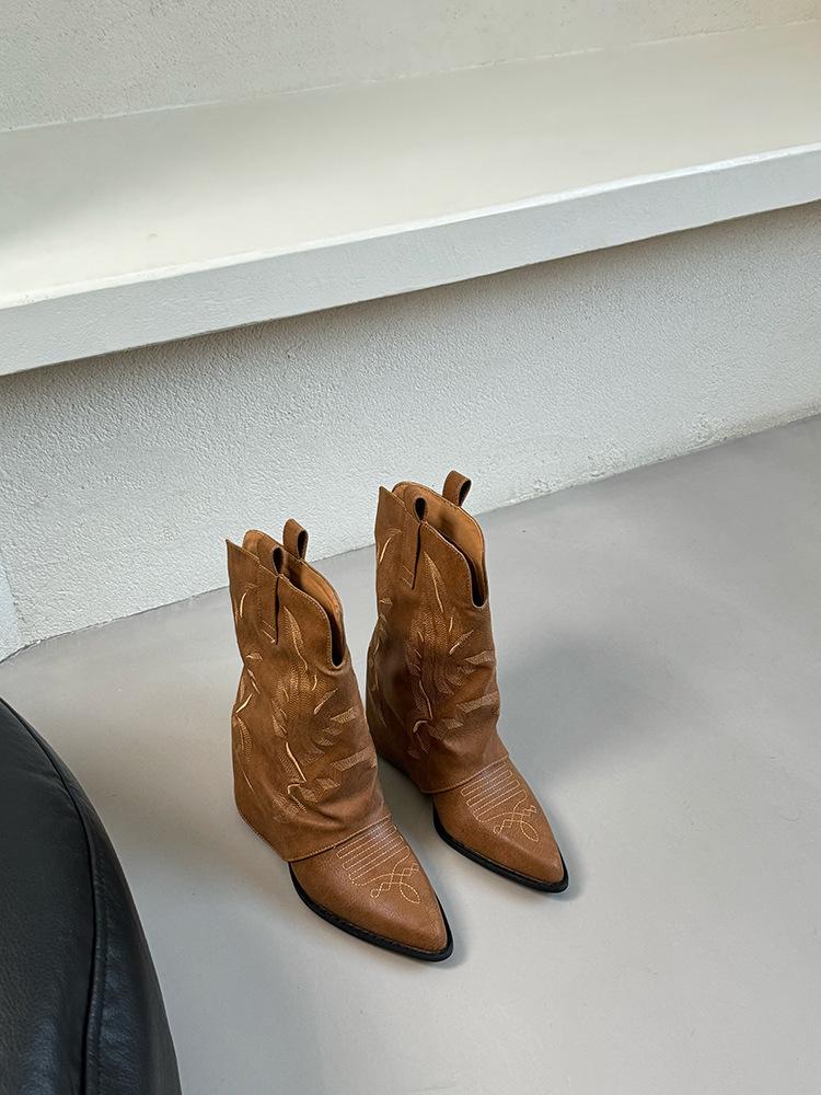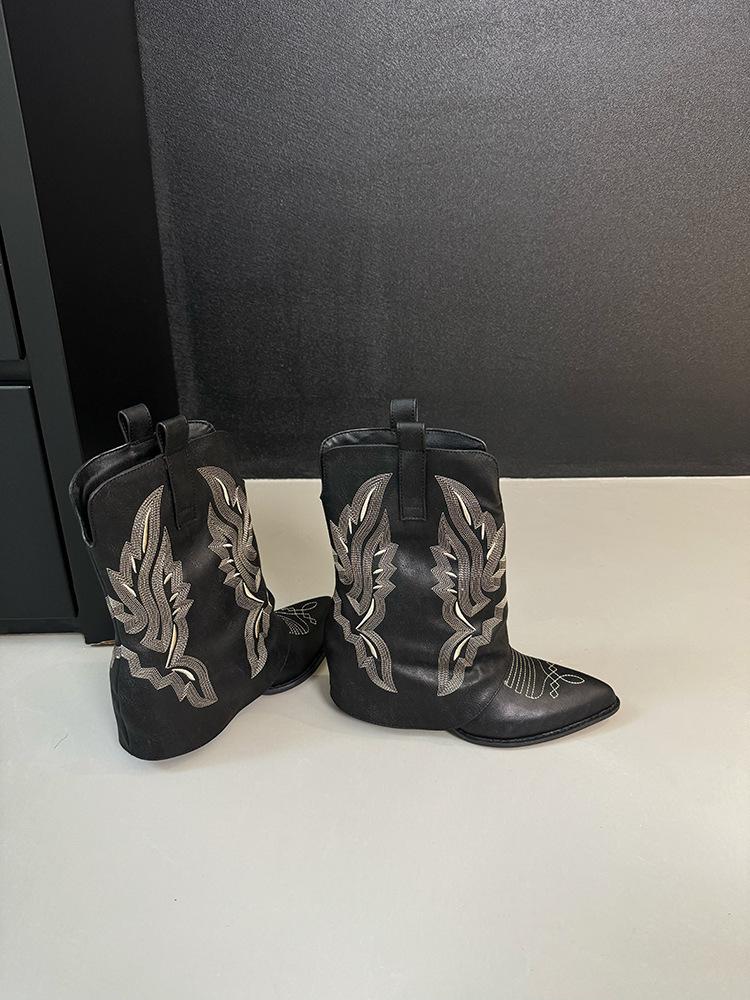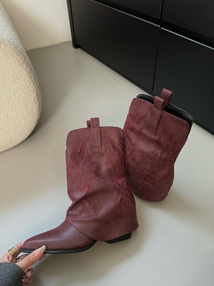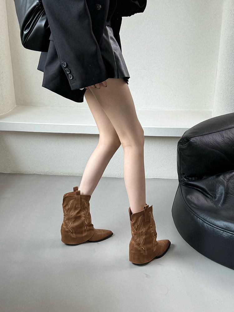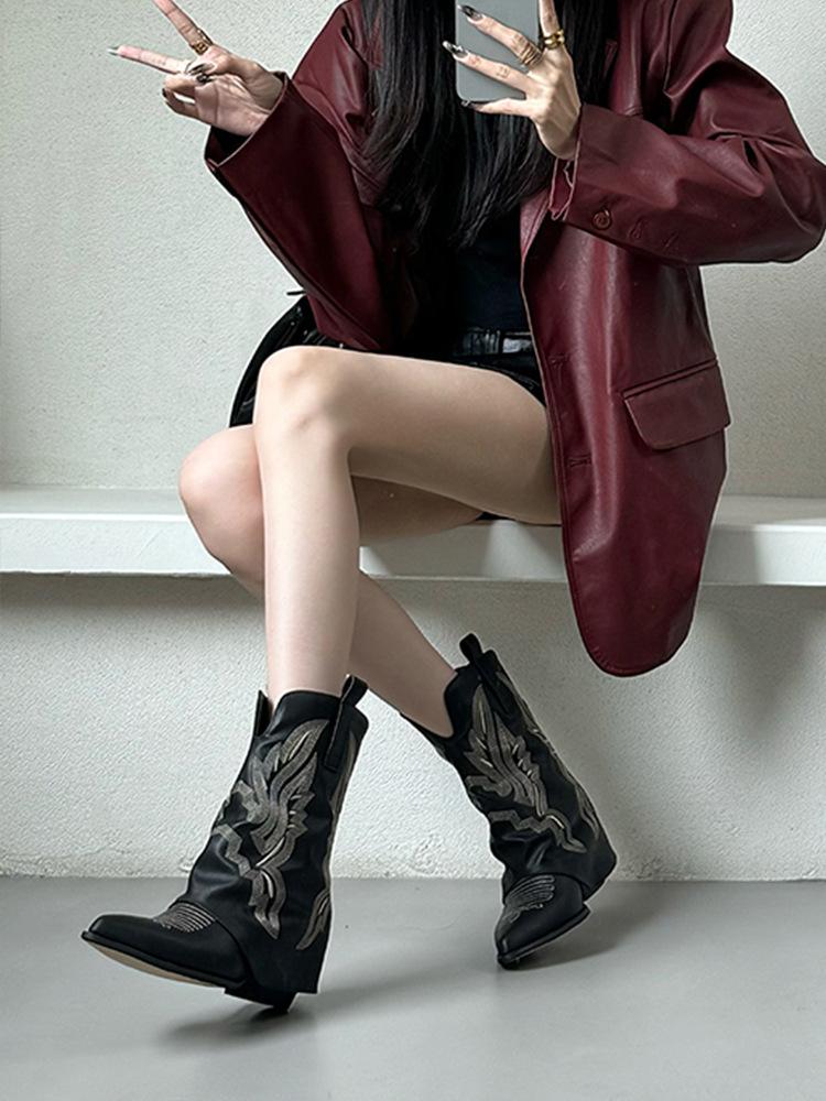 Botines de Punta para Mujer Nuevos 2025 Otoño Invierno Botas Tacones Altos Tacón Grueso Caña Corta Botas Martin Vaqueras de Jinete Occidental