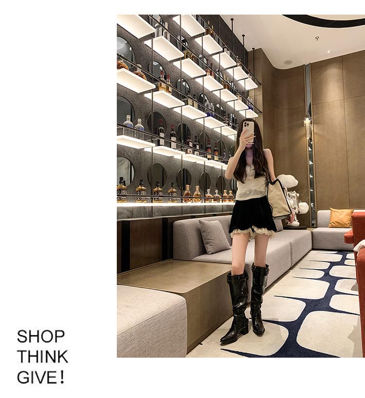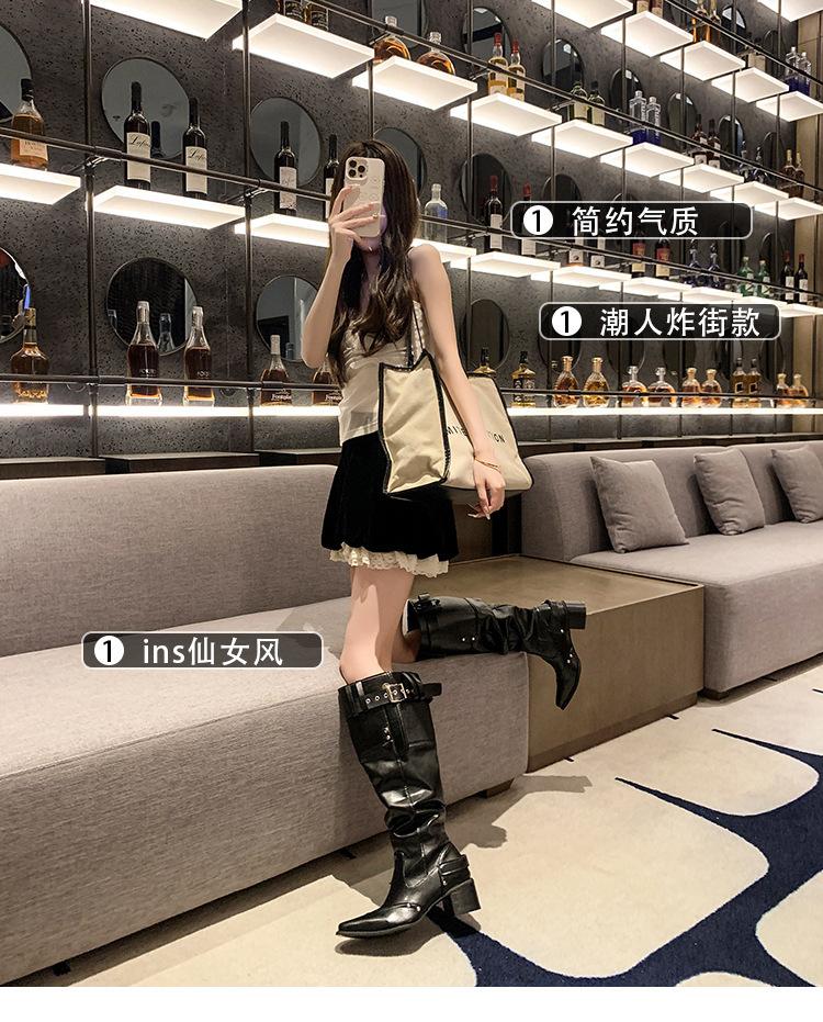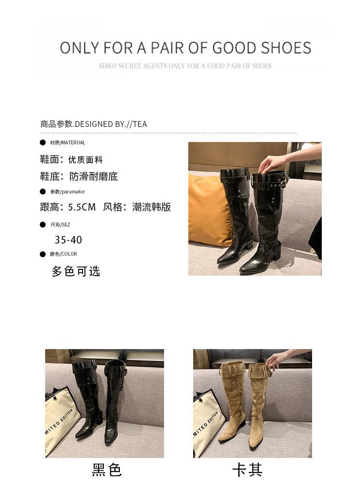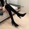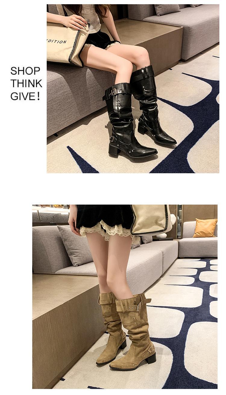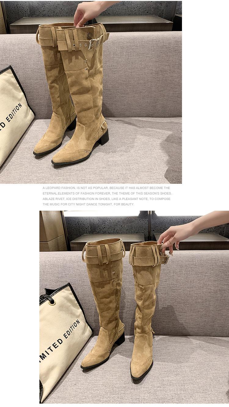 Botas Sobre la Rodilla para Mujer Primavera y Otoño 2025 Botas de Gamuza Color Albaricoque de Punta para Mujer Tacón Grueso Look Adelgazante Botas Plisadas
