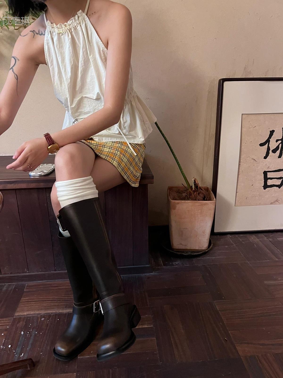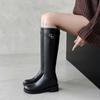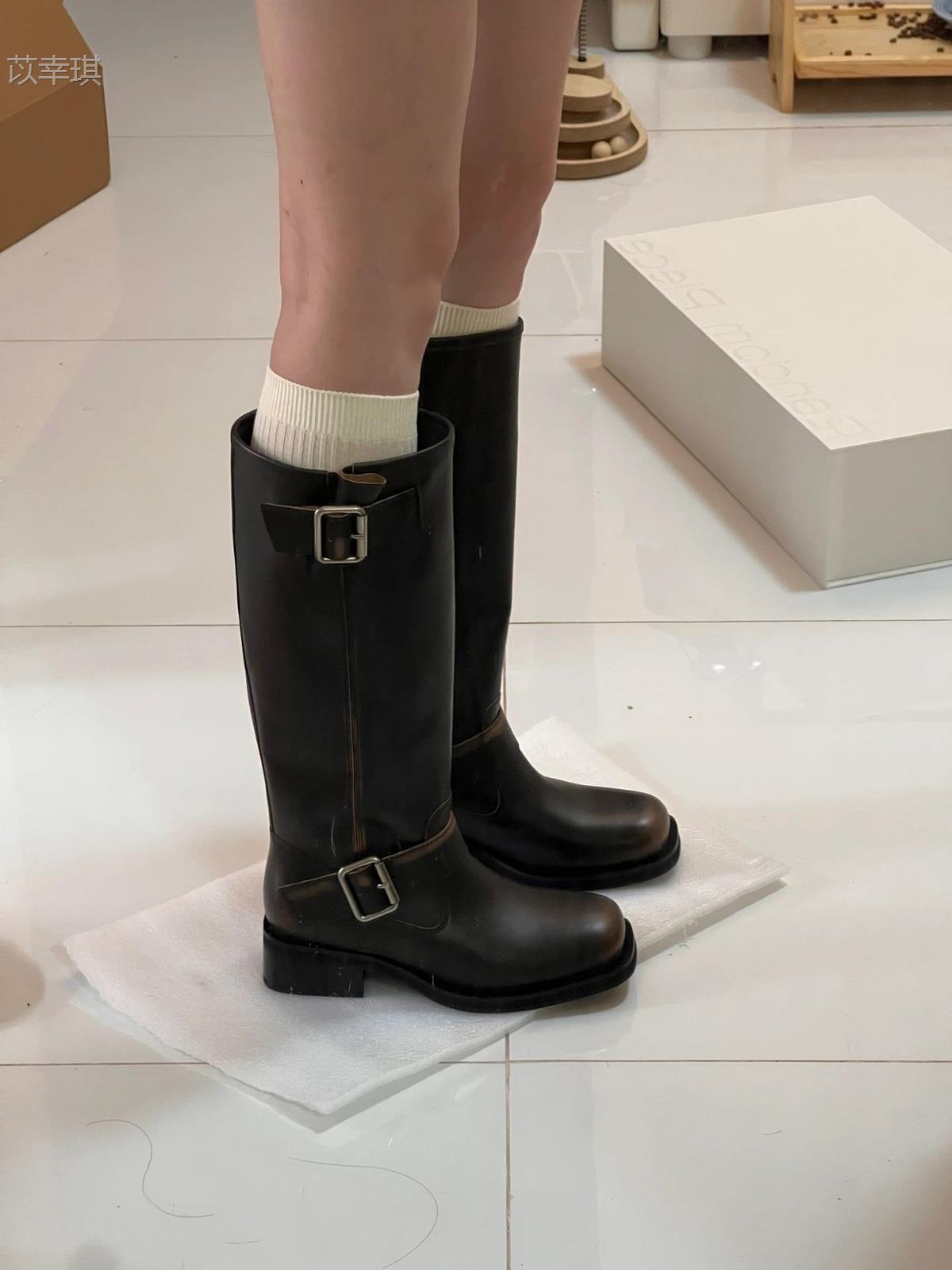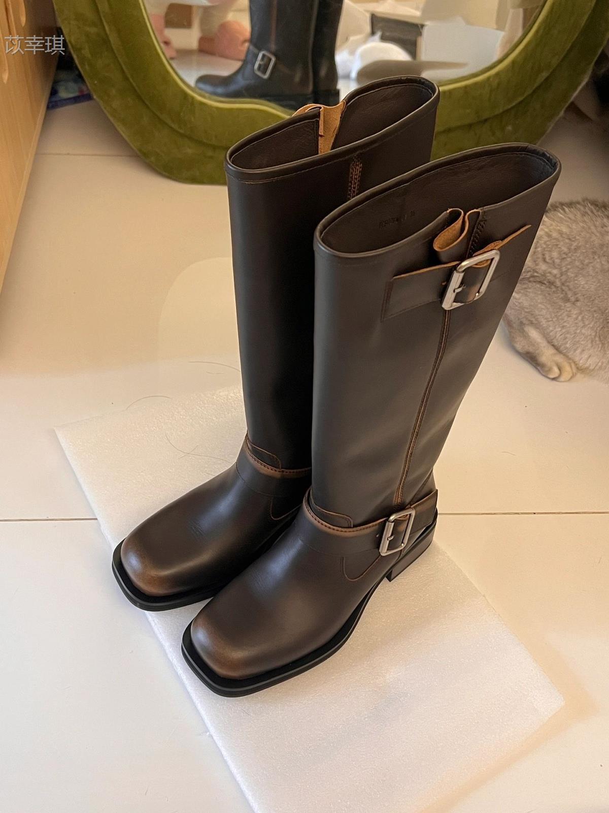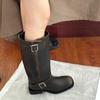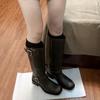 Versión de piel de vaca~Botas retro de tacón grueso de cuero genuino hasta la rodilla para mujer, circunferencia de pantorrilla grande, nicho de caña alta, botas de montar, pantorrilla ancha, botas largas ligeramente regordetas