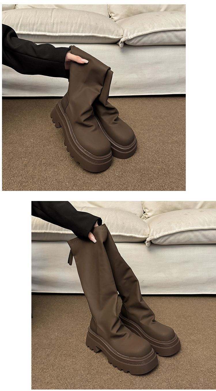 Estilo popular de celebridad de Internet botas largas slouchy de tubo alto con suela gruesa por encima de la rodilla botas de caballero adelgazantes nuevo otoño e invierno 2025