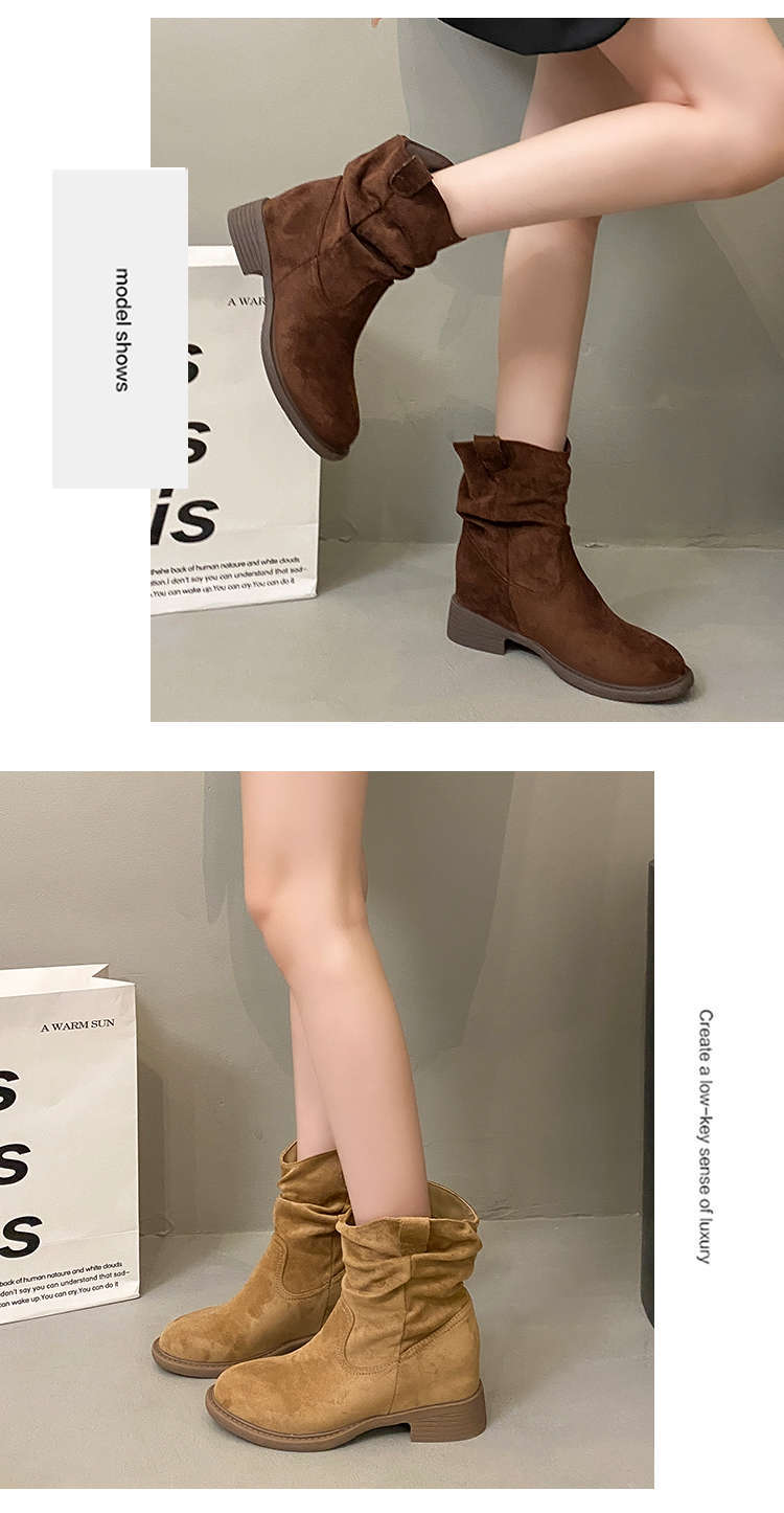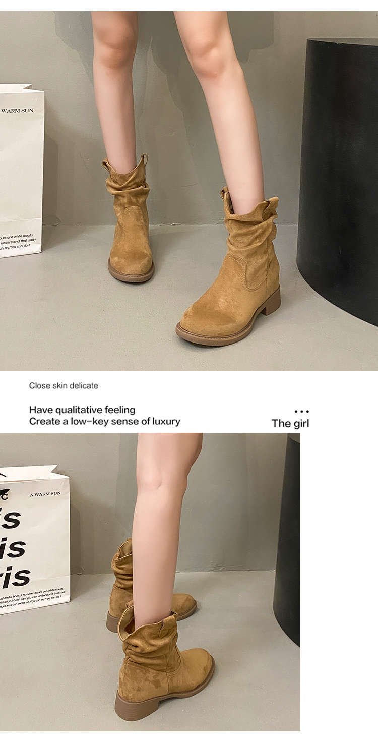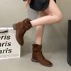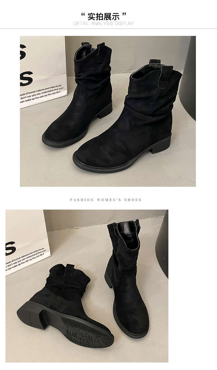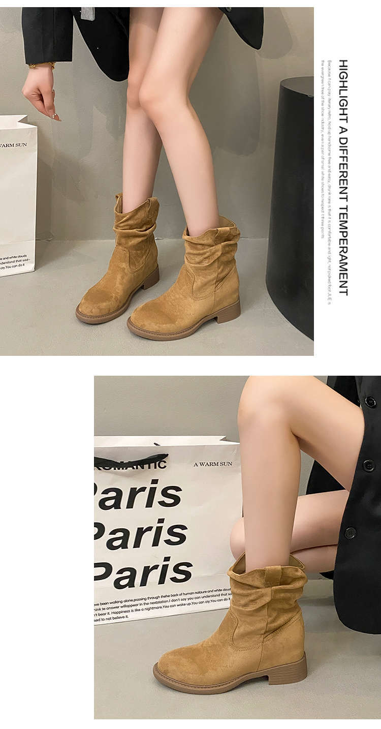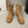Botas Vaqueras Retro para Mujer 2025 Otoño Nuevas Botas de Media Caña Apiladas Nuevas Botas Cortas Martin para Viaje