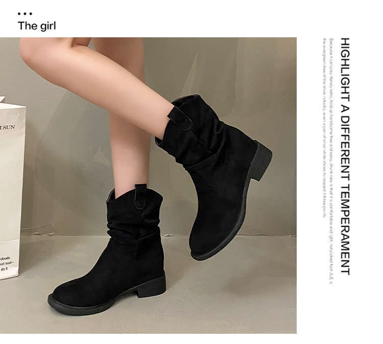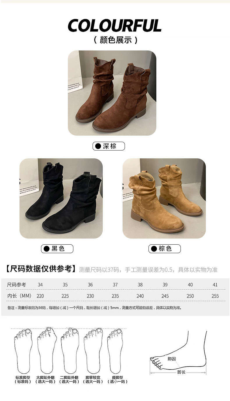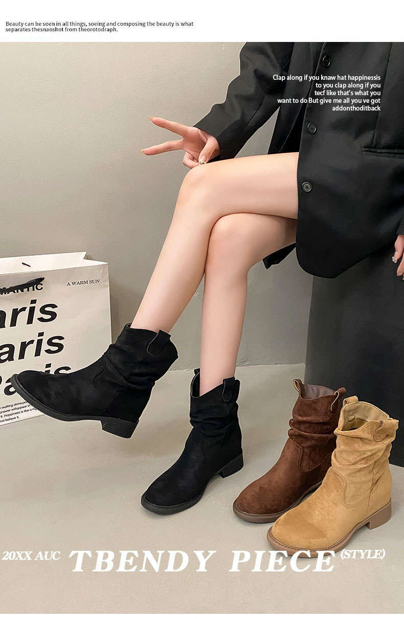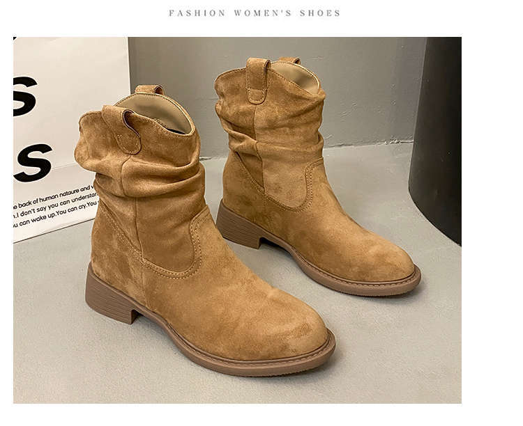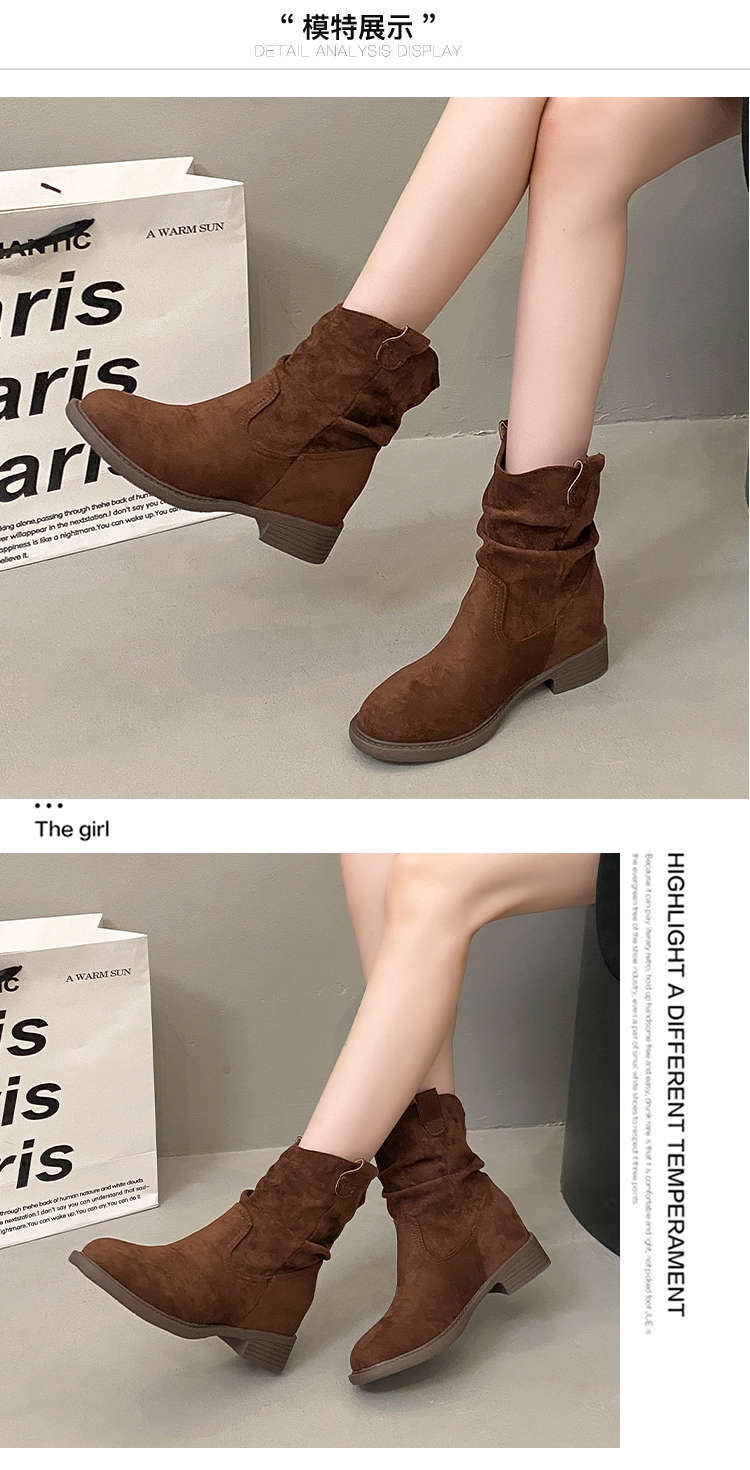 Botas Vaqueras Retro para Mujer 2025 Otoño Nuevas Botas de Media Caña Apiladas Nuevas Botas Cortas Martin para Viaje