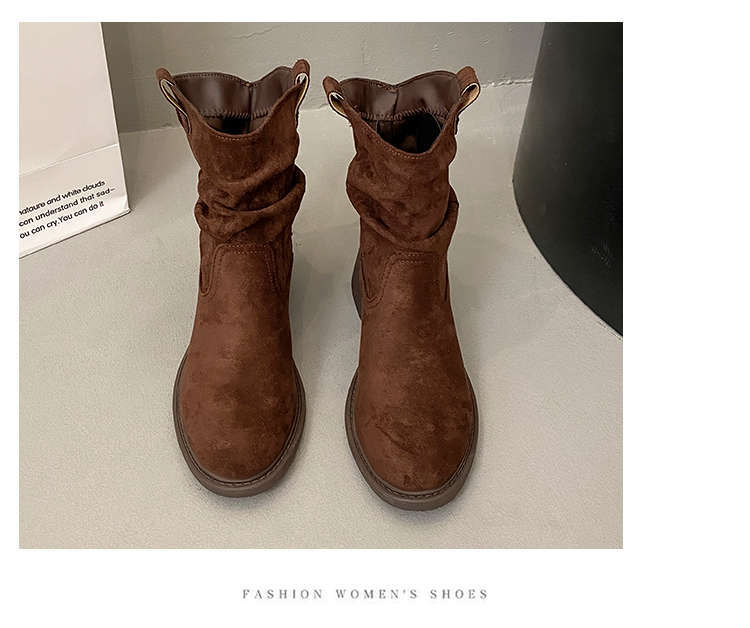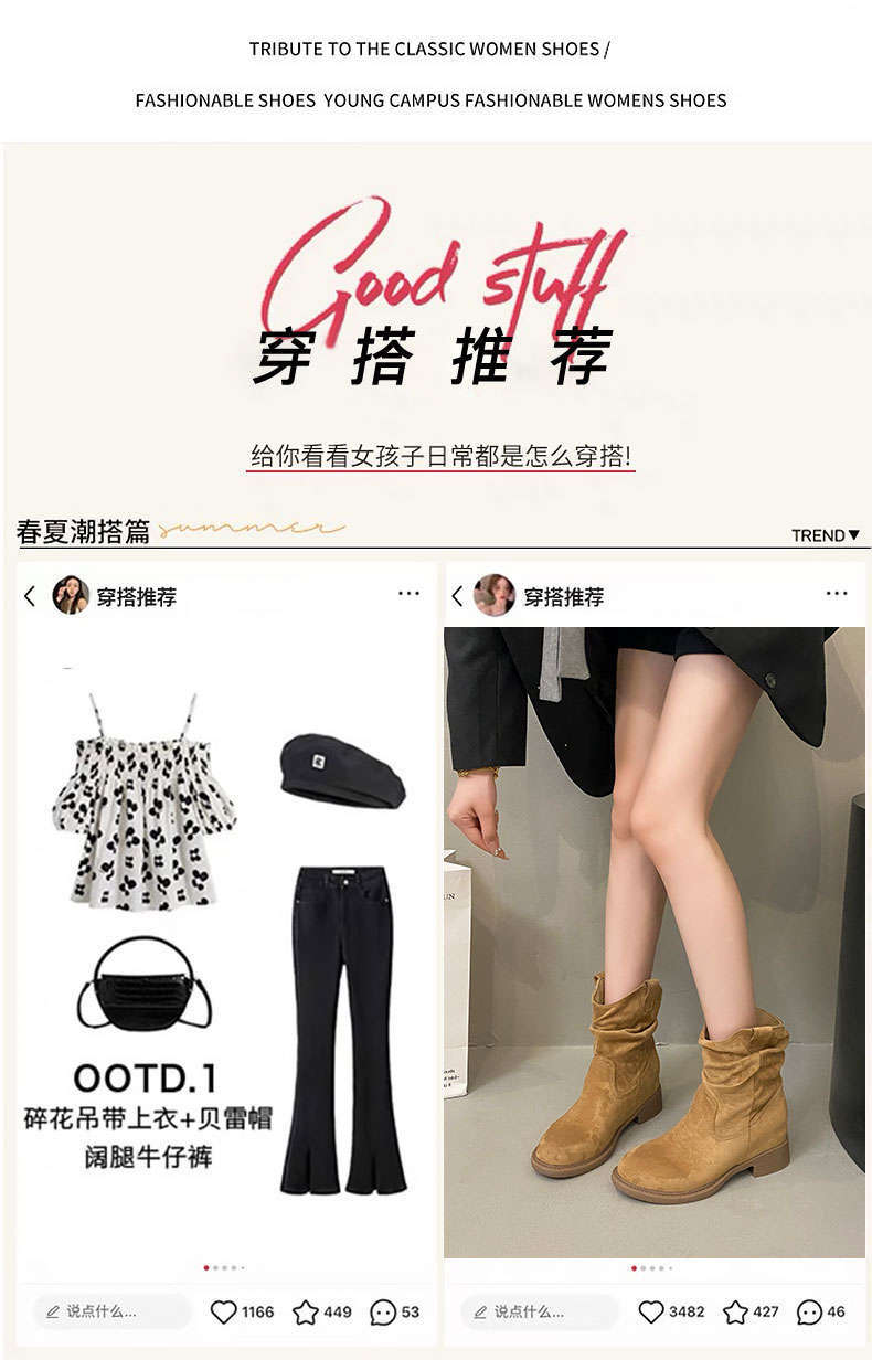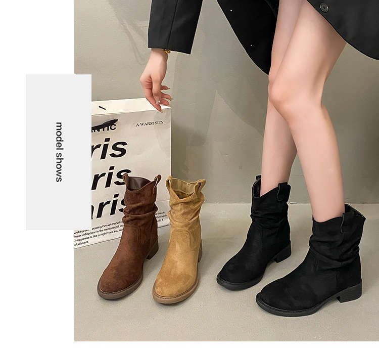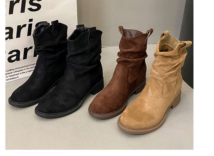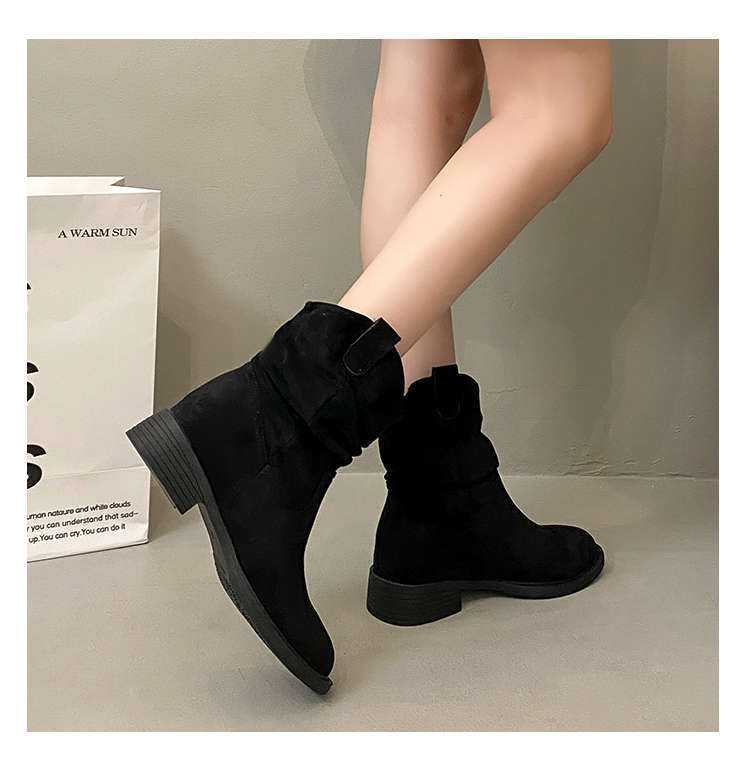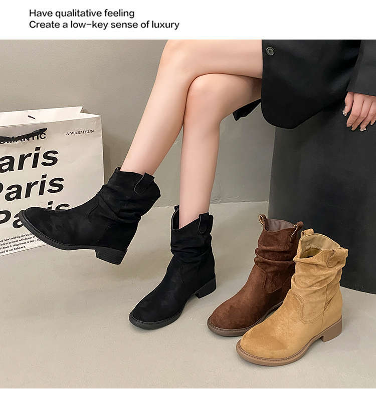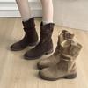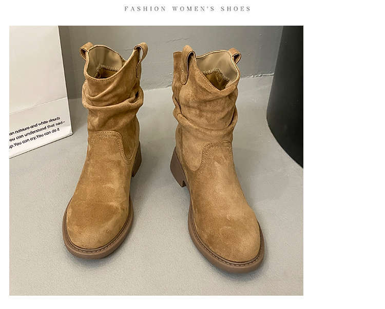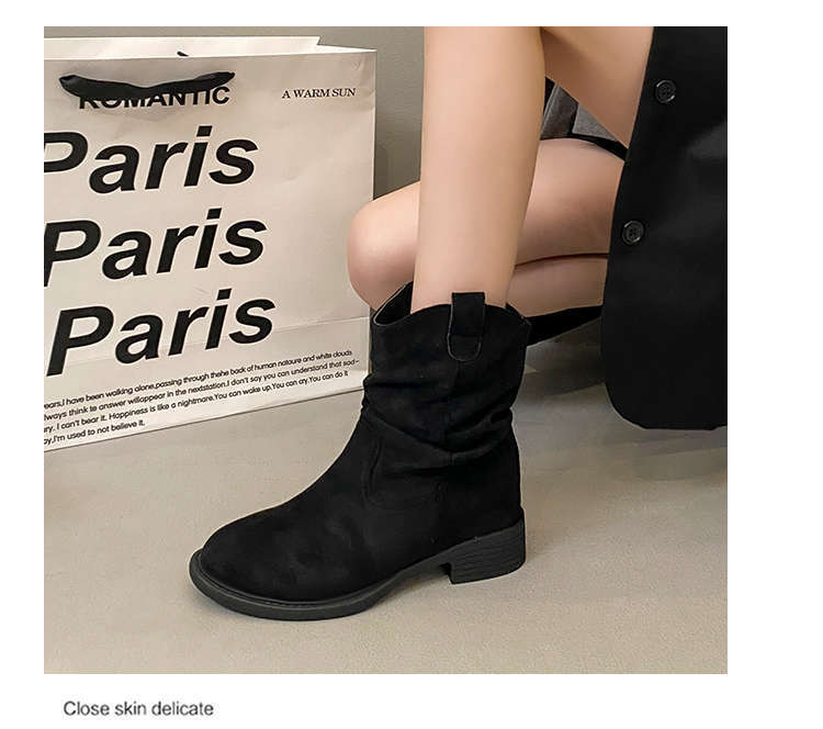 Botas Vaqueras Retro para Mujer 2025 Otoño Nuevas Botas de Media Caña Apiladas Nuevas Botas Cortas Martin para Viaje