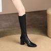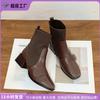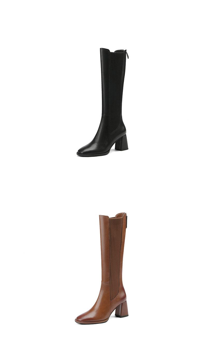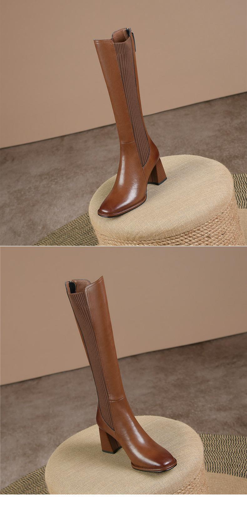 Botines Elásticos Adelgazantes para Mujer 2025 Nuevo Estilo de Invierno Tacón Grueso Retro Marrón Calcetines Tubo Alto Hasta la Rodilla