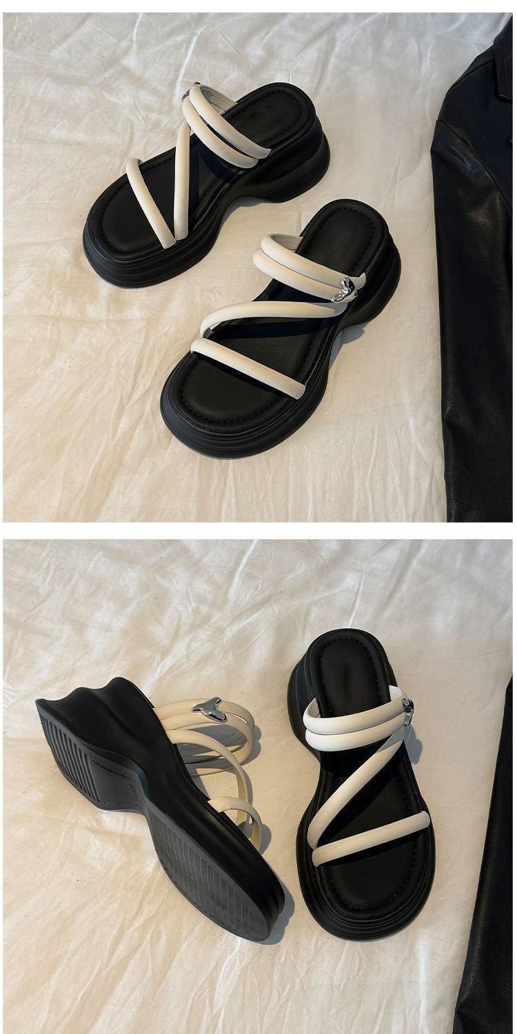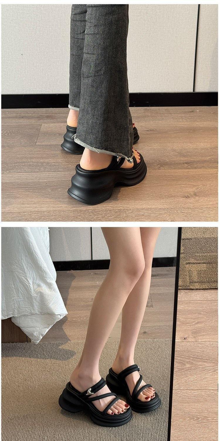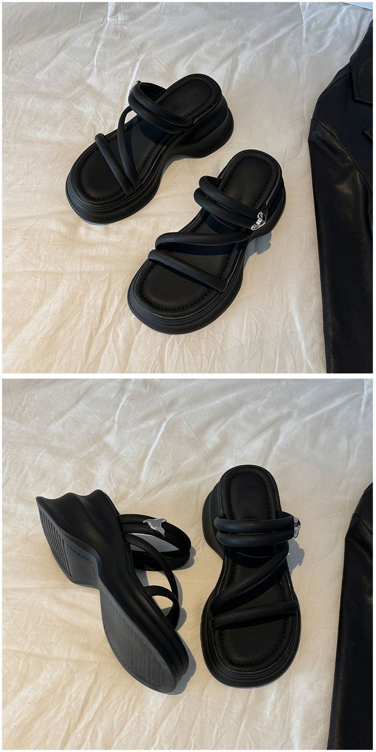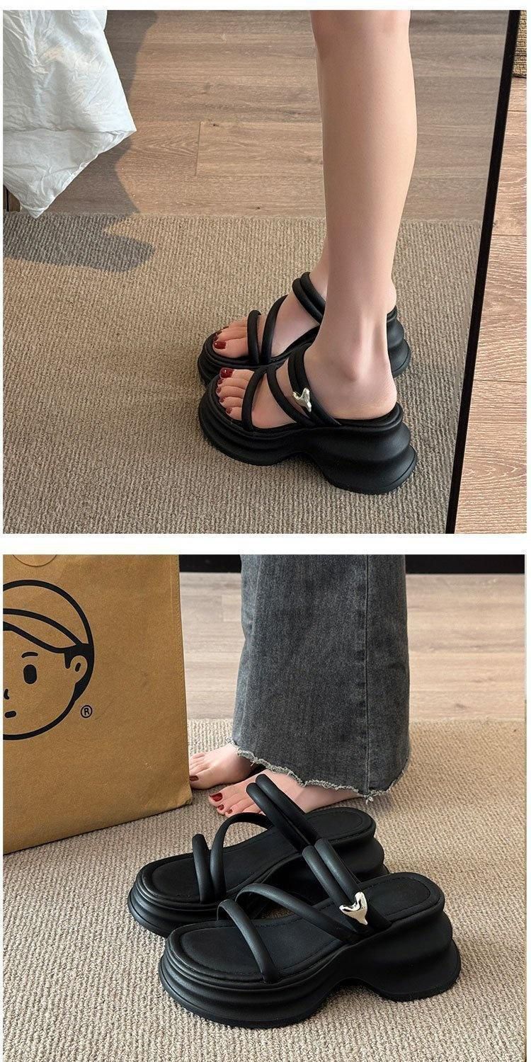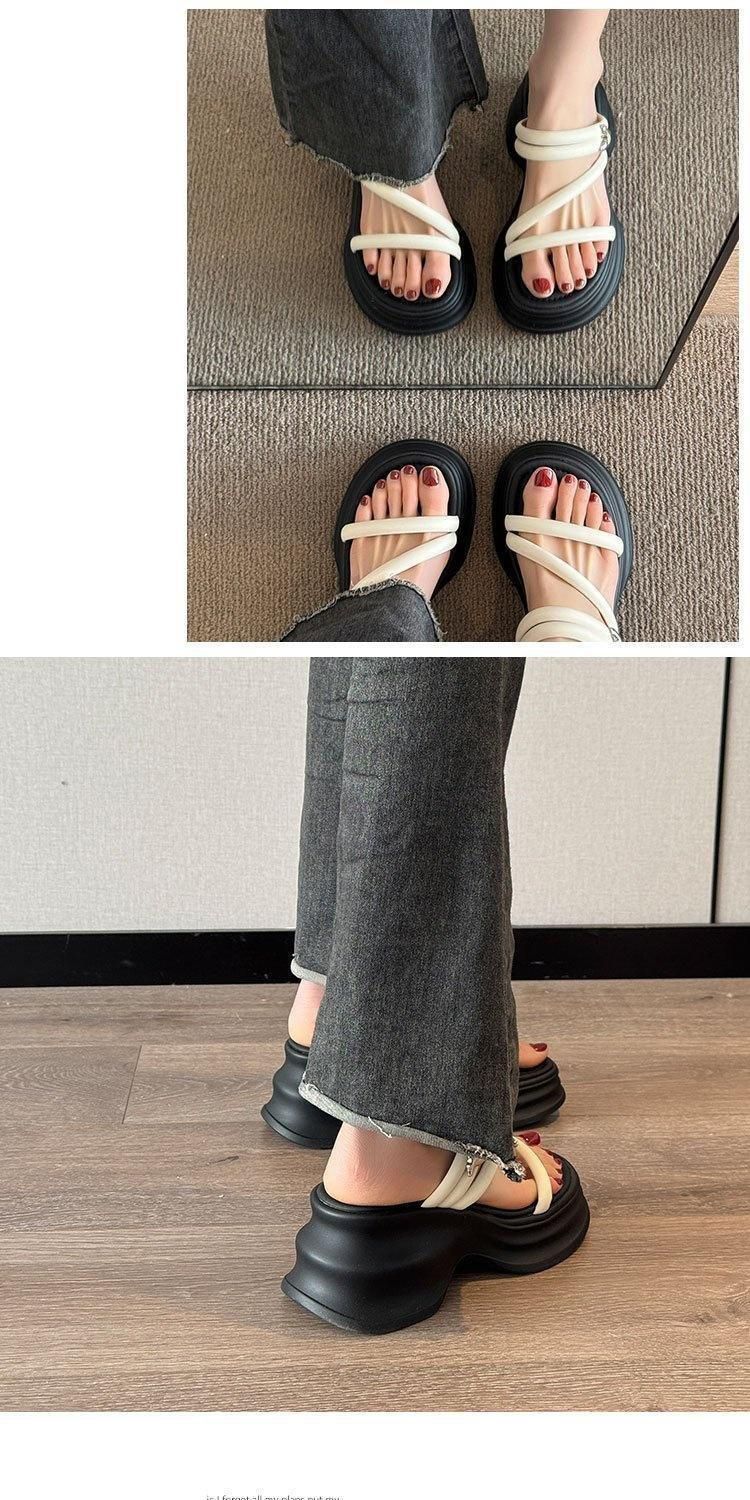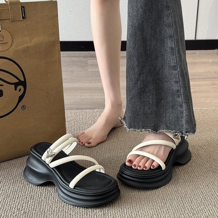 Sandalias y pantuflas de suela gruesa para mujer verano 2025 nueva moda versátil cómodas de alta gama para persona pequeña zapatos de playa