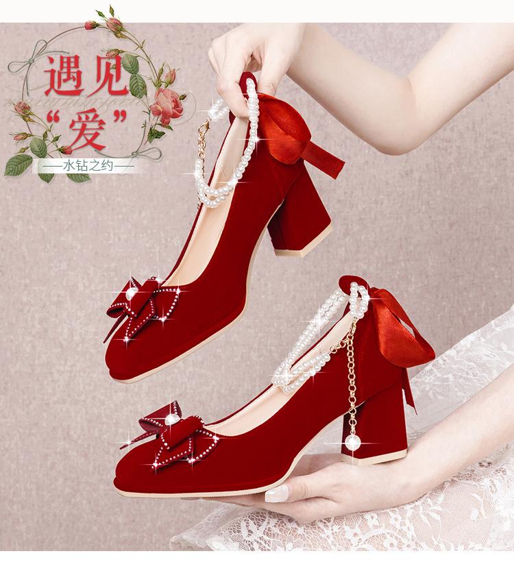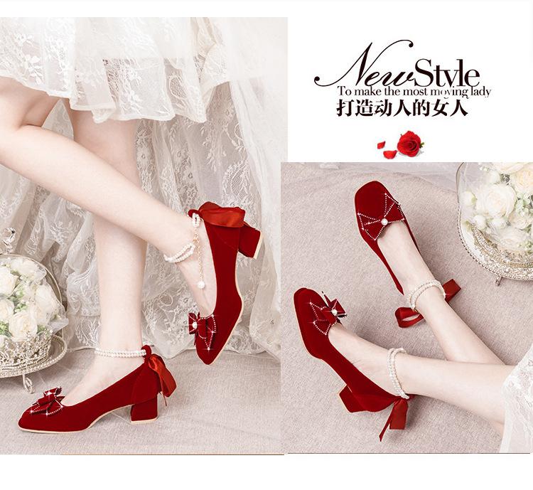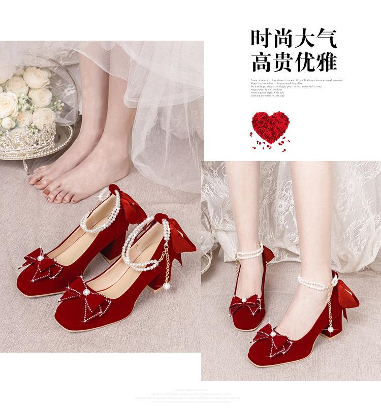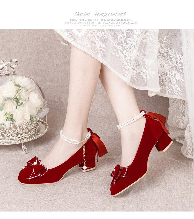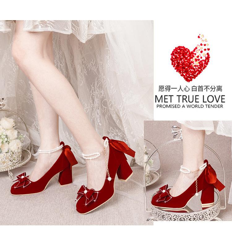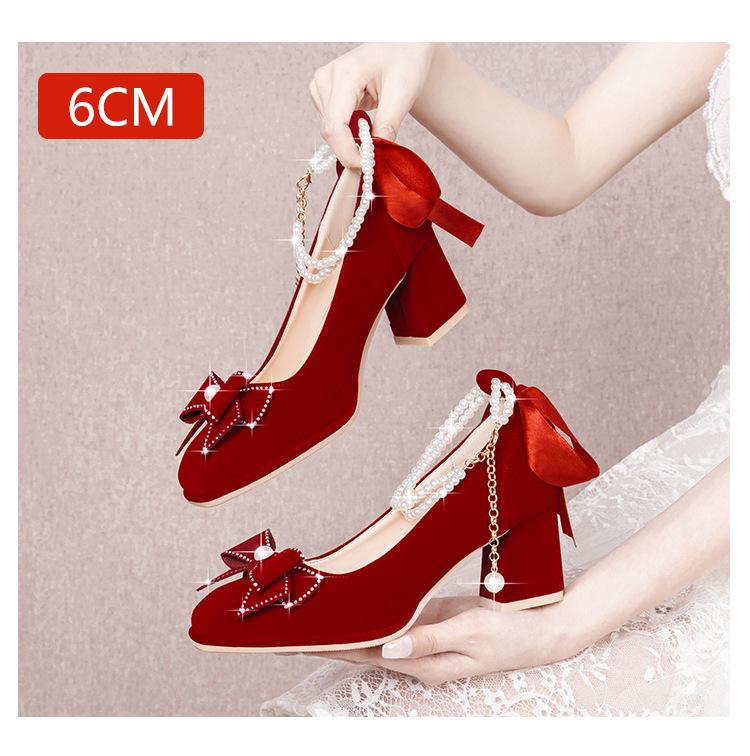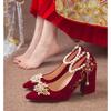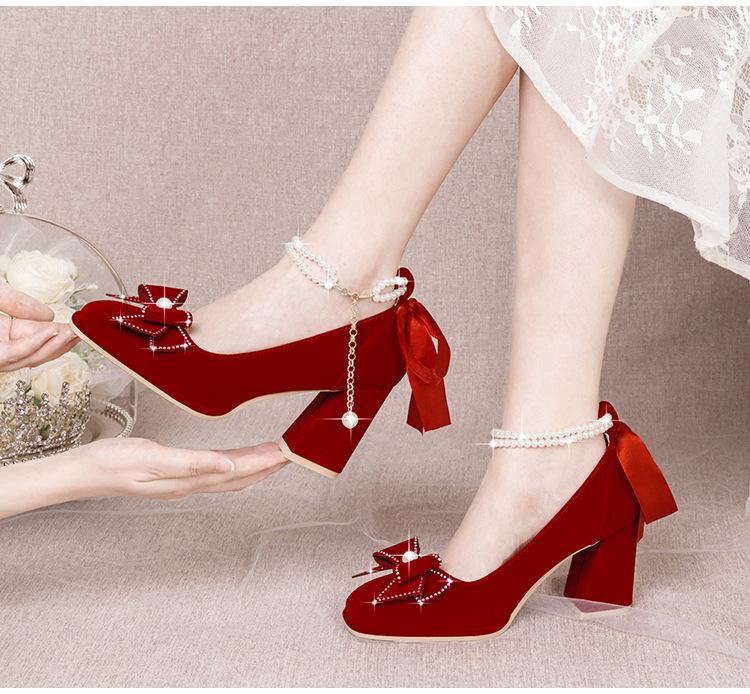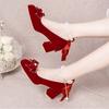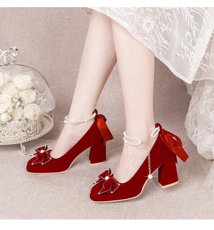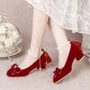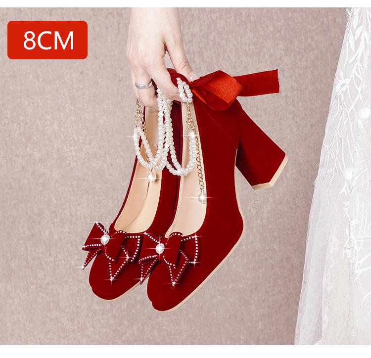 Zapatos de Boda para Mujer 2025 Otoño Nuevo Tacón Grueso No Cansa los Pies Tacones Altos Boda Rojo Versátil Zapatos de Novia Zapatos Xiuhe