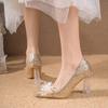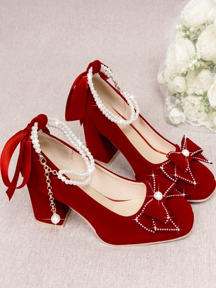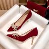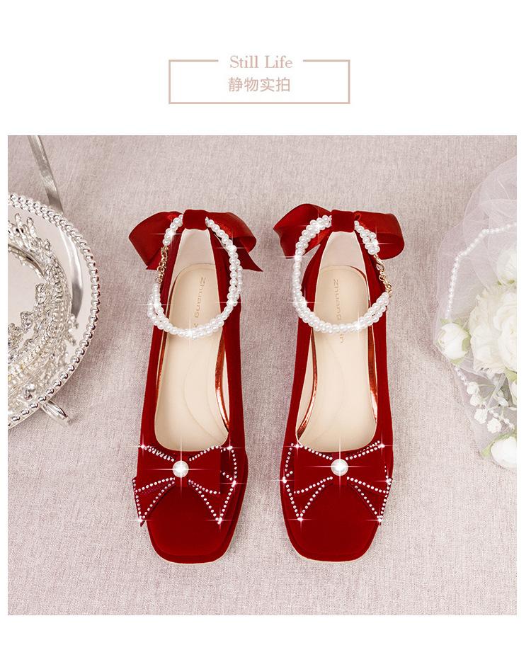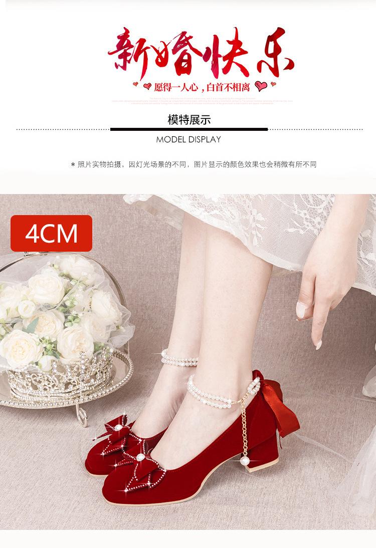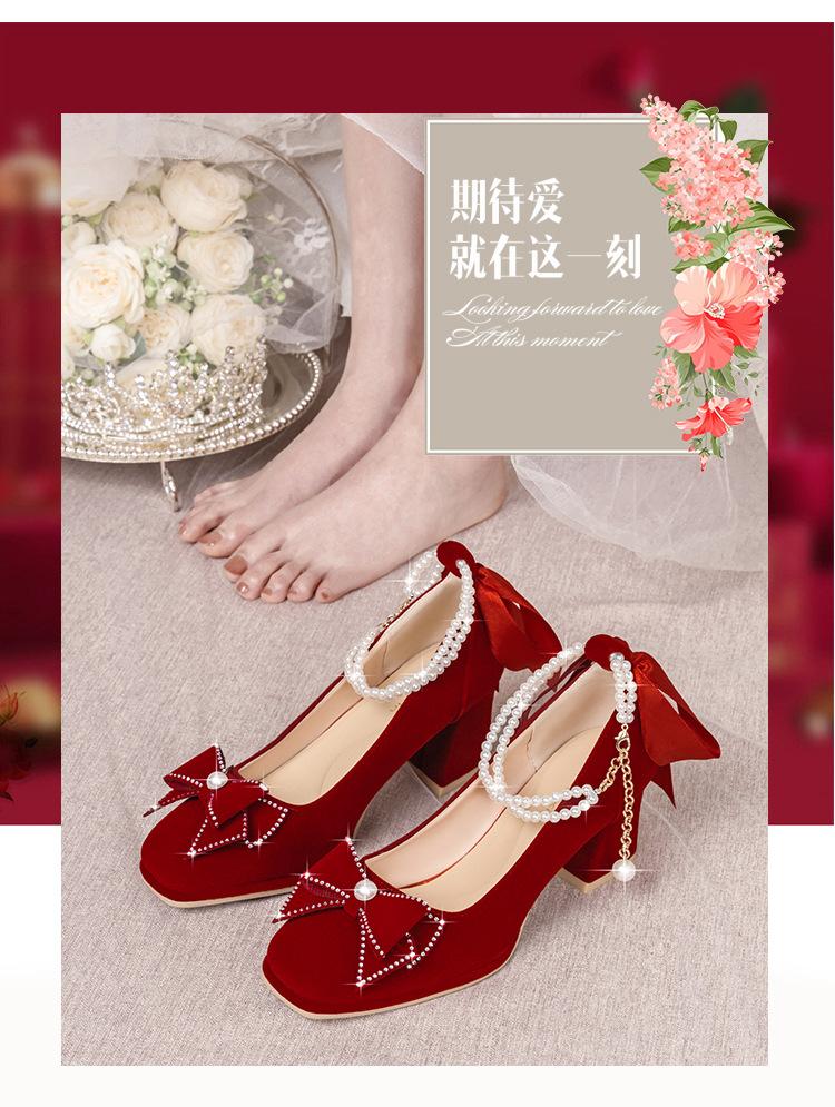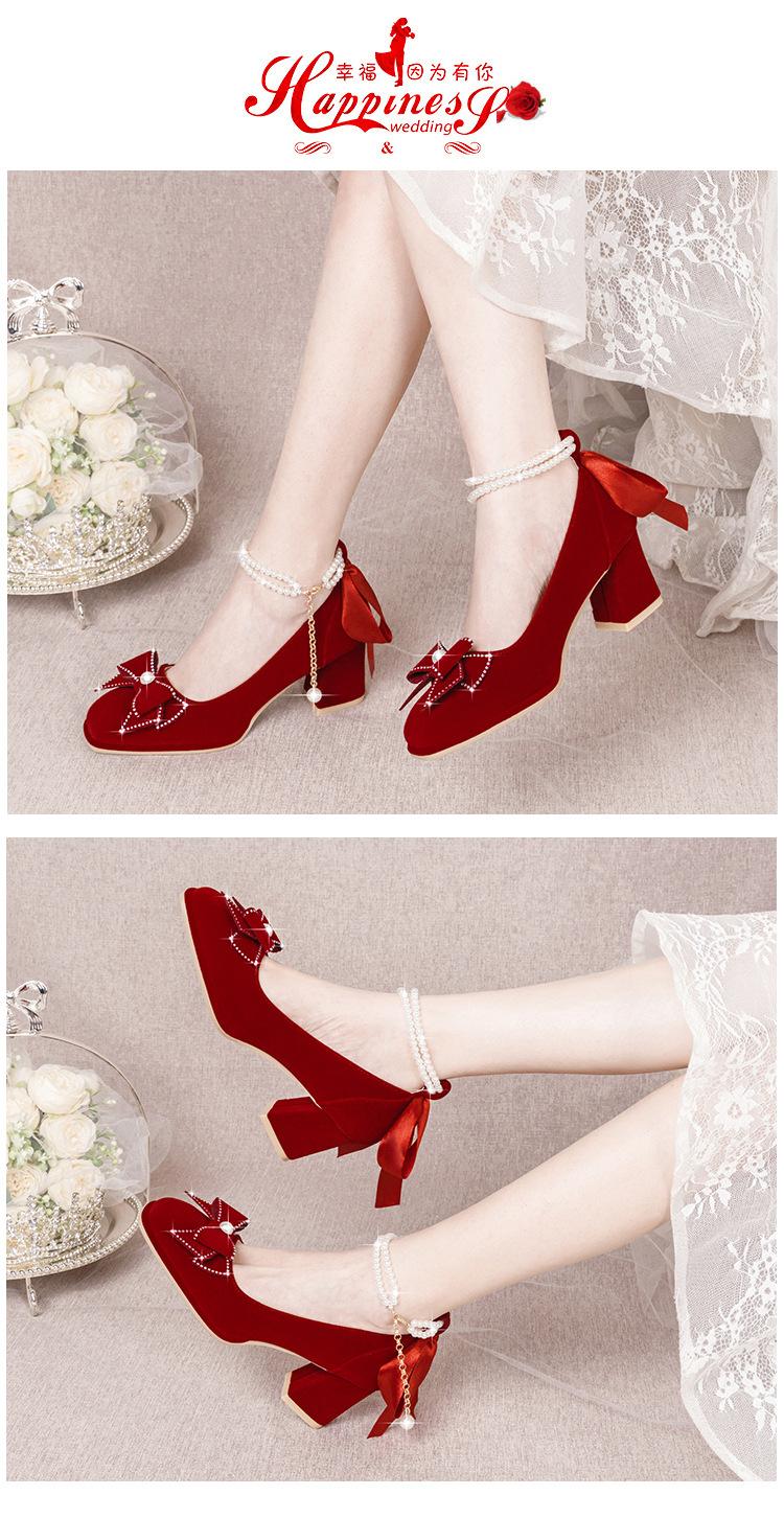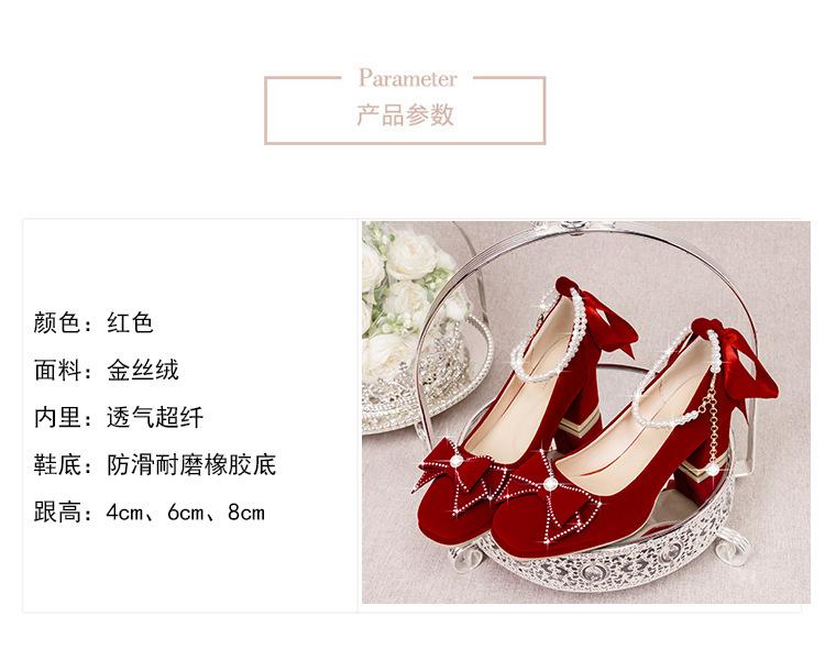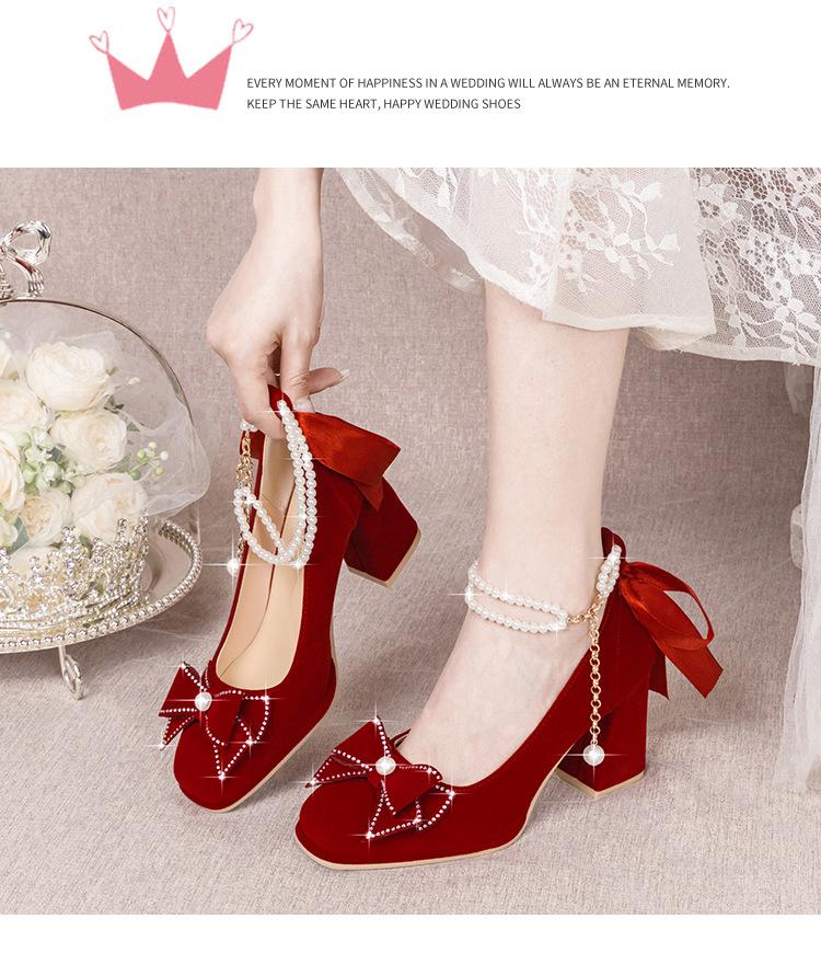 Zapatos de Boda para Mujer 2025 Otoño Nuevo Tacón Grueso No Cansa los Pies Tacones Altos Boda Rojo Versátil Zapatos de Novia Zapatos Xiuhe