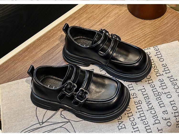 Zapatos de Cuero para Niñas Zapatos de Princesa Primavera 2025 Nuevos Zapatos para Niños Negros Zapatos Individuales para Niña Pequeña Mocasines Estilo Británico