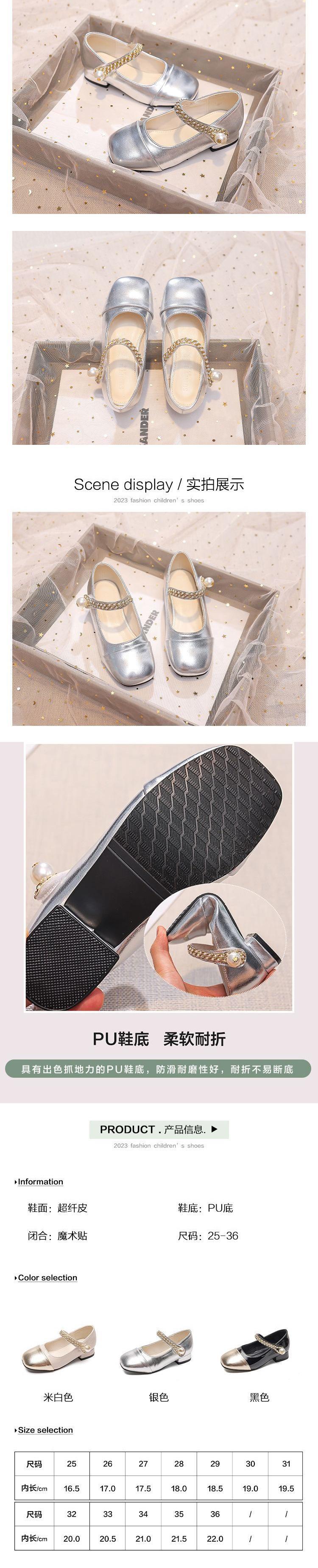 Zapatos Mary Jane para Niñas 2024 Verano Nuevos Zapatos de Tacón Alto de Princesa para Niños Zapatos Pequeños de Cuero Zapatos de Suela Suave de Perlas de Pequeño Aroma