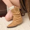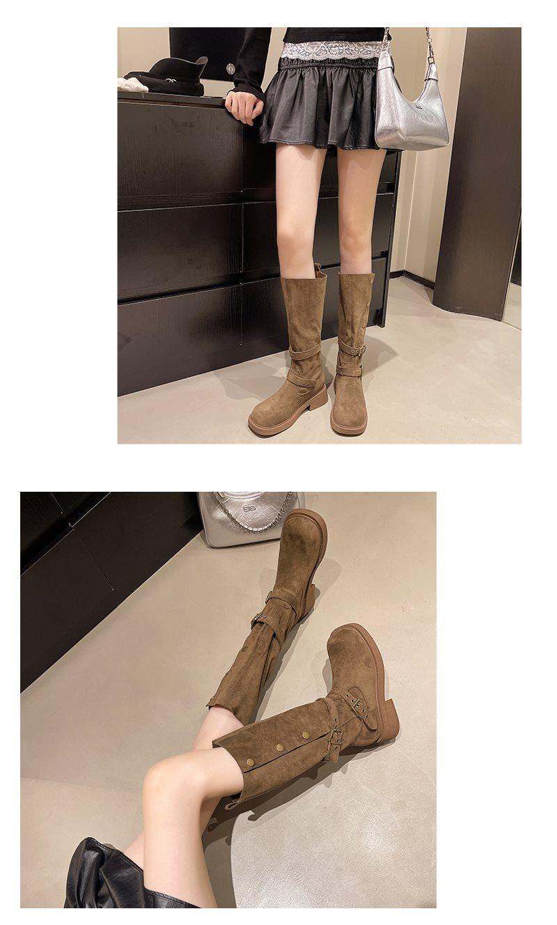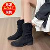 Botas Martin de Caña Media con Suela Gruesa y Solapa para Mujer Otoño 2025 Nuevo Retro Vaquero Occidental Caballero Botas Adelgazantes de Caña Media