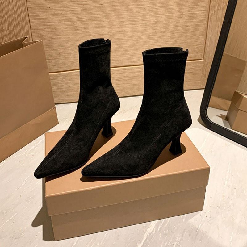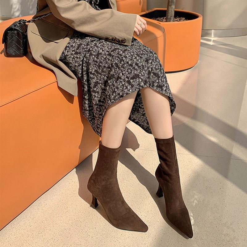 Compra Botines Marrones Mujer Tacón Alto Aguja Gamuza Punta Afilada Cierre Trasero 2025 Nuevo Invierno Estilo Coreano Botas Elásticas Ajustadas al por mayor en Joom.pro