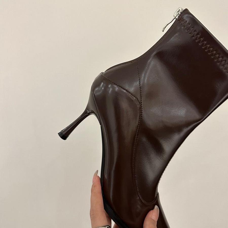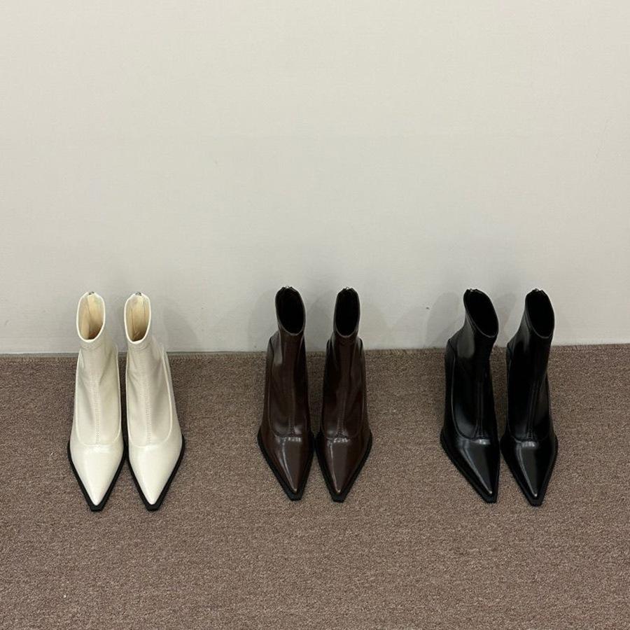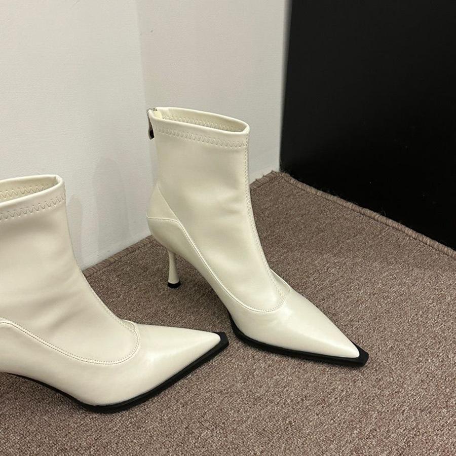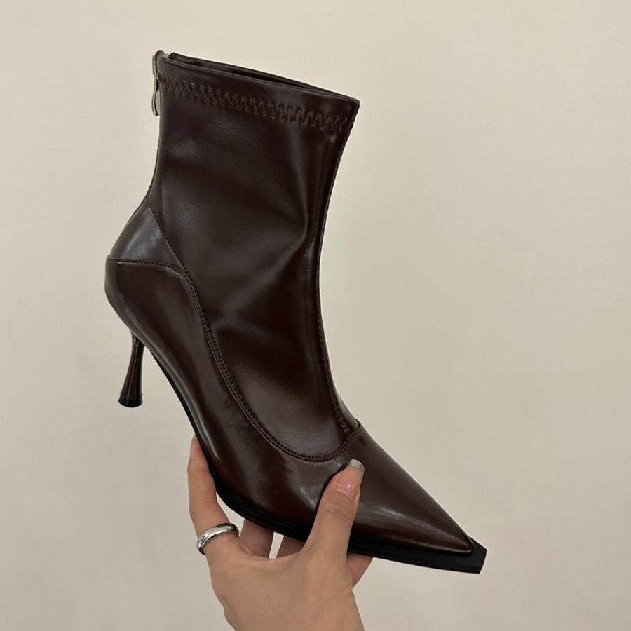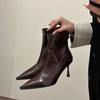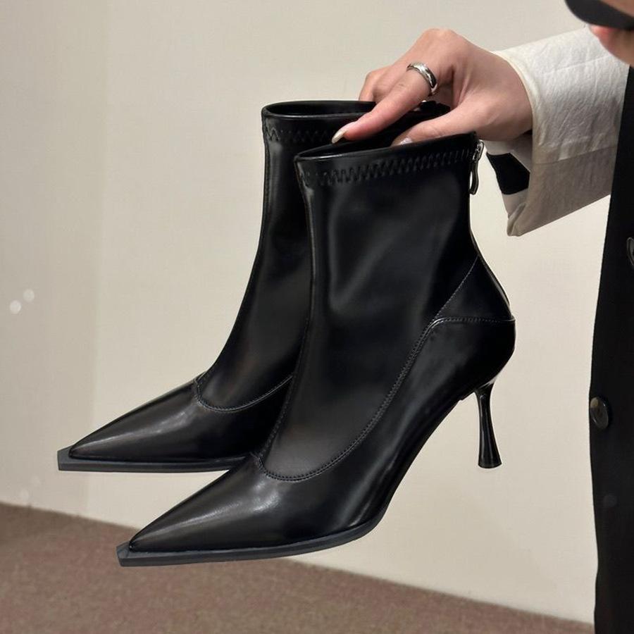 Botines Negros de Punta para Mujer Temperamento Adelgazantes Moda Botas de Tacón Alto Cremallera Trasera Versátiles Tacón de Aguja Botas Ajustadas