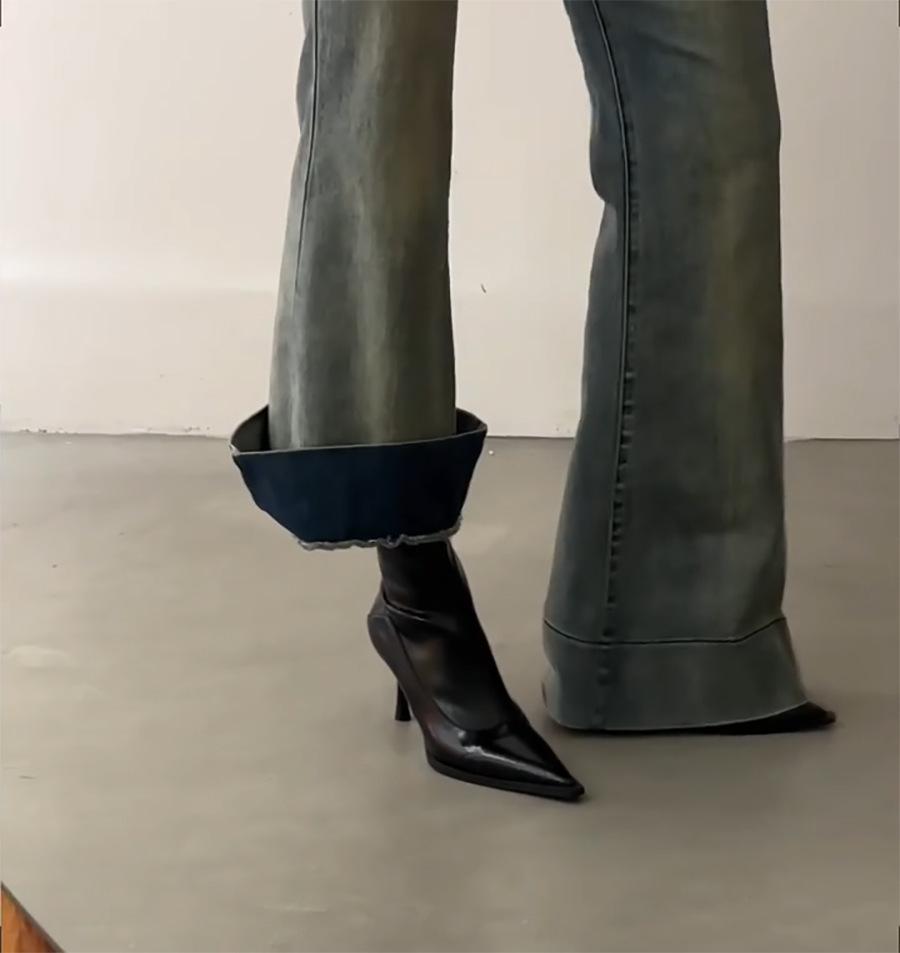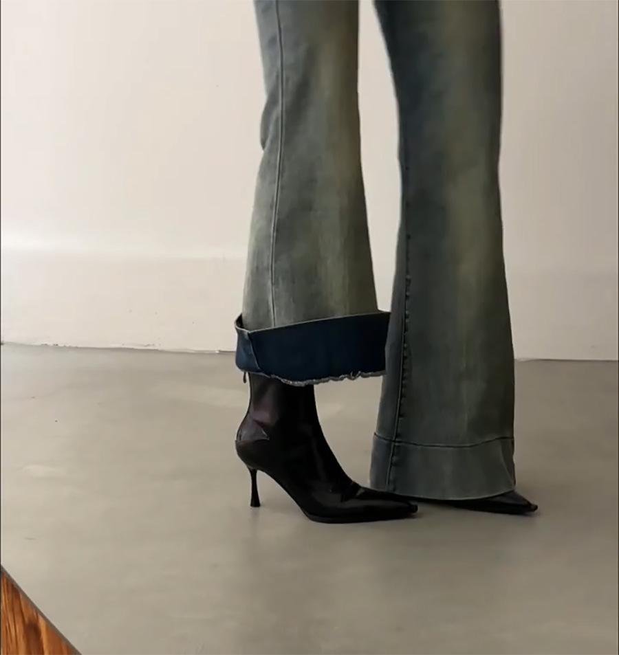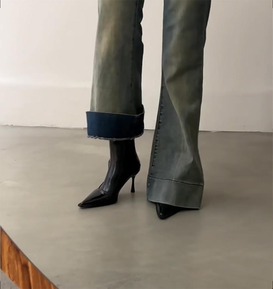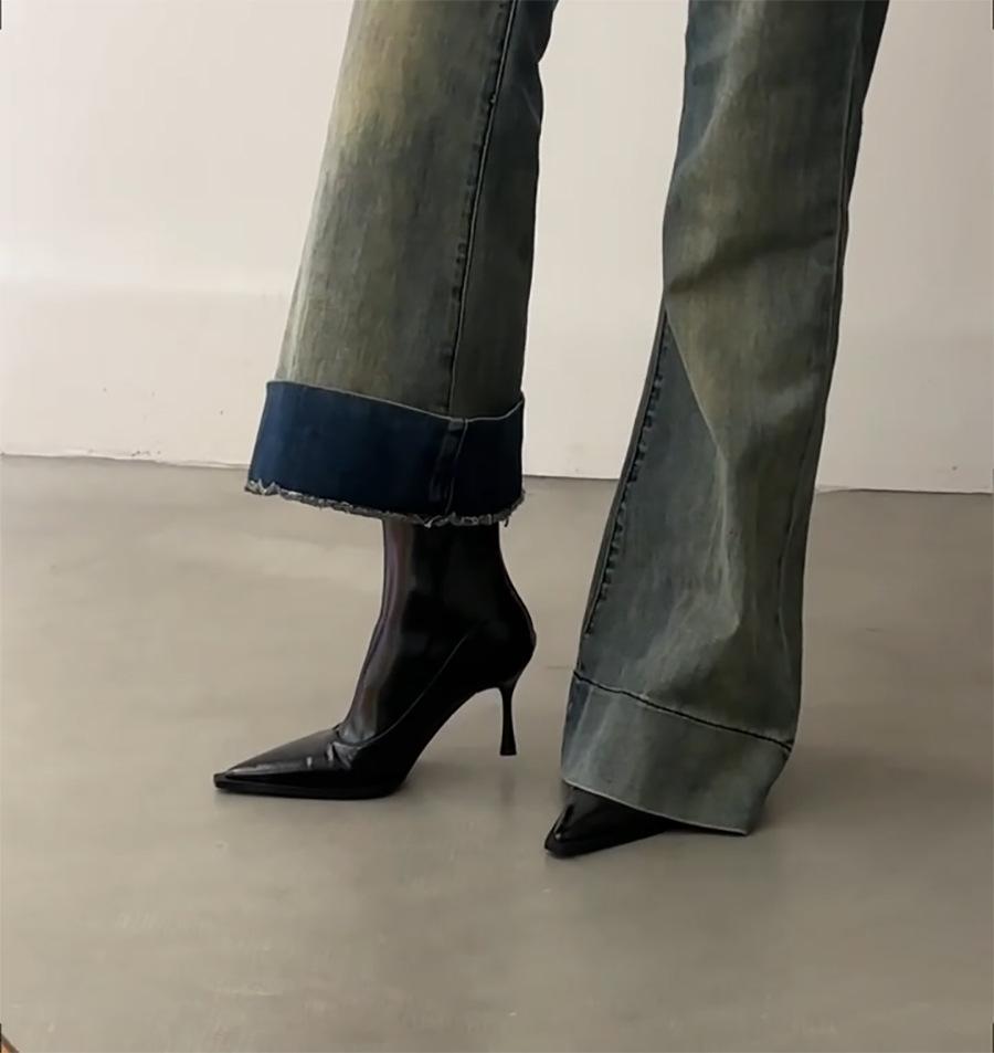 Botines Negros de Punta para Mujer Temperamento Adelgazantes Moda Botas de Tacón Alto Cremallera Trasera Versátiles Tacón de Aguja Botas Ajustadas
