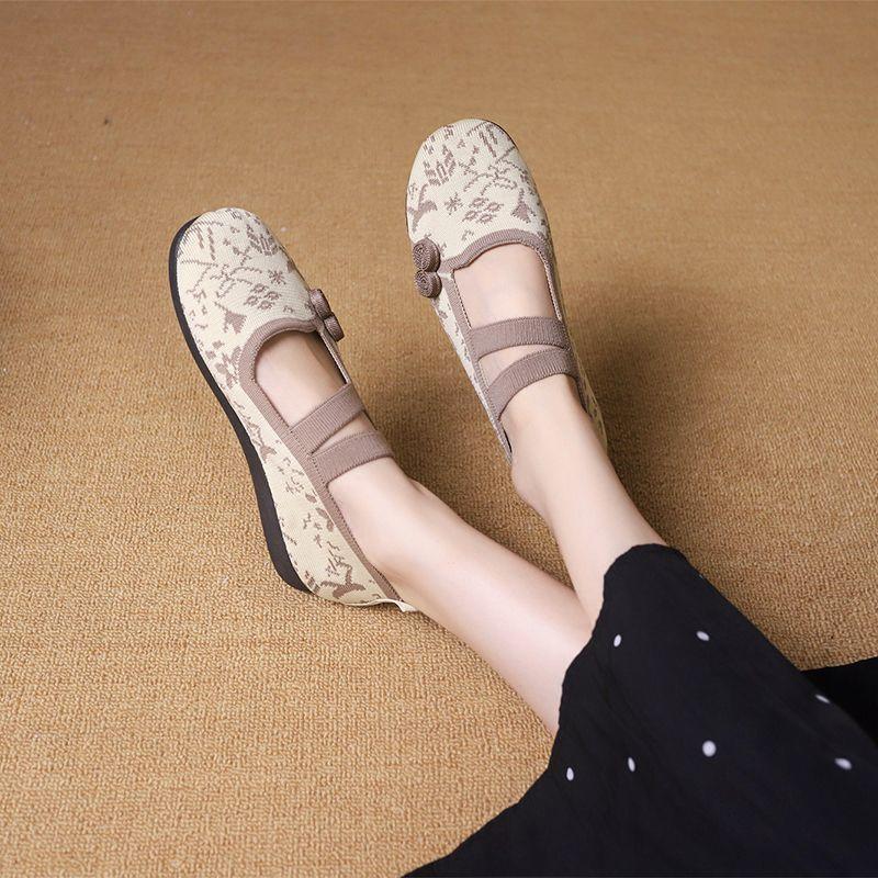 Zapatos de Tela de Pekín Antiguos Mujer Transpirables Antideslizantes Suela Suave Casual Estilo Étnico Zapatos Planos Slip-on Zapatos Individuales Otoño 2025 Nuevo