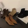 Botas de Mujer de Verano 2025 Nuevas Retro Punta Afilada Tacón Alto Media Pantorrilla Botas de Moda PU Negras Adelgazantes Botines de Cuero para Mujer