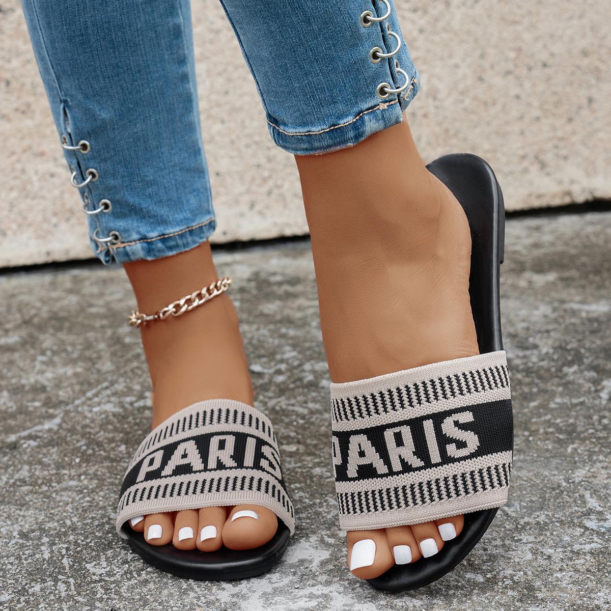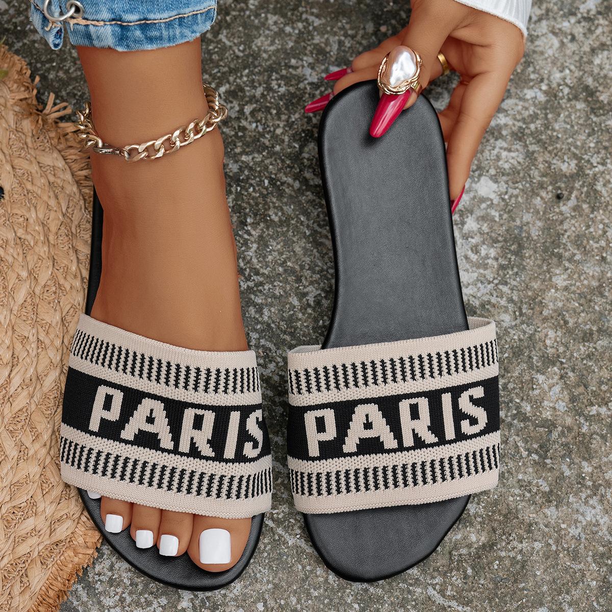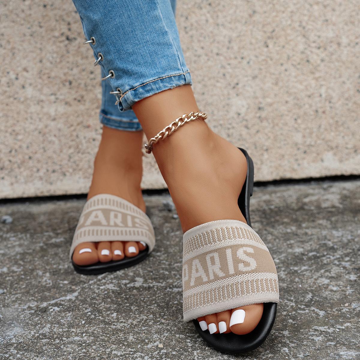 Moda para Mujer Punta Redonda. Sandalias planas cómodas sin cordones para la playa, pantuflas planas para el uso diario