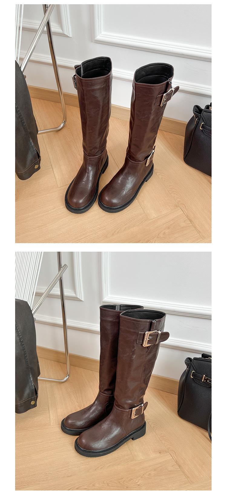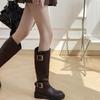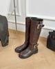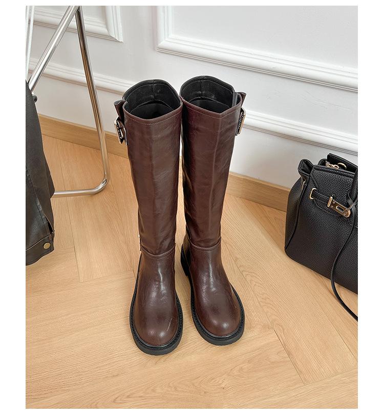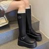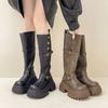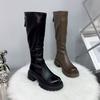 2025 nuevas botas de caballero de suela gruesa botas de mujer otoño e invierno botas retro hasta la rodilla que aumentan la altura tacón grueso adelgazantes botas largas por encima de la rodilla