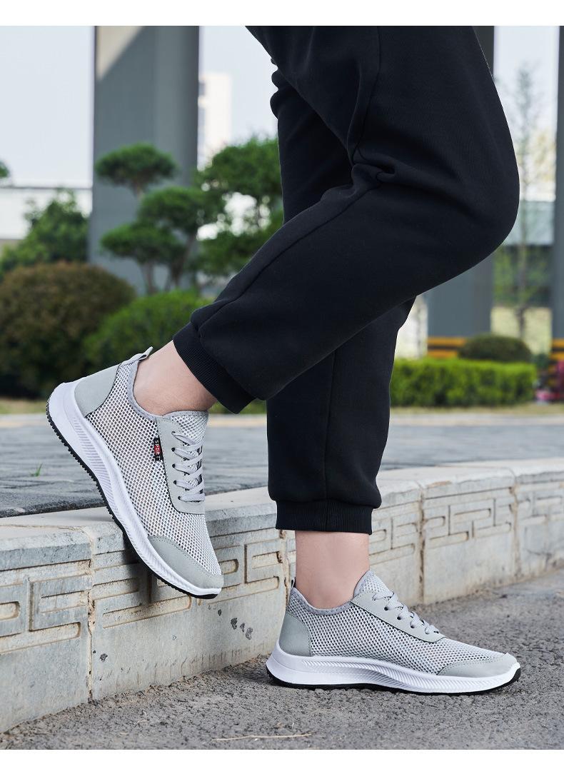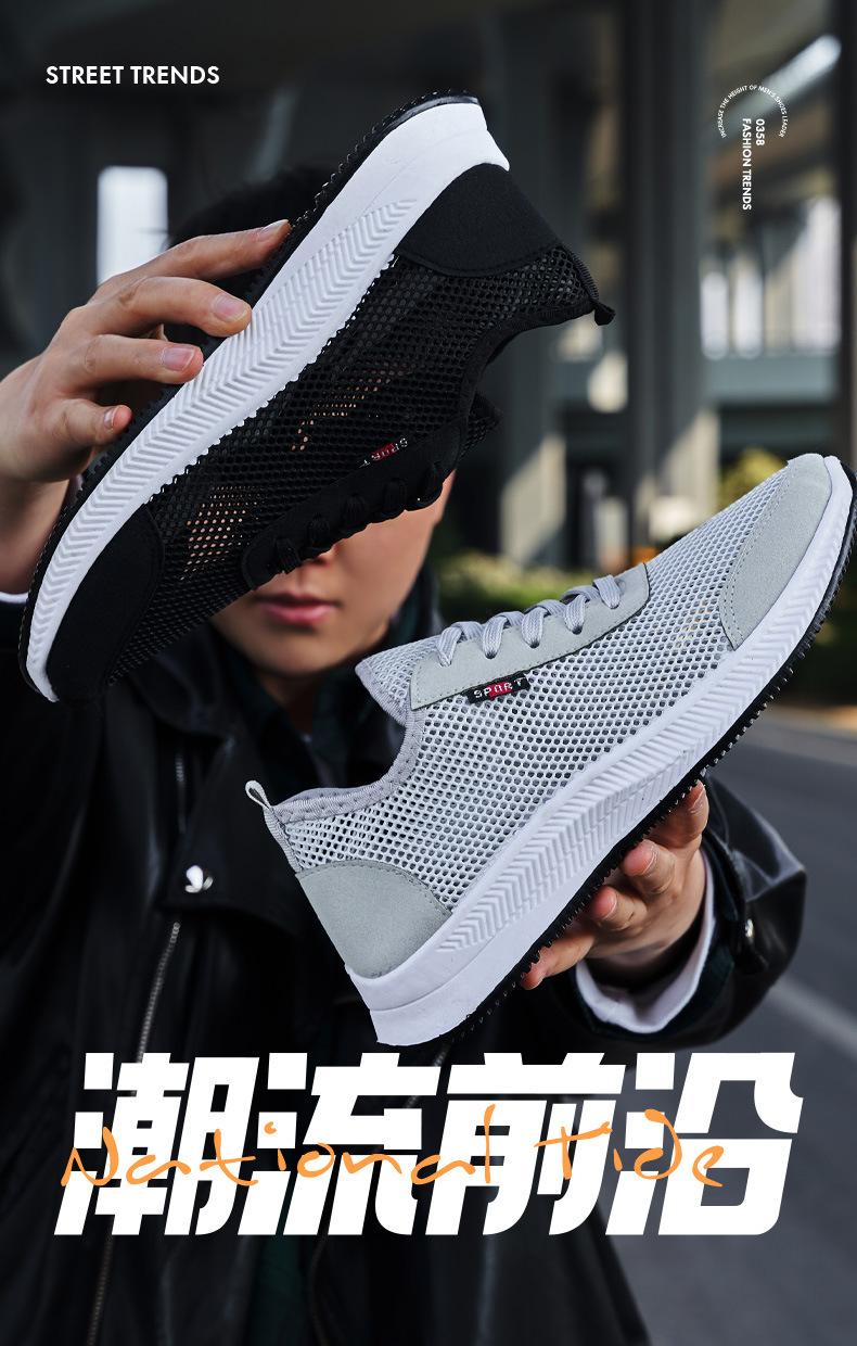 Zapatillas de verano huecas de malla transpirables para hombre, zapatos casuales de malla, zapatos casuales de suela suave, zapatos para correr cómodos y combinables.