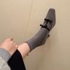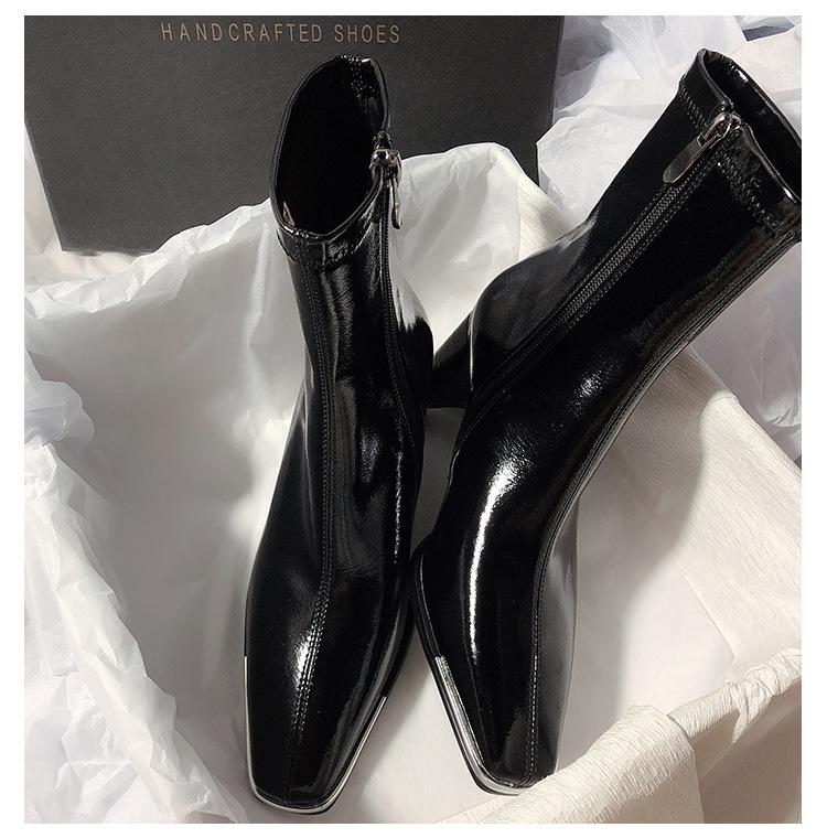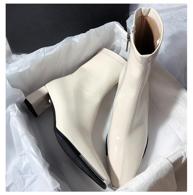 Elegantes Botas de Moda de Tacón Alto con Elástico Plateado, Punta Cuadrada, Tacón Grueso, Cierre Lateral, Color Sólido y Costuras para Mujer