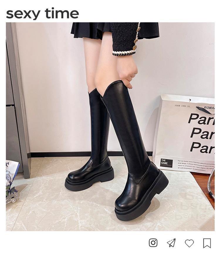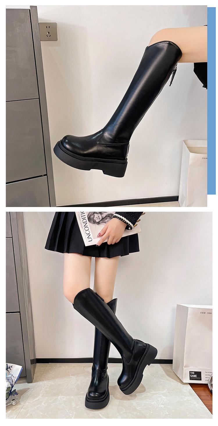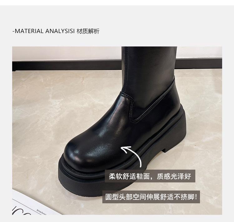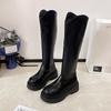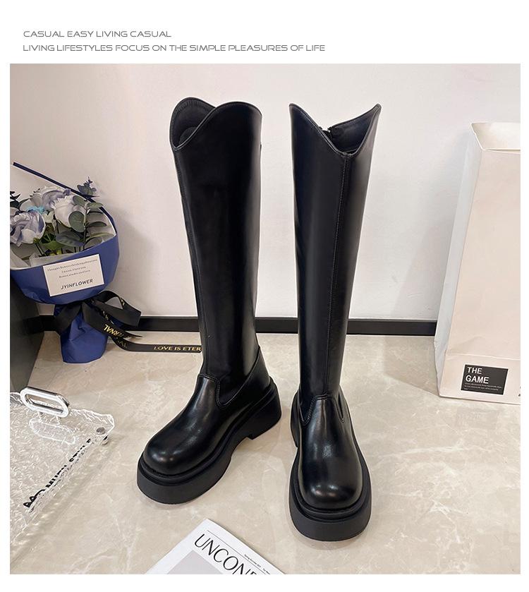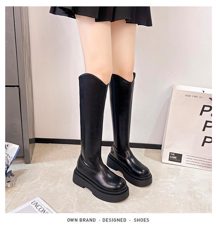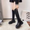 2025 Nuevas Botas Altas hasta la Rodilla de Punta Redonda con Corte en V y Suela Gruesa, Botas Largas Versátiles con Aumento de Altura de Suela Gruesa, Botas de Caballero de Caña Alta, Botas Adelgazantes