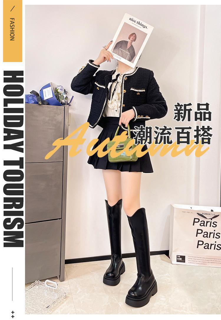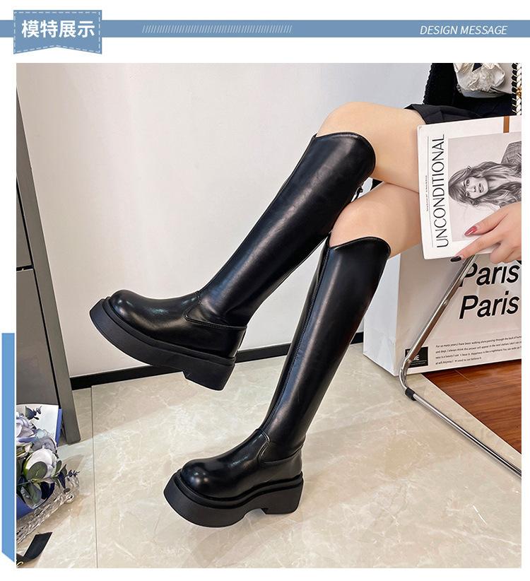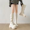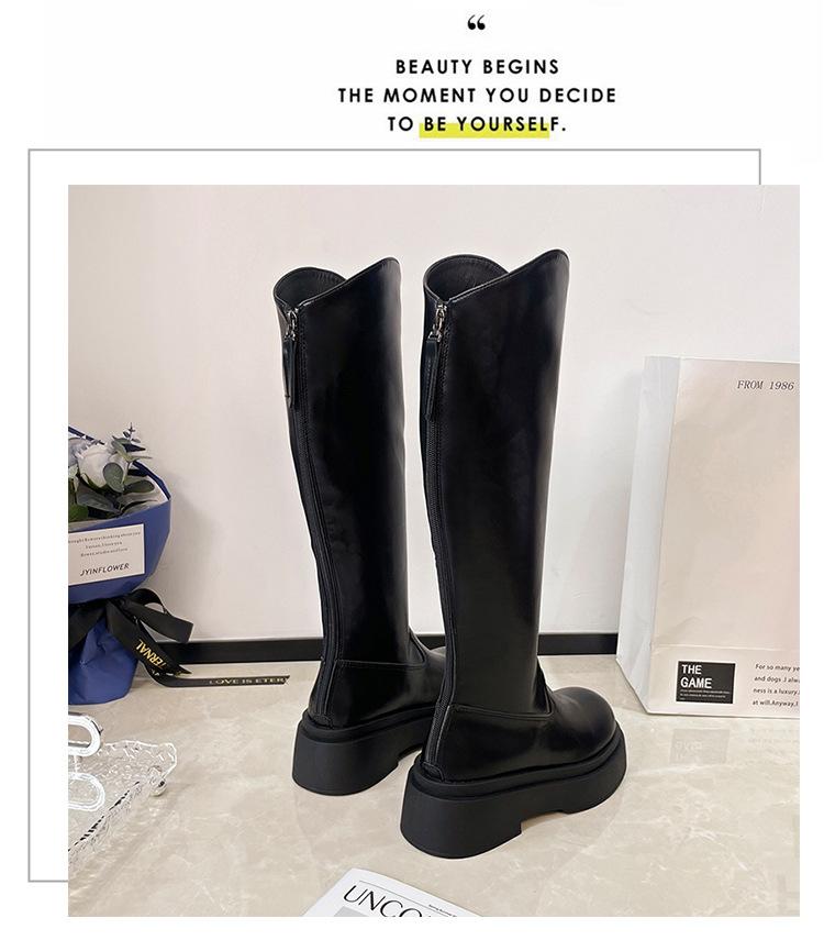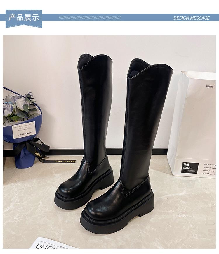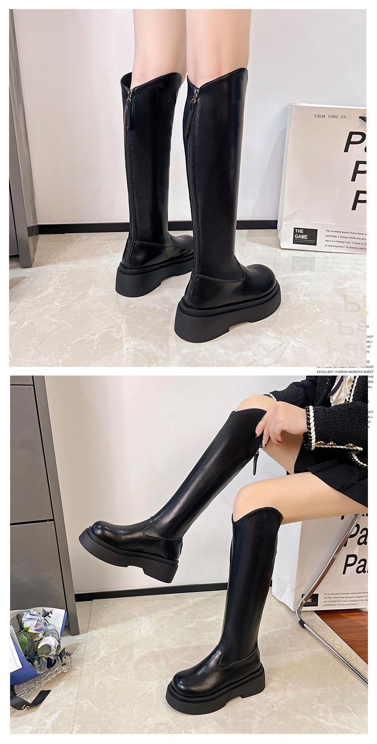 2025 Nuevas Botas Altas hasta la Rodilla de Punta Redonda con Corte en V y Suela Gruesa, Botas Largas Versátiles con Aumento de Altura de Suela Gruesa, Botas de Caballero de Caña Alta, Botas Adelgazantes
