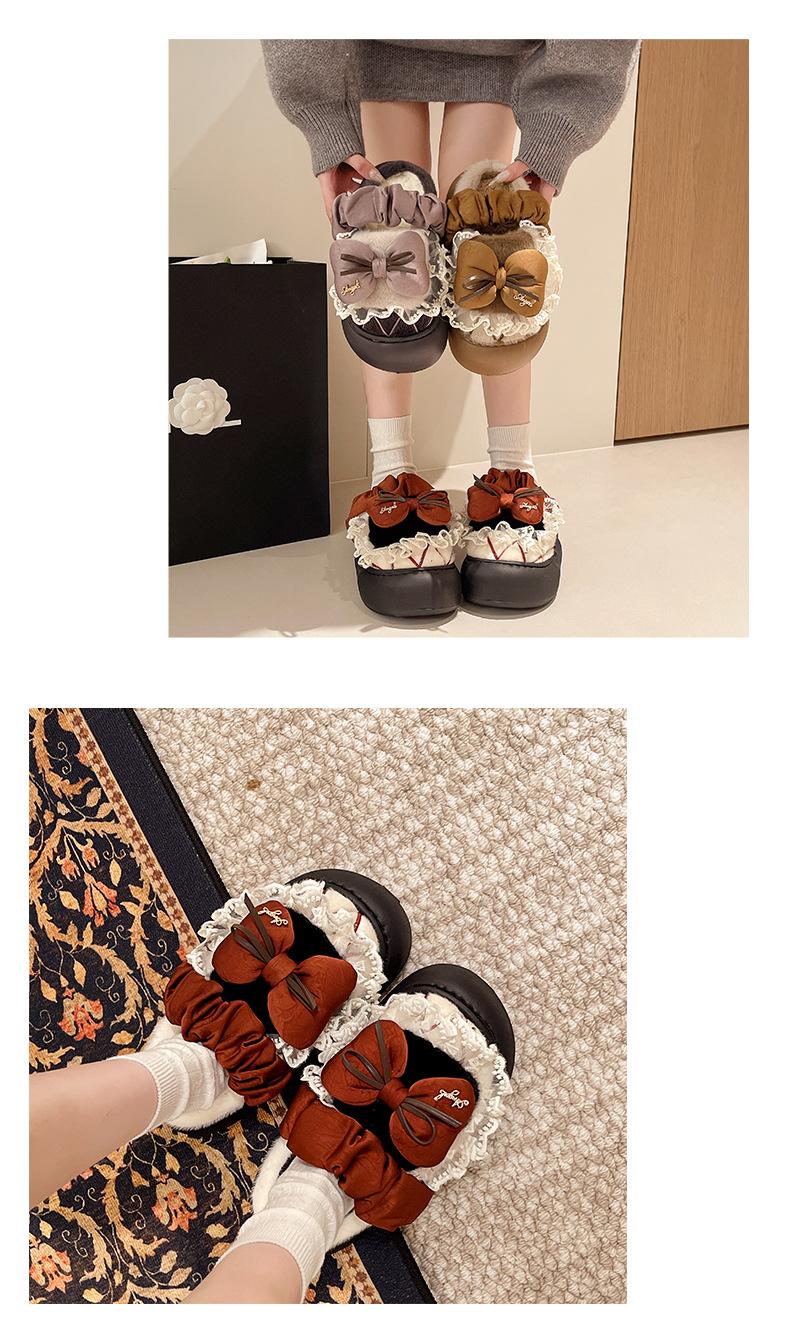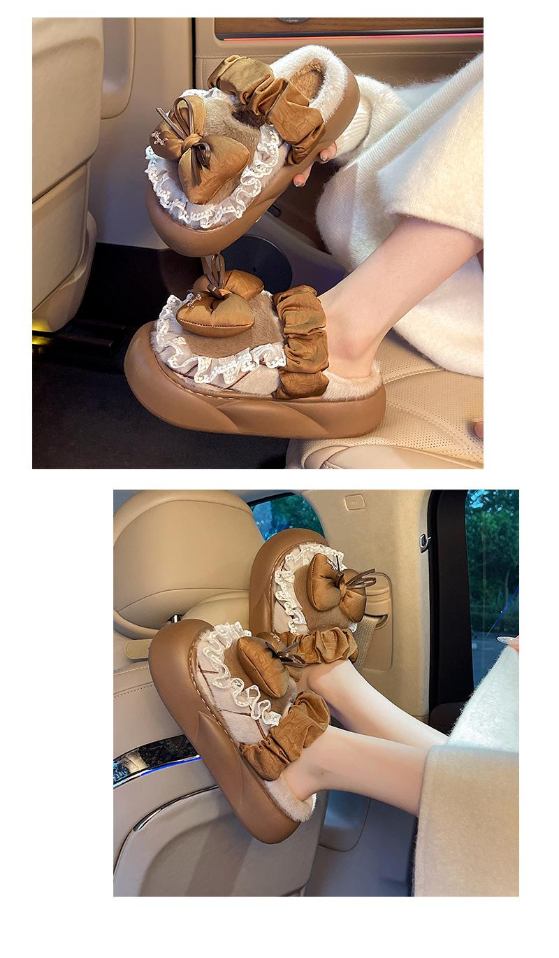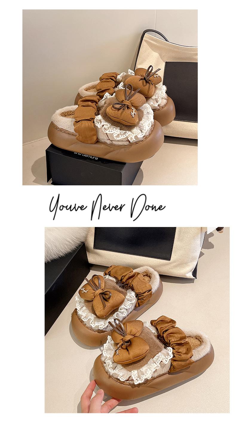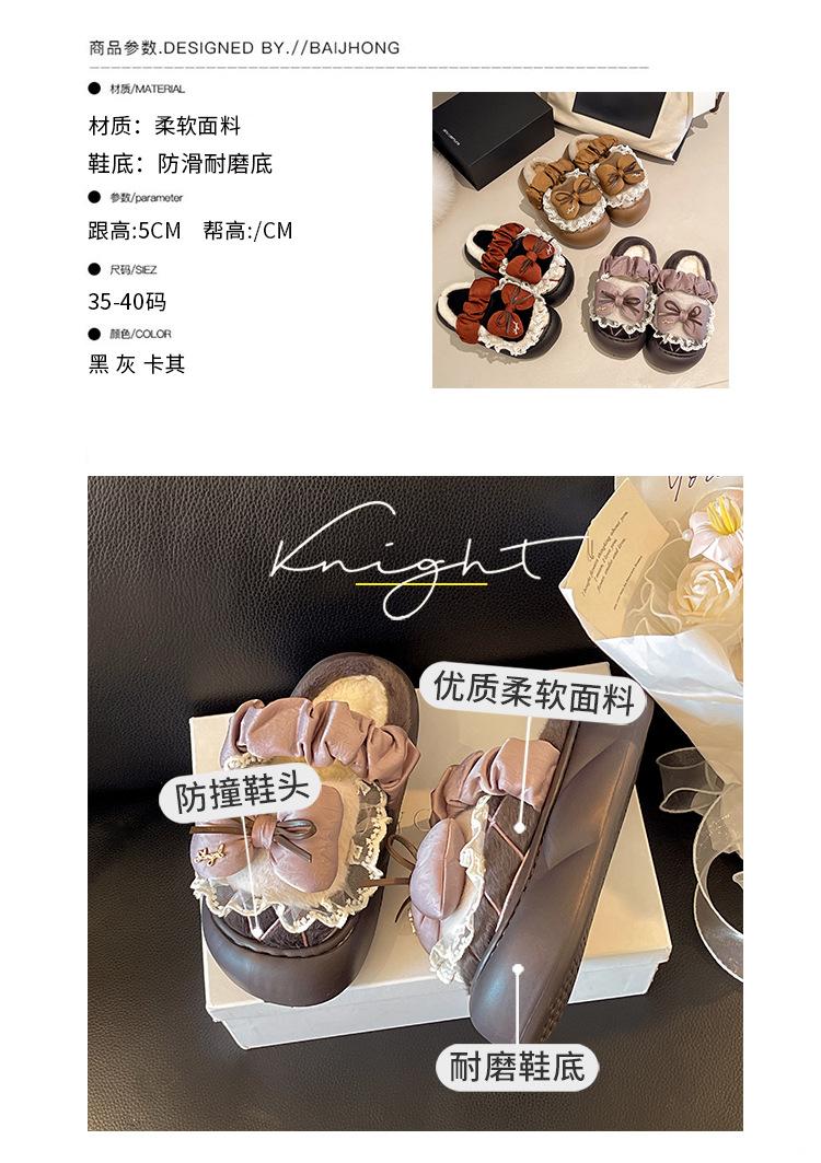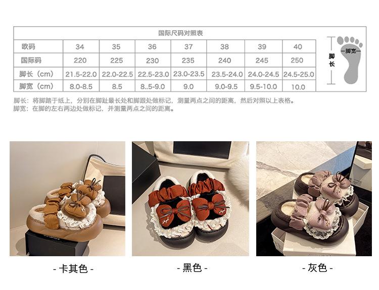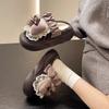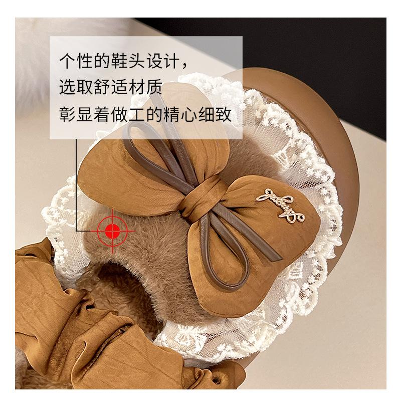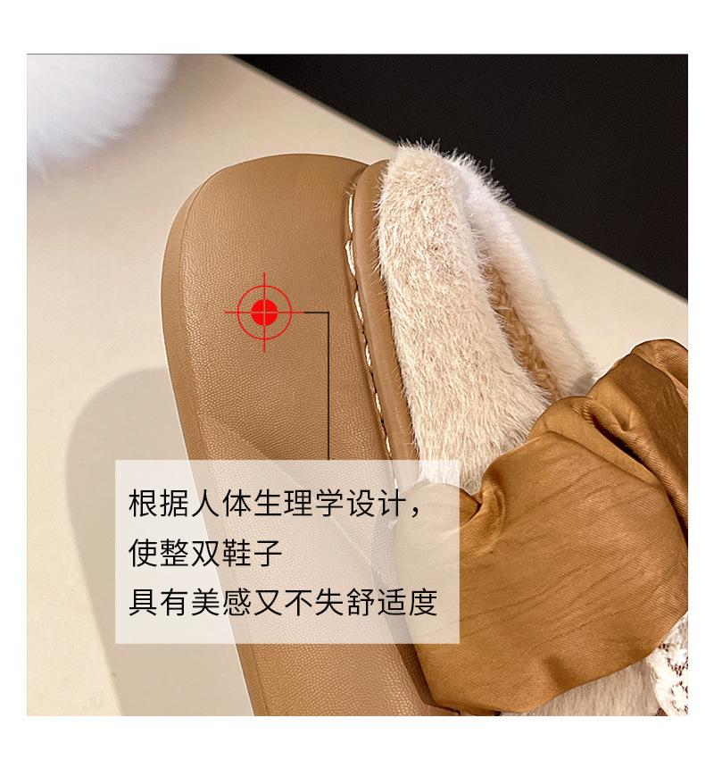 Zapatillas Coreanas Dulces con Lazo para Moño para Mujer Otoño Se Puede Usar Afuera Suela Gruesa Zapatillas de Algodón Cálidas Sensación de Pisar Mierda Zapatillas Peludas