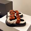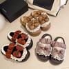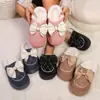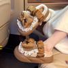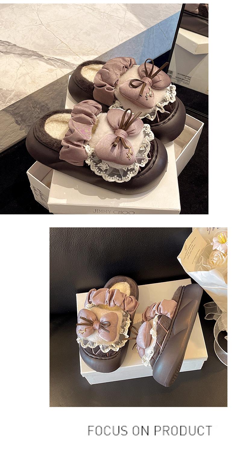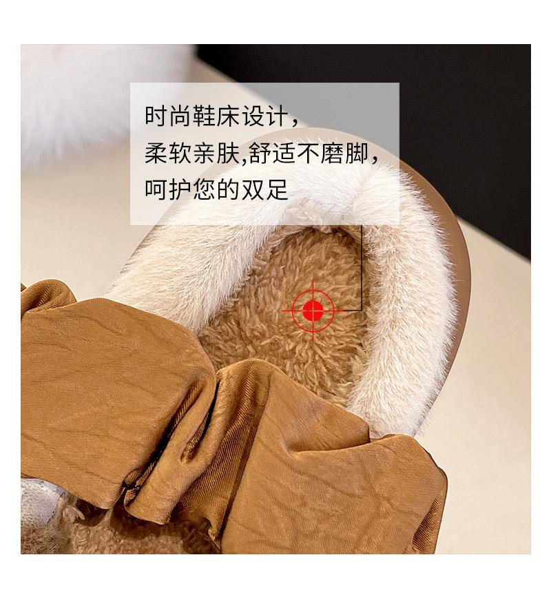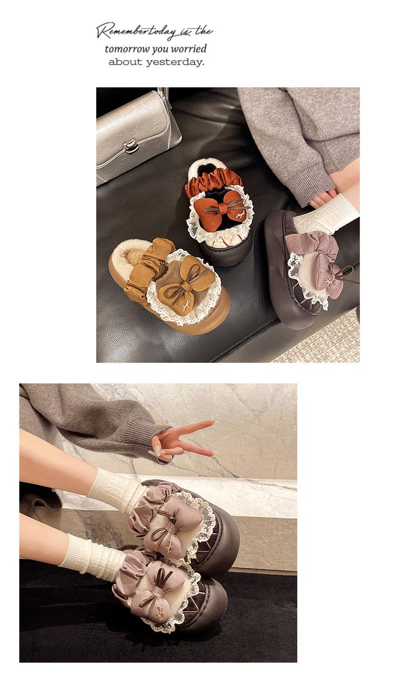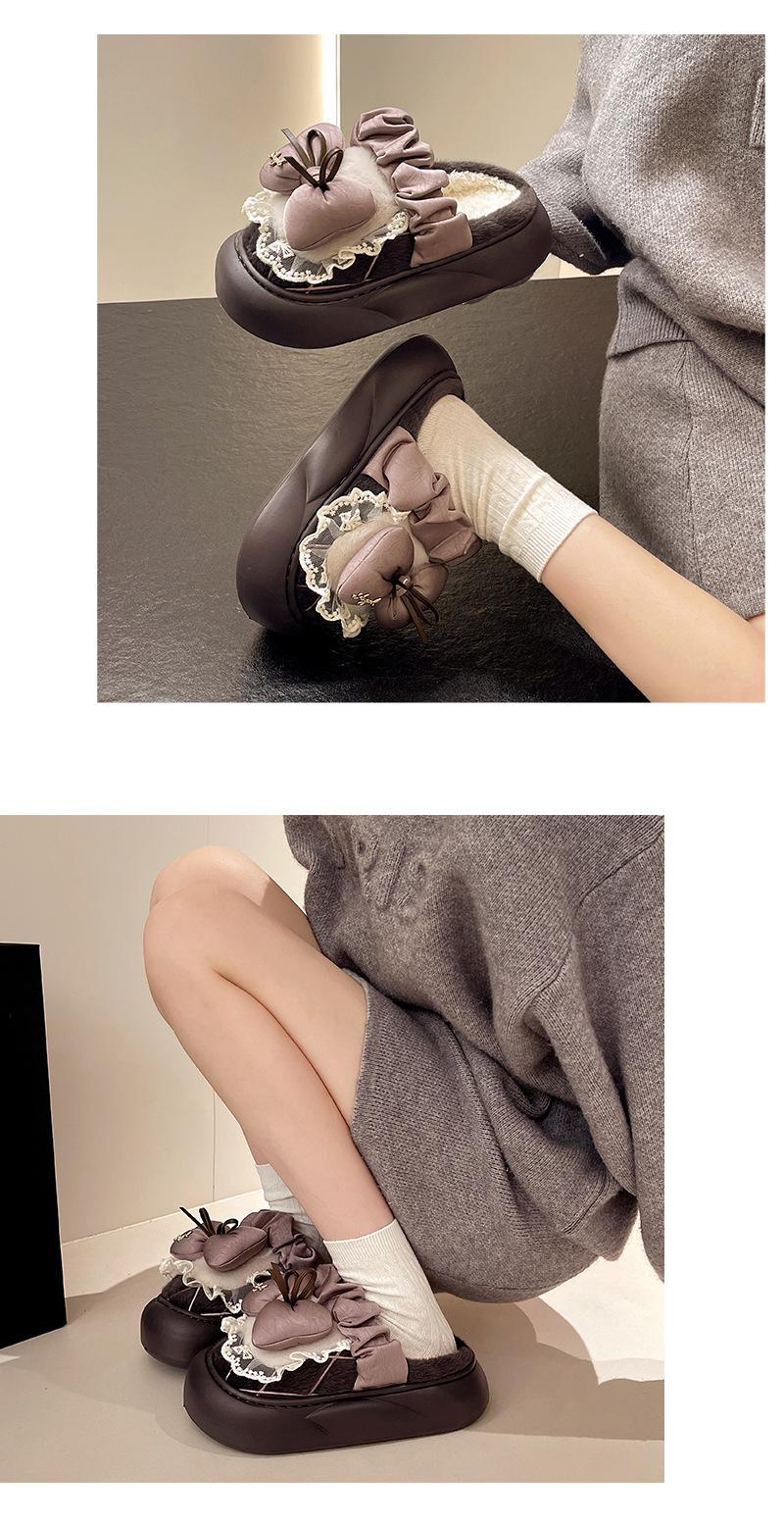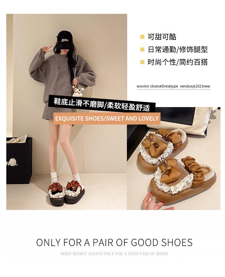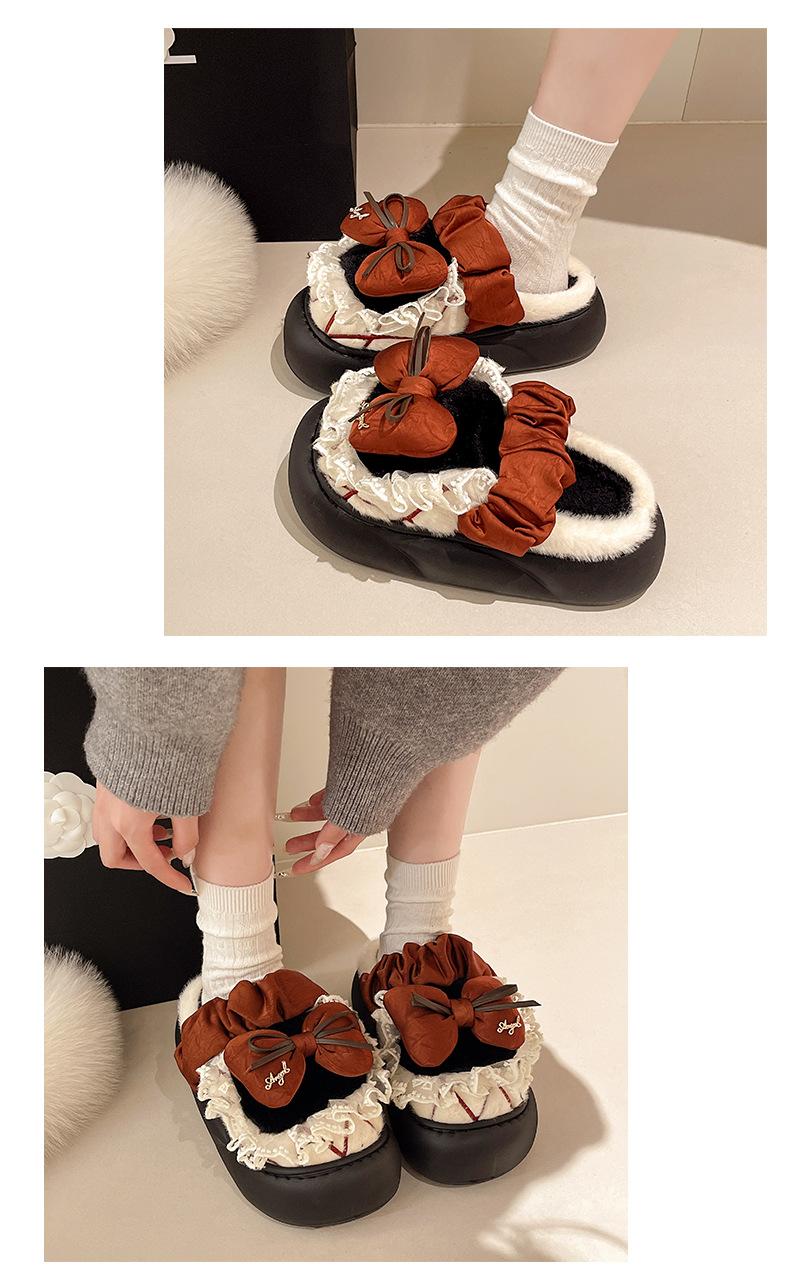 Zapatillas Coreanas Dulces con Lazo para Moño para Mujer Otoño Se Puede Usar Afuera Suela Gruesa Zapatillas de Algodón Cálidas Sensación de Pisar Mierda Zapatillas Peludas