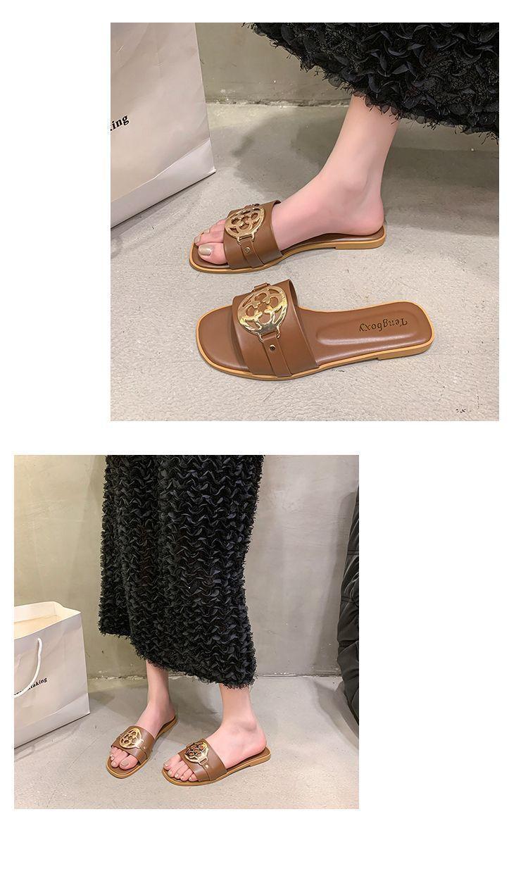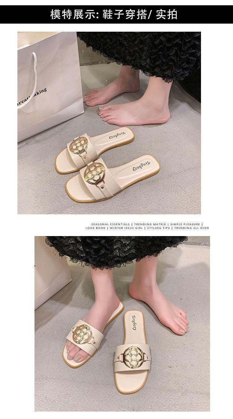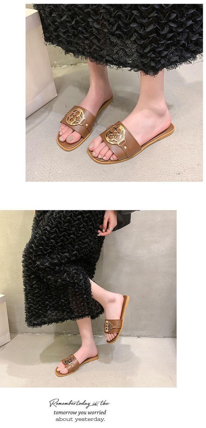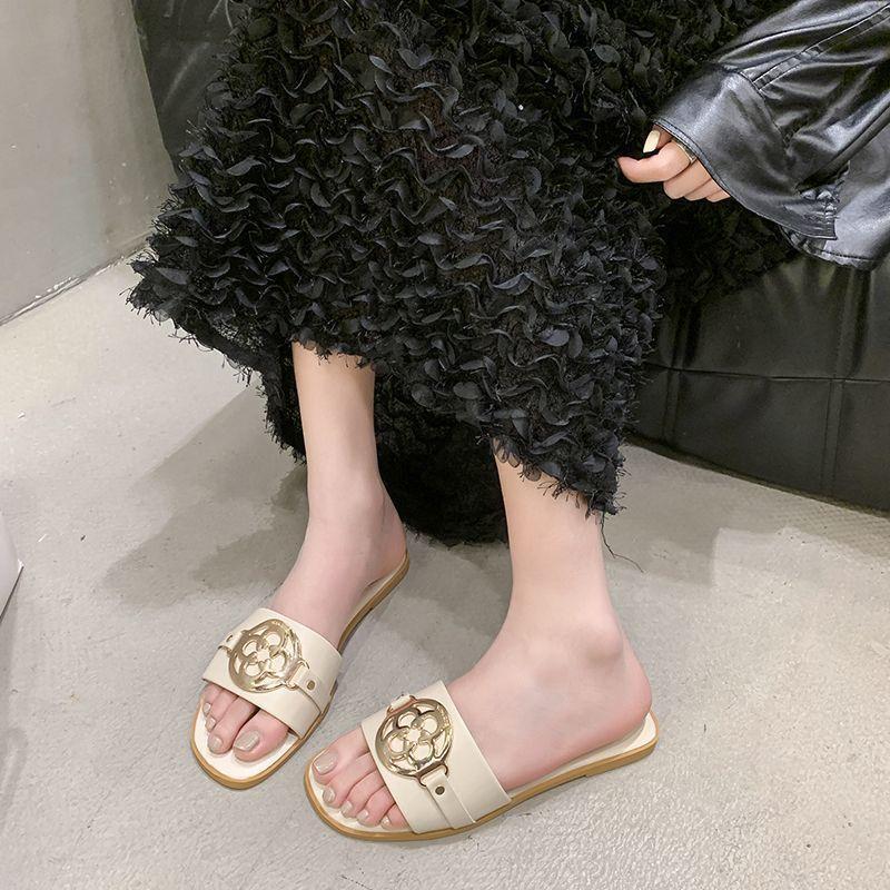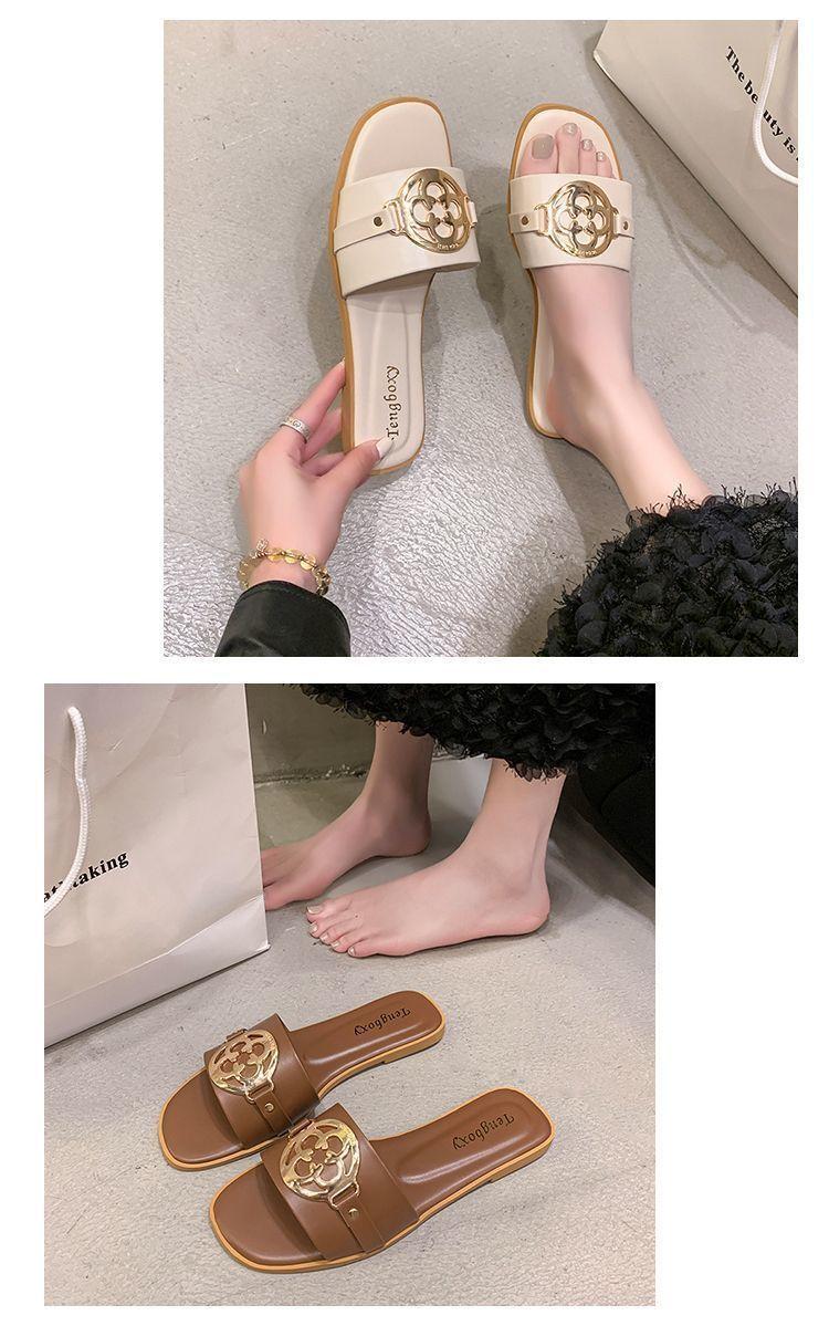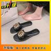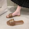 Pantuflas Antideslizantes de Suela Plana 2025 para Mujer Nueva Moda de Verano Versátiles de Una Tira para Playa y Uso Exterior