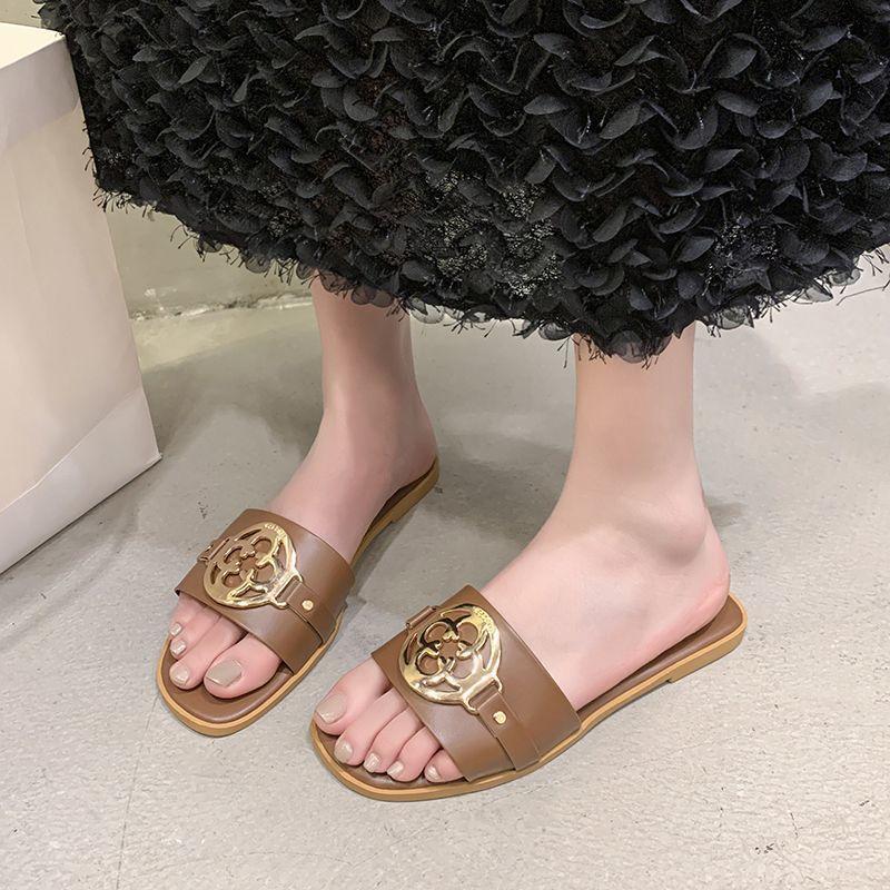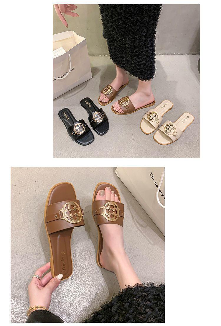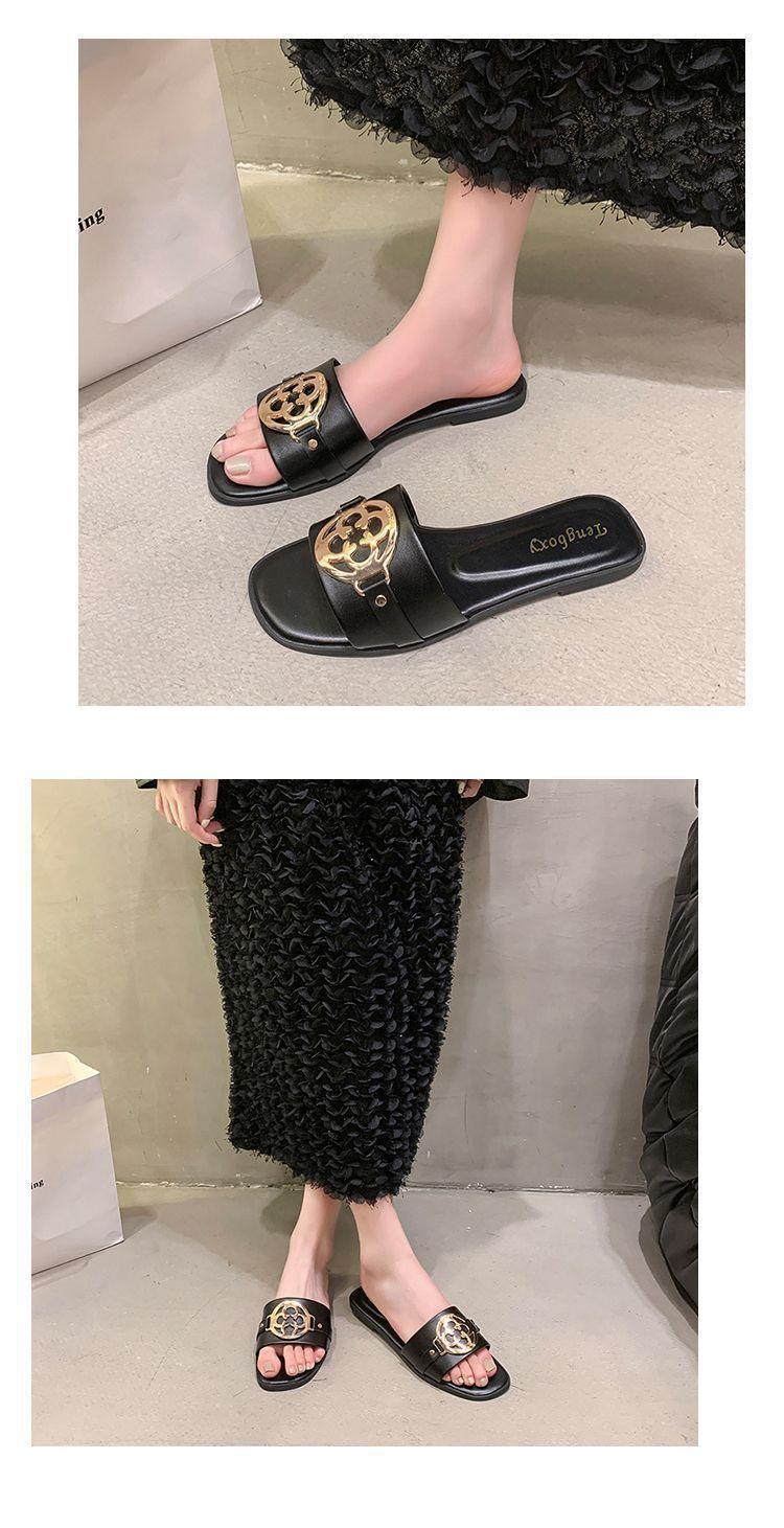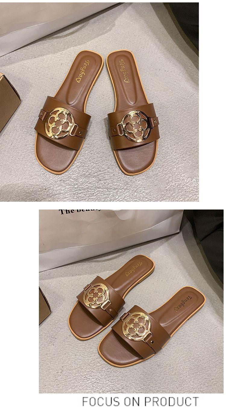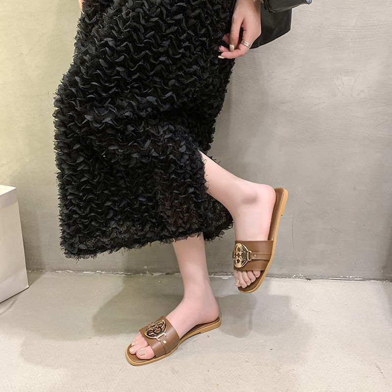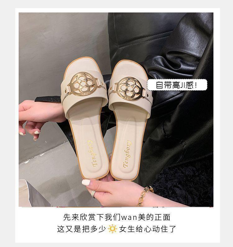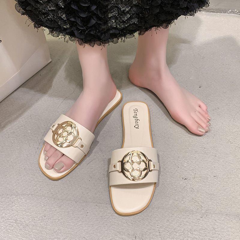 Pantuflas Antideslizantes de Suela Plana 2025 para Mujer Nueva Moda de Verano Versátiles de Una Tira para Playa y Uso Exterior