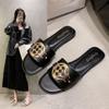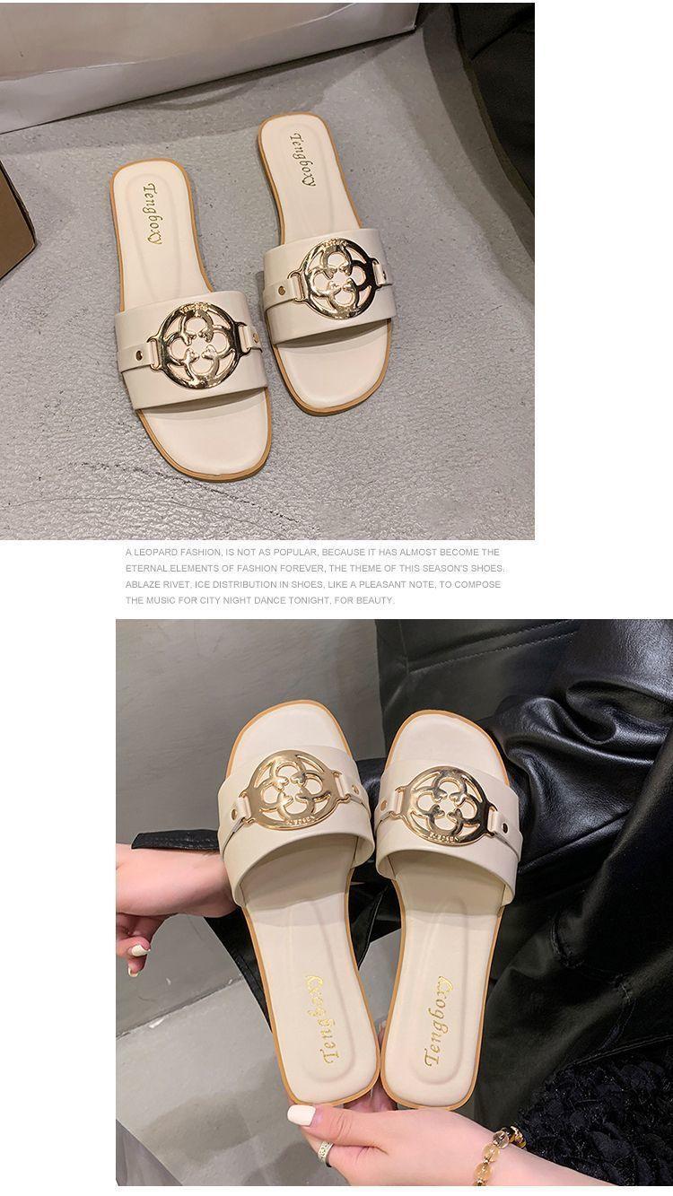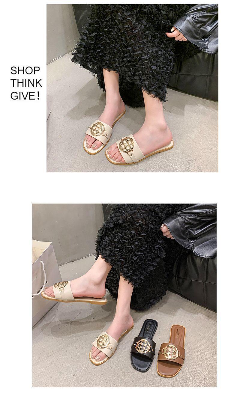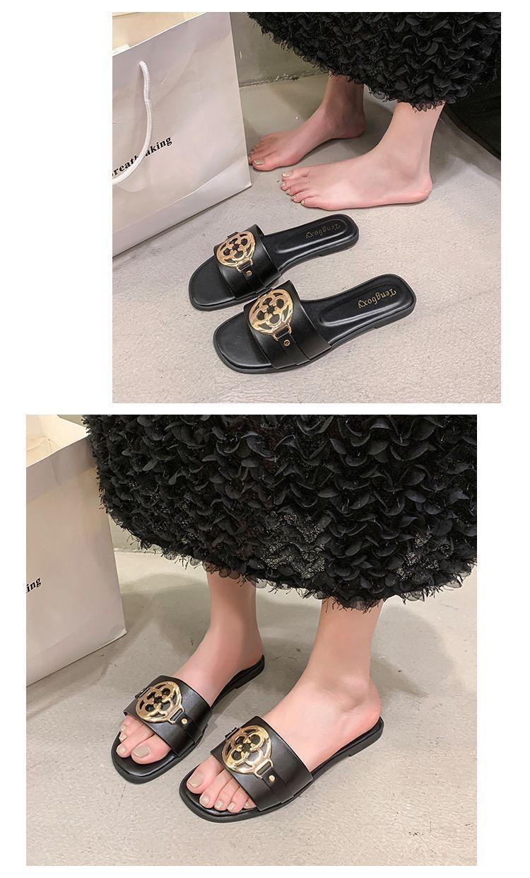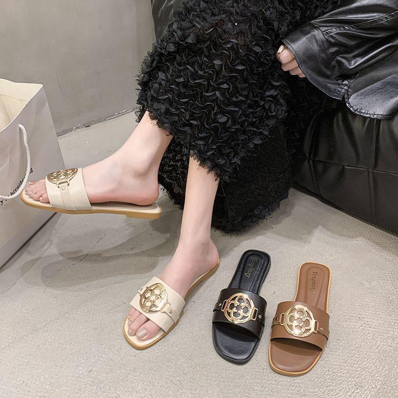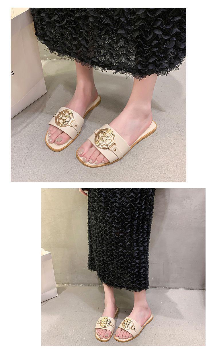 Pantuflas Antideslizantes de Suela Plana 2025 para Mujer Nueva Moda de Verano Versátiles de Una Tira para Playa y Uso Exterior