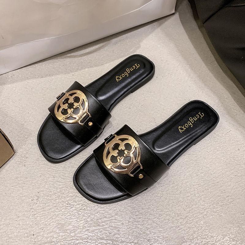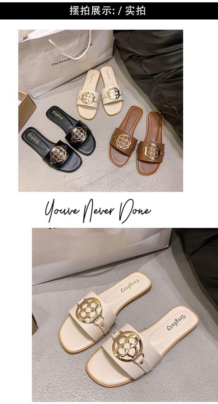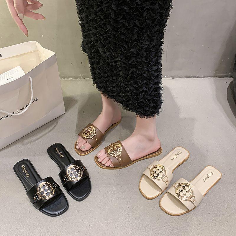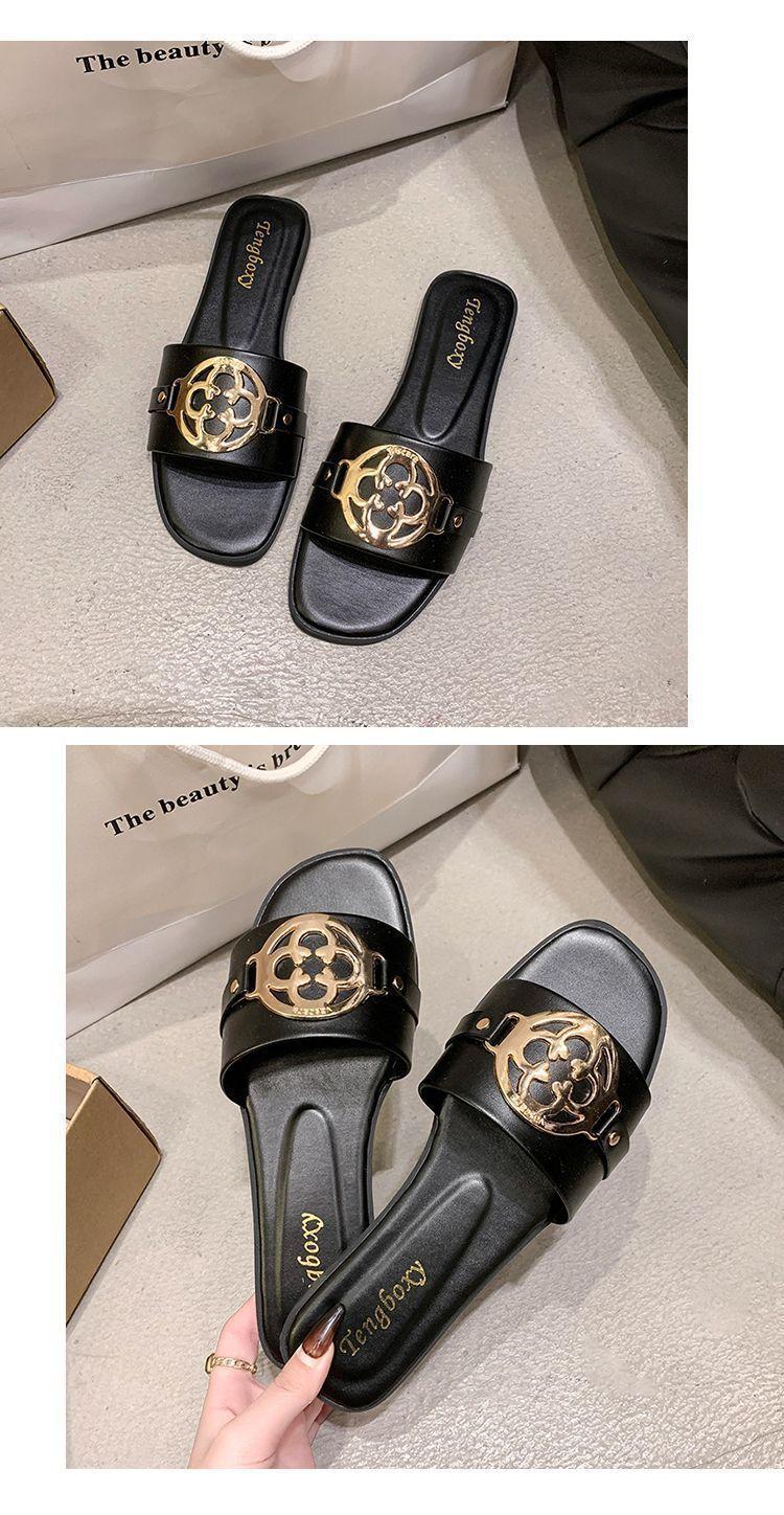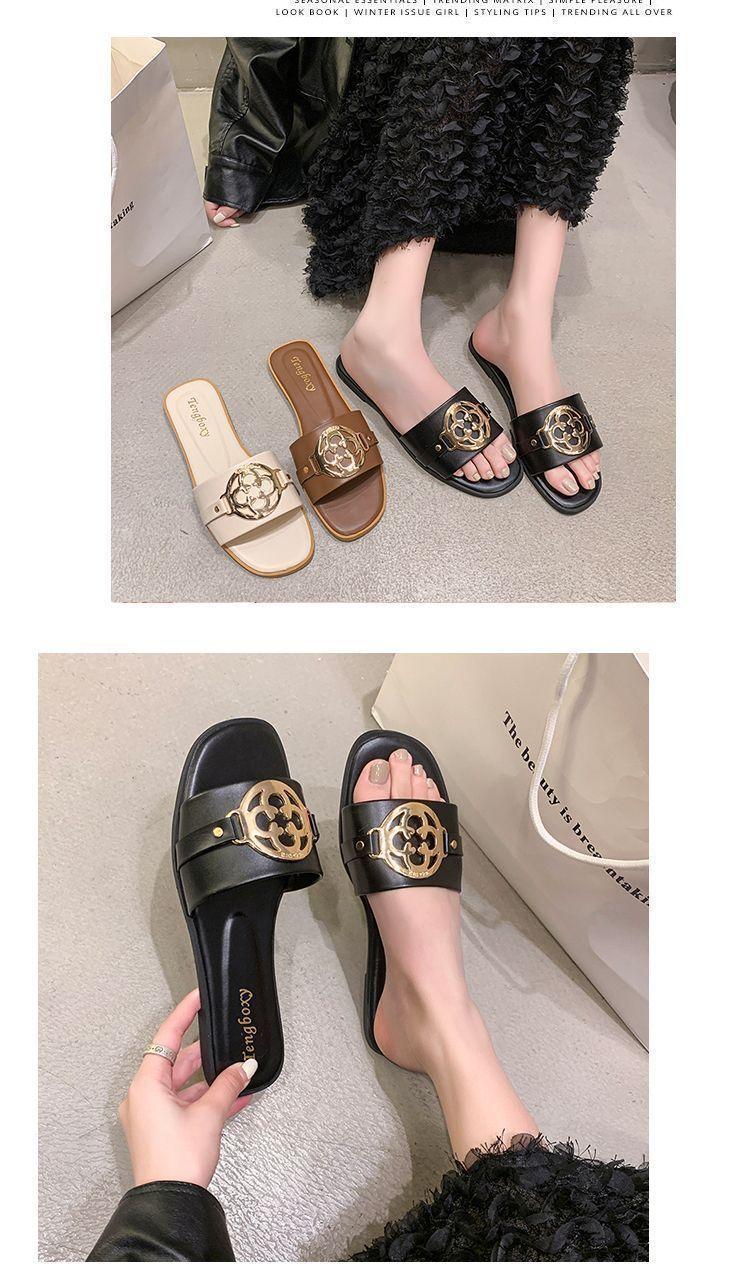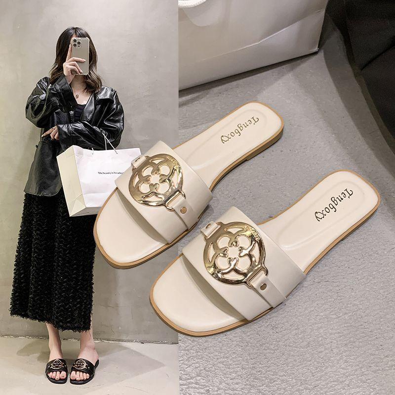 Pantuflas Antideslizantes de Suela Plana 2025 para Mujer Nueva Moda de Verano Versátiles de Una Tira para Playa y Uso Exterior