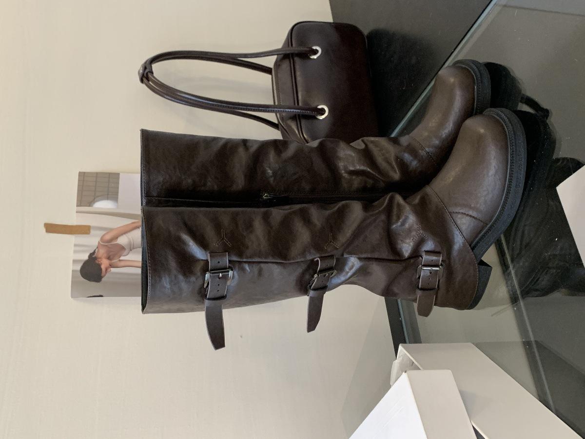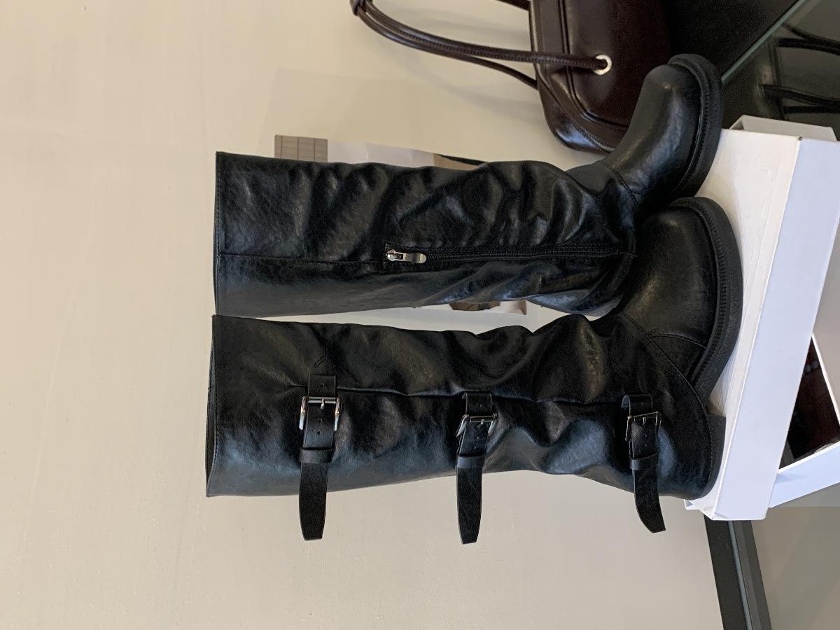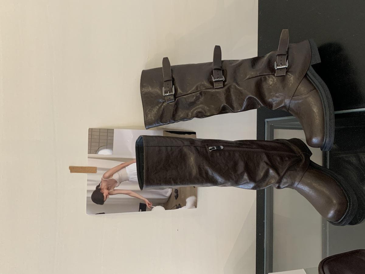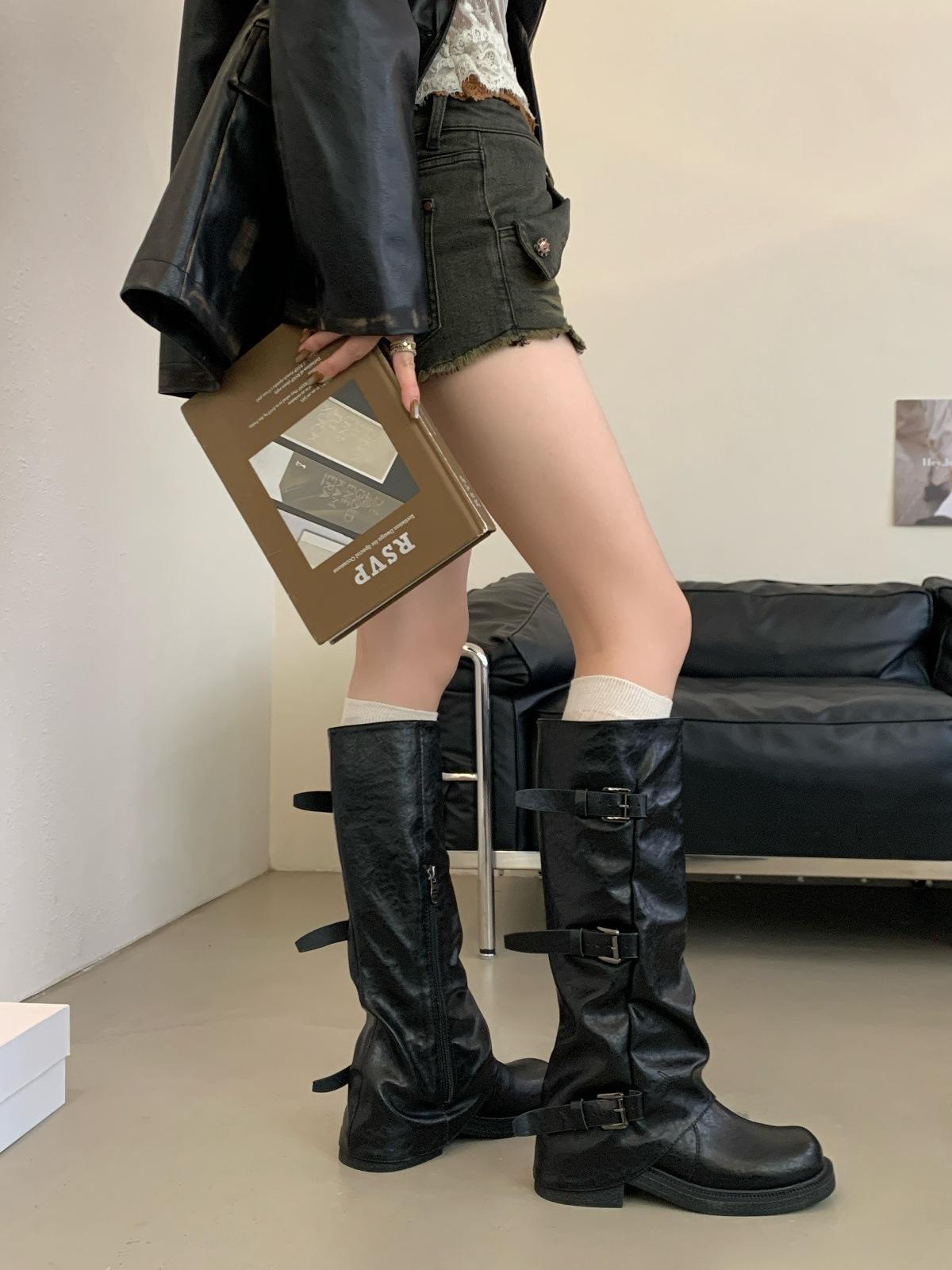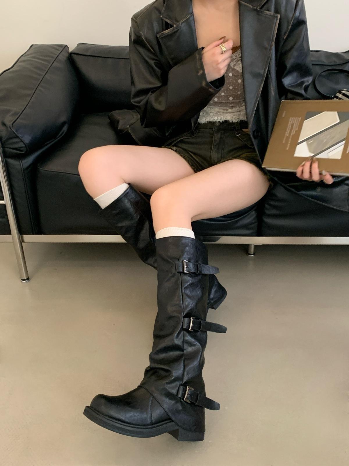 Botas altas hasta la rodilla fruncidas con hebilla de tacón grueso francés y tacón grueso 2025 Nuevas Botas de pierna apilada de chica dulce, genial y picante Botas de caballero