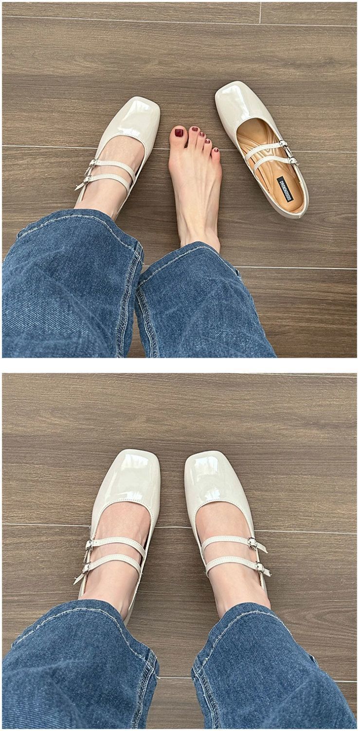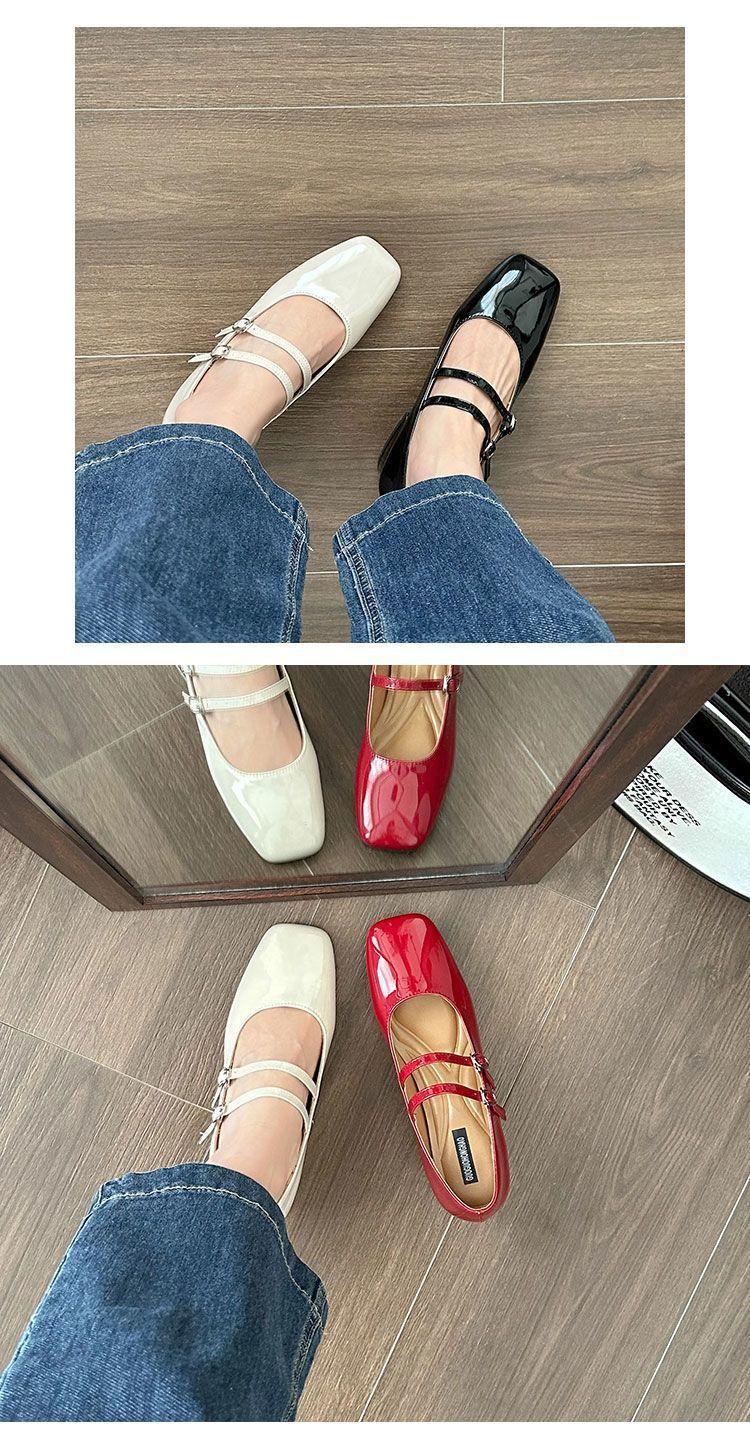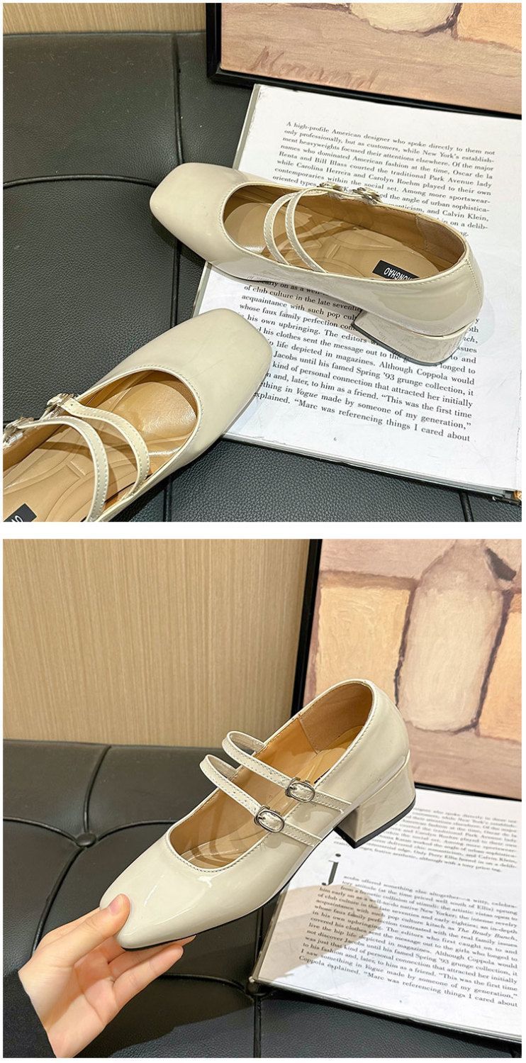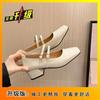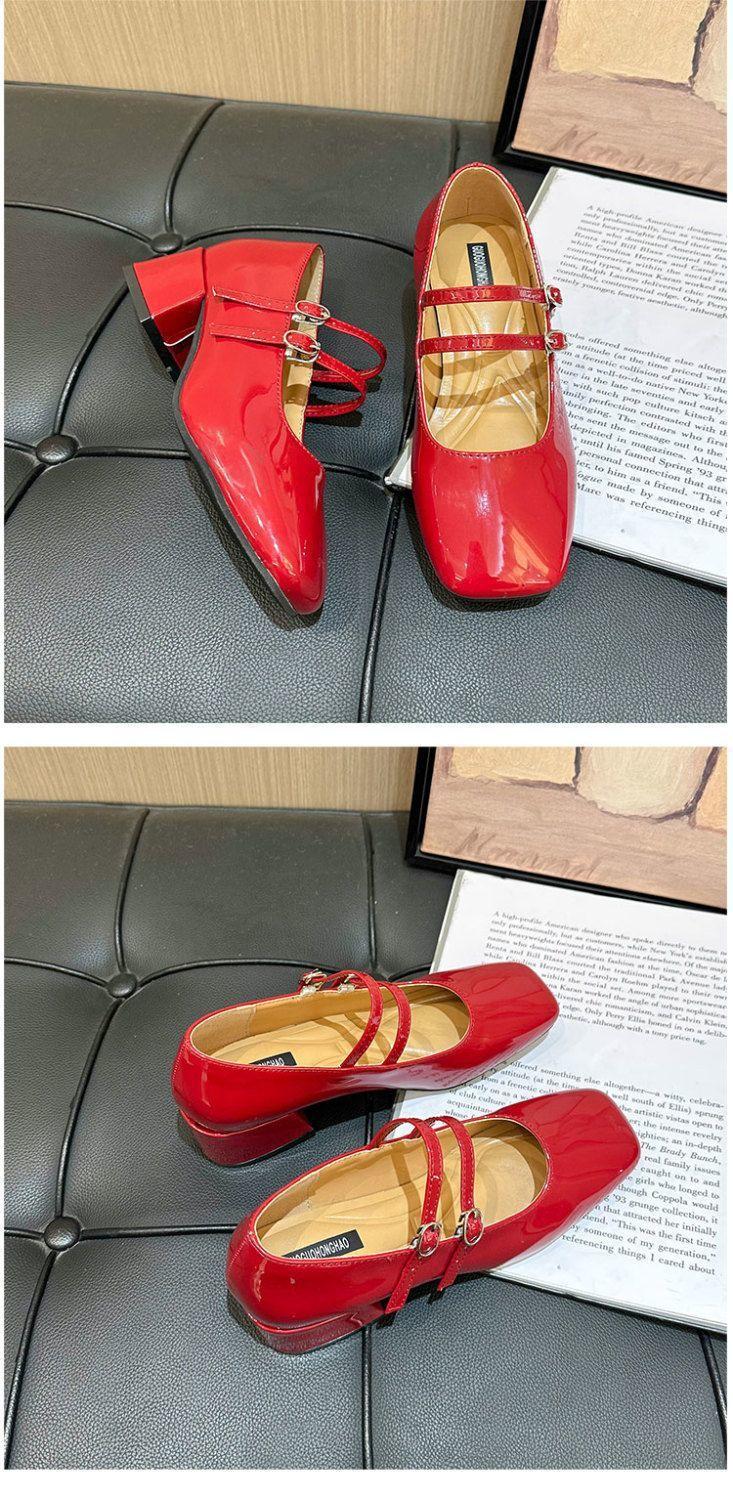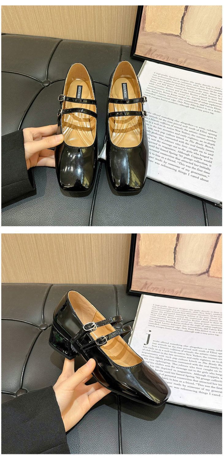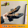 Zapatos Mary Jane de charol con una tira para mujer colección nueva primavera/verano 2025 tacón medio cuadrado moda punta cuadrada escote bajo zapatos individuales