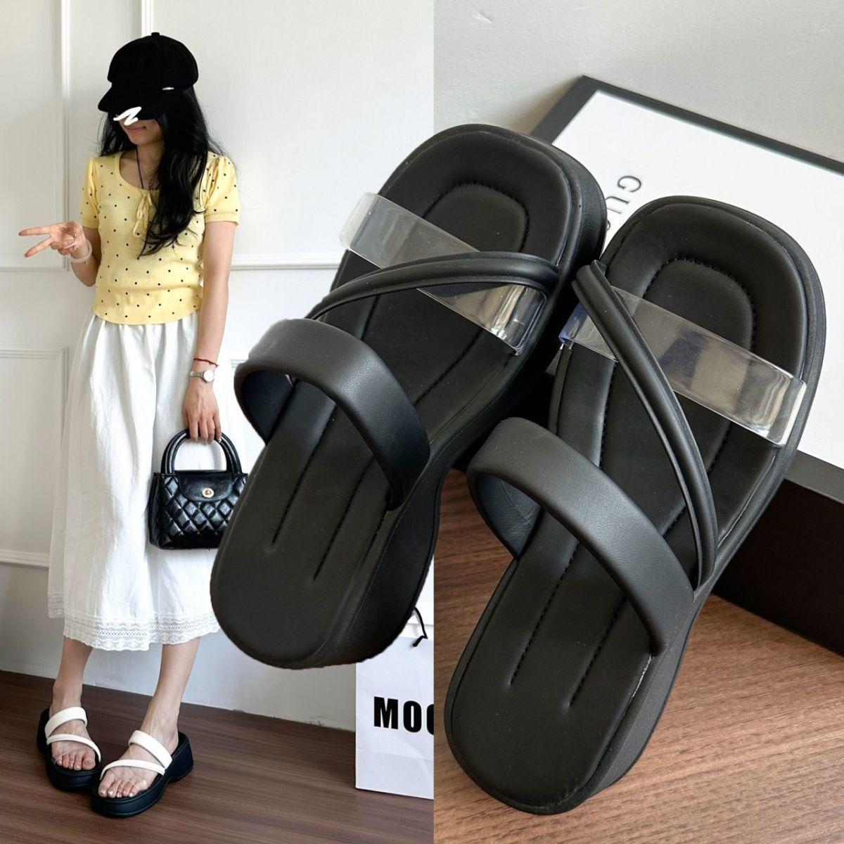 2025 Verano Nuevo Suela Suave Antideslizante Zapatillas de Una Tira para Mujer Estilo Hada para Exteriores Zapatos de Playa Sandalias Versátiles Resistentes al Desgaste