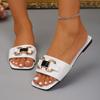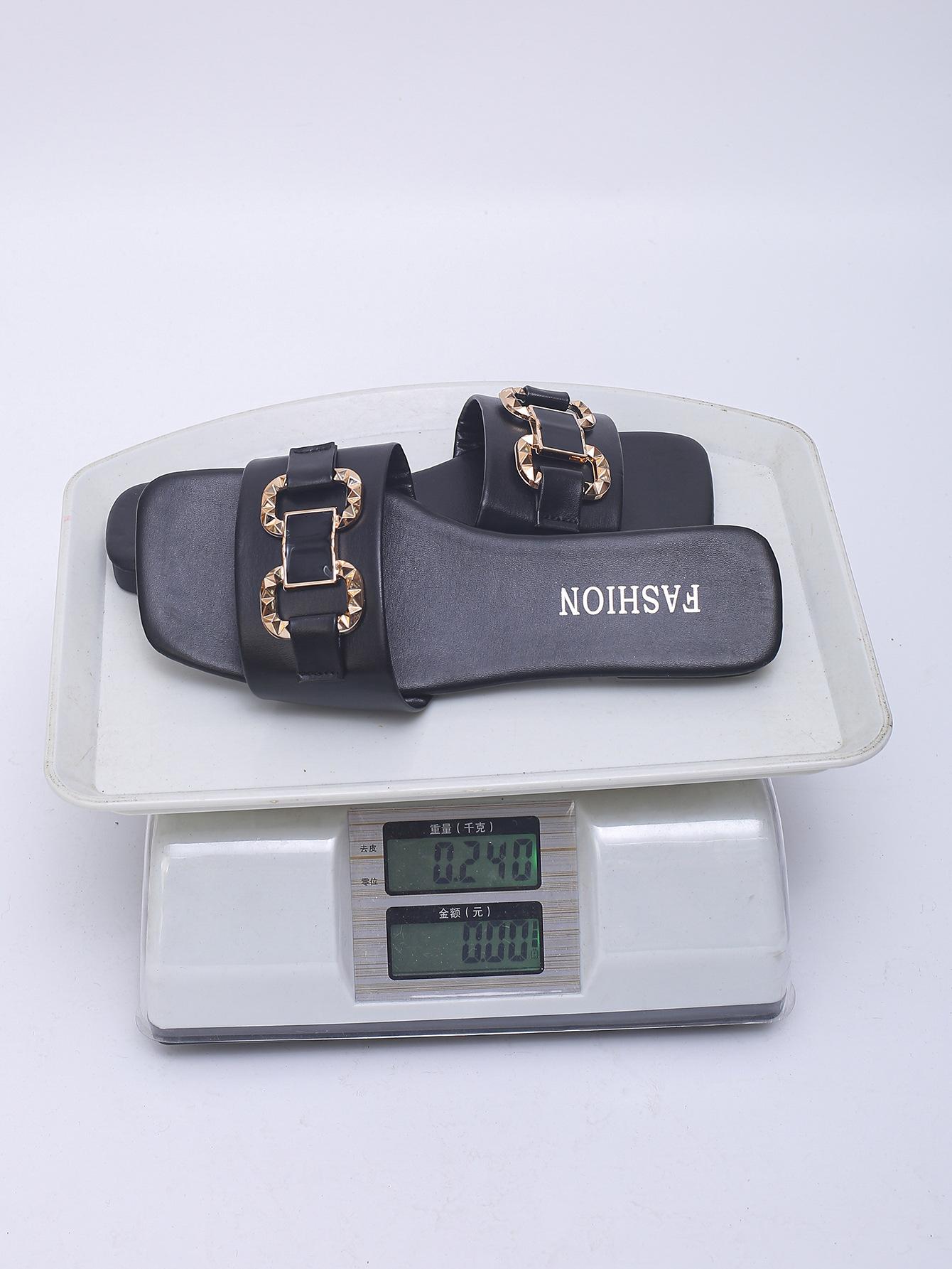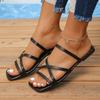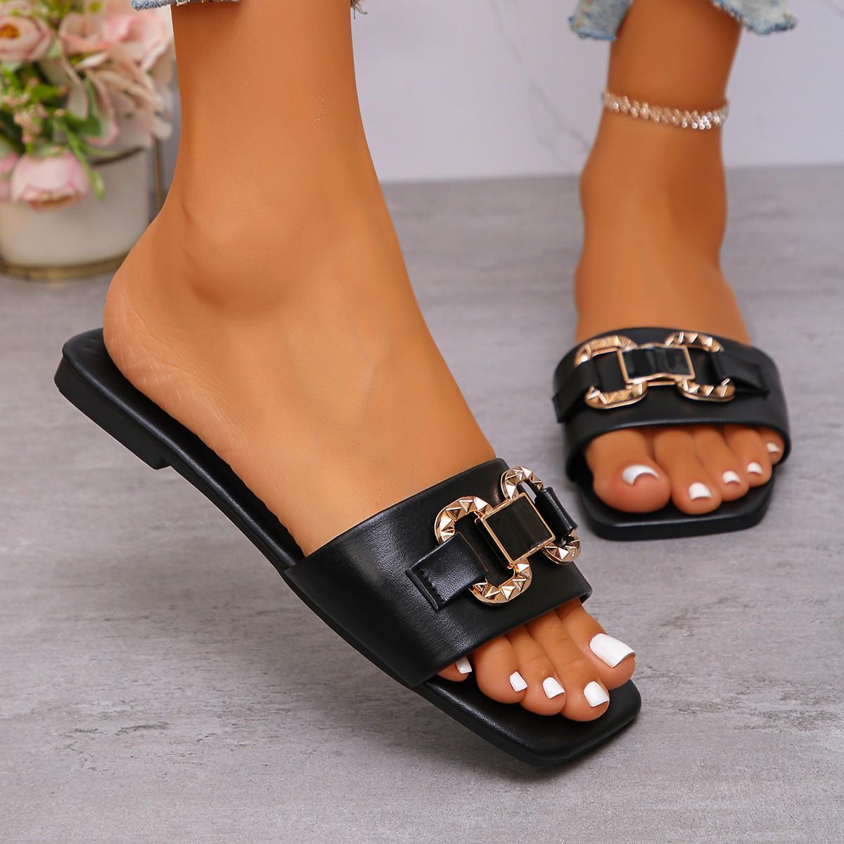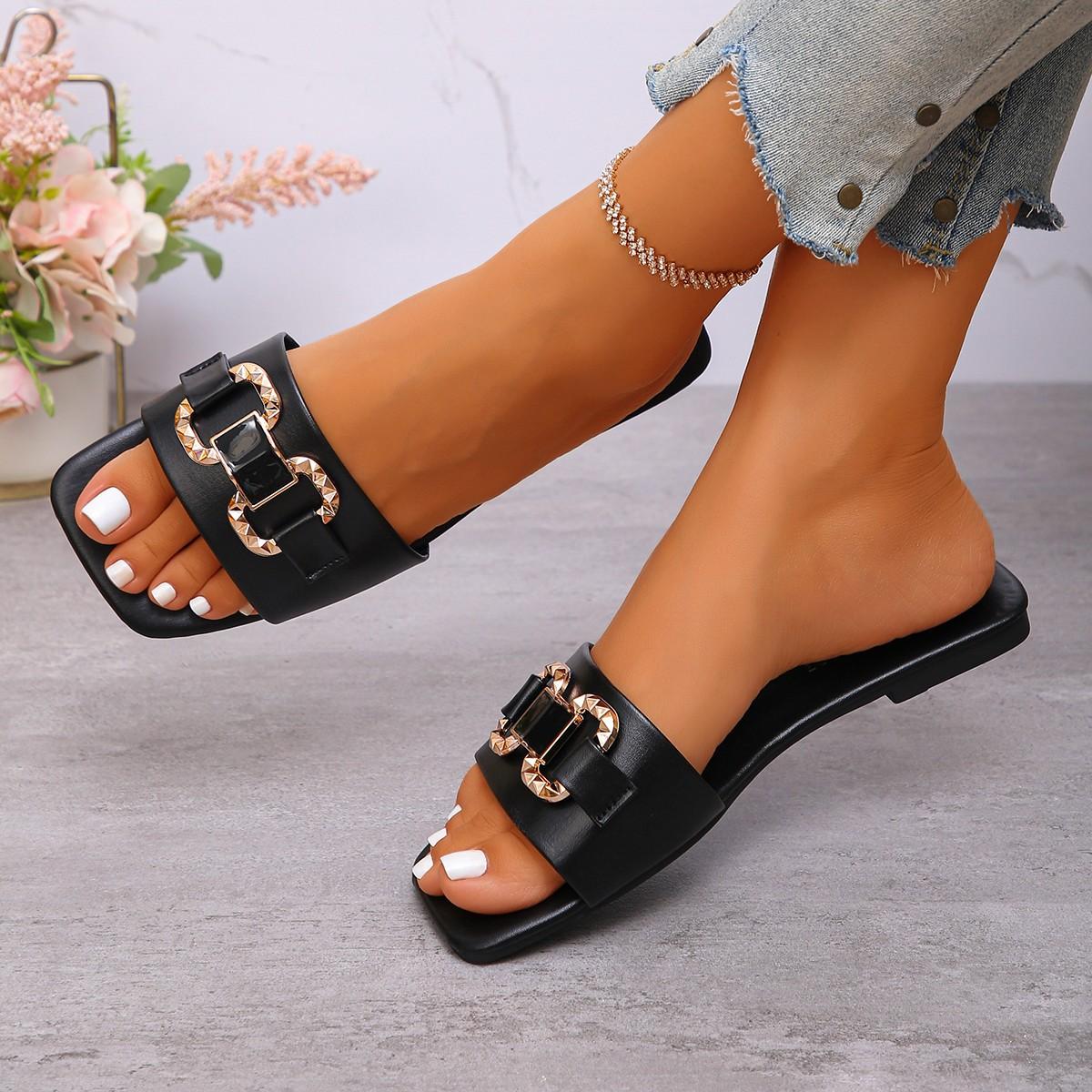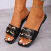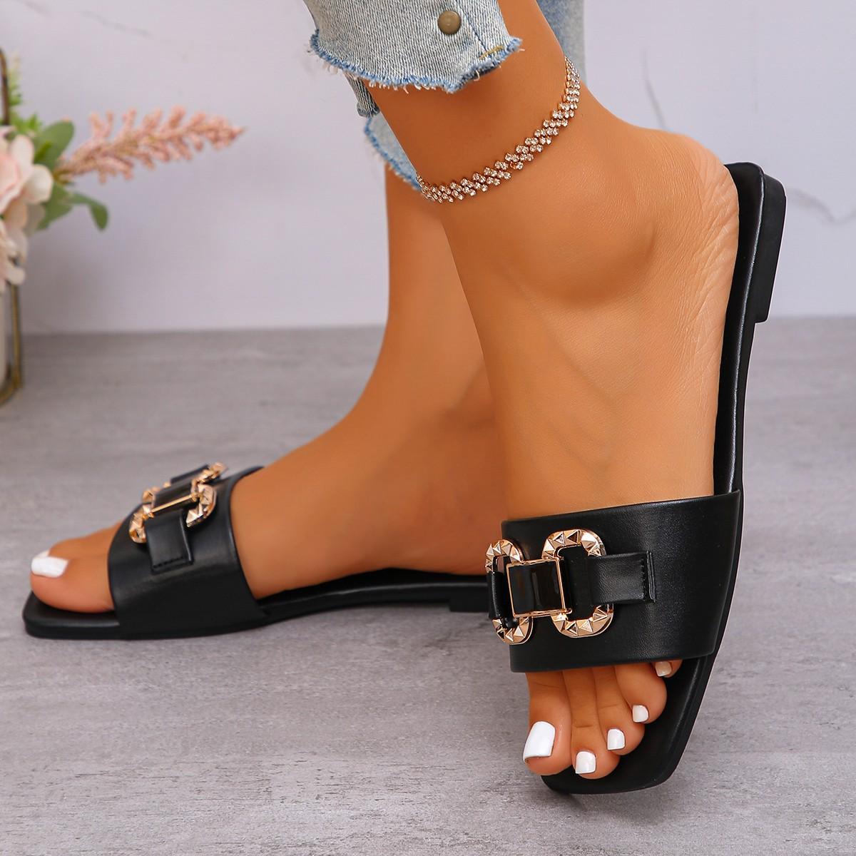 Sandalias planas de talla grande transfronterizas para mujer 2025 Otoño Nuevo Moda europea y americana Zapatillas de una tira con hebilla metálica