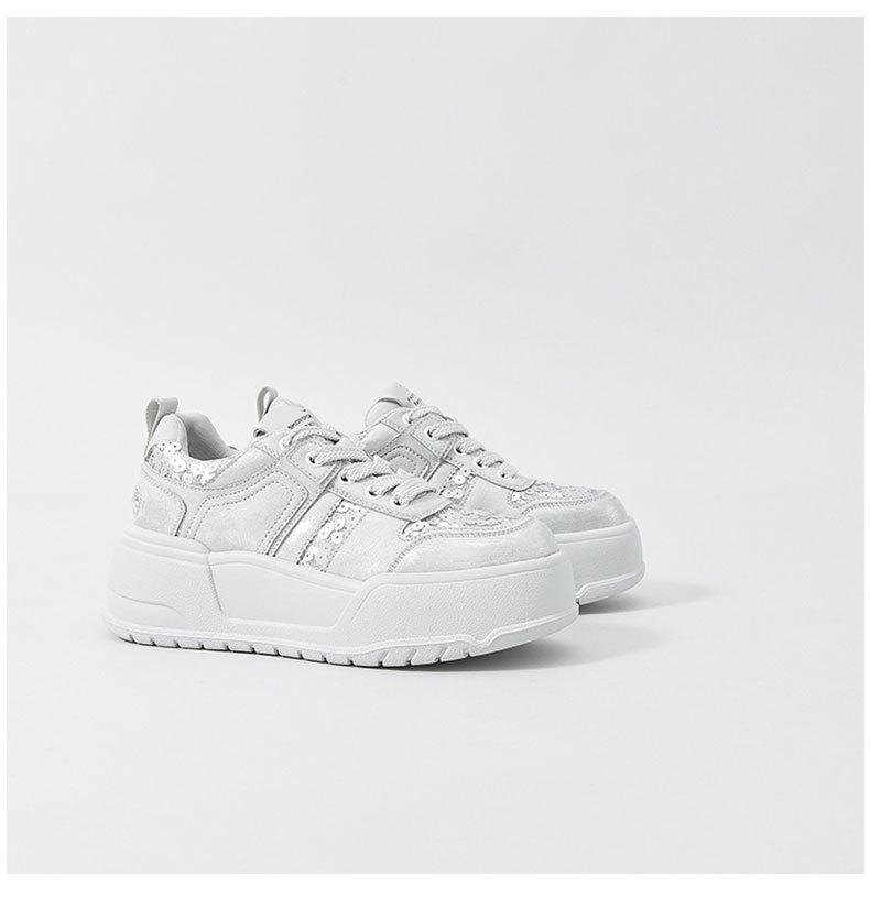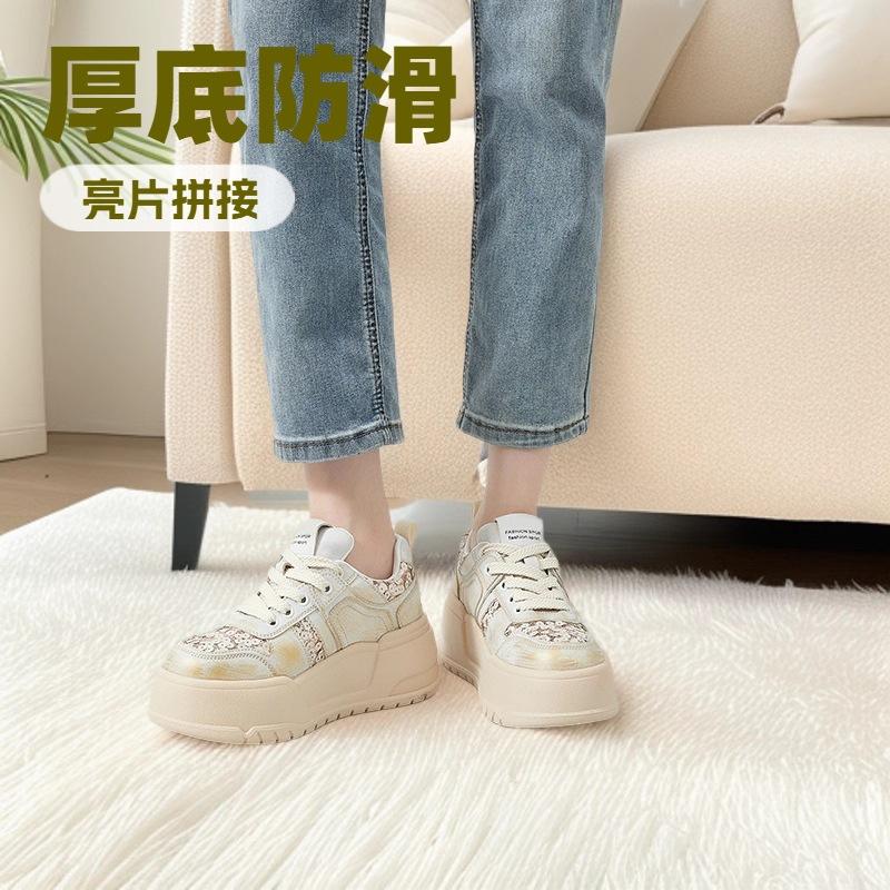 Zapatos casuales blancos de plataforma con suela gruesa antideslizante, patchwork de lentejuelas, para aumentar la altura de personas bajas, resistentes al desgaste, cómodos, de cuero genuino transpirable